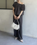 ・ブラウスをオフショルとして着ることでヘルシーな抜け感のある雰囲気も楽しめます。