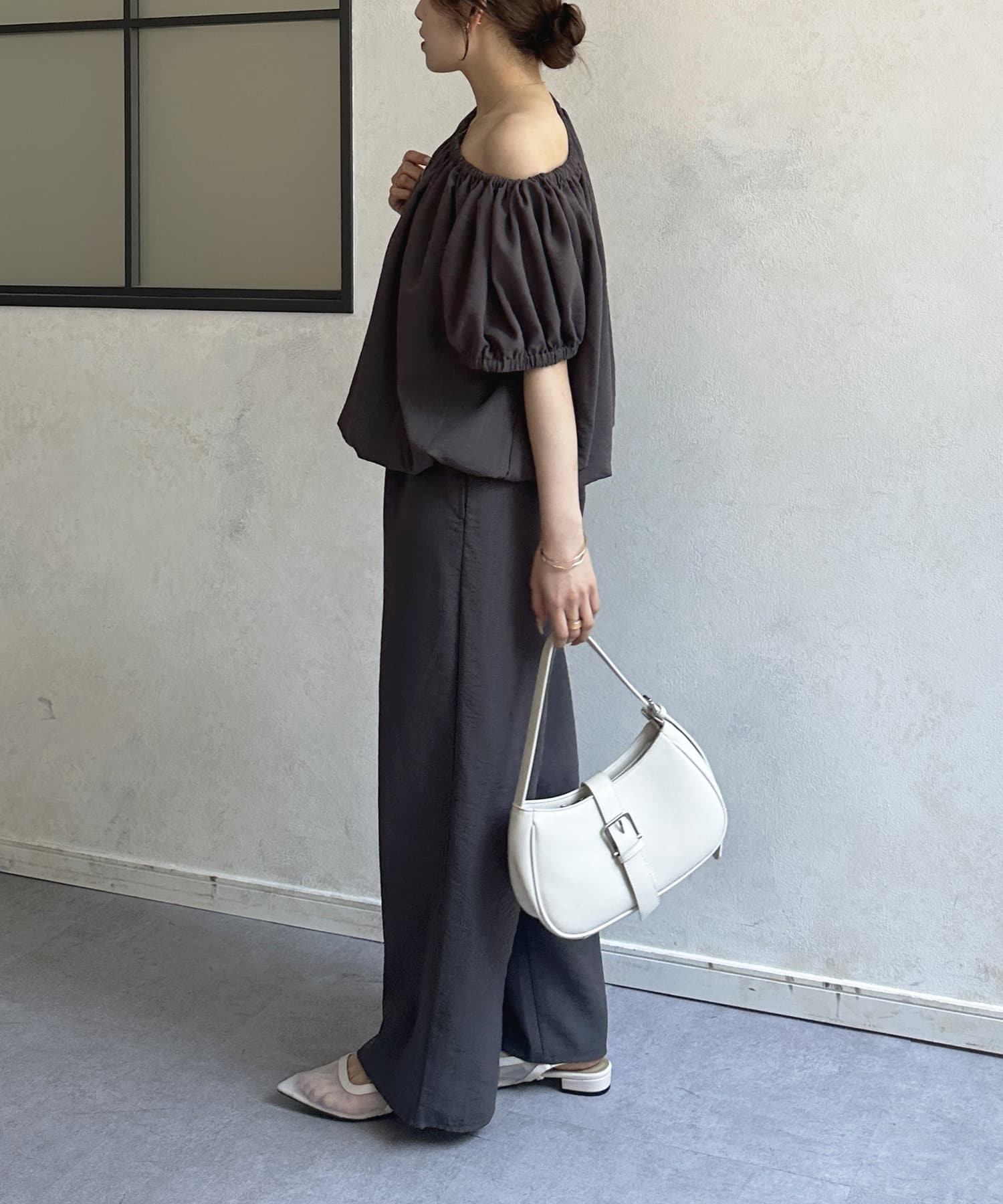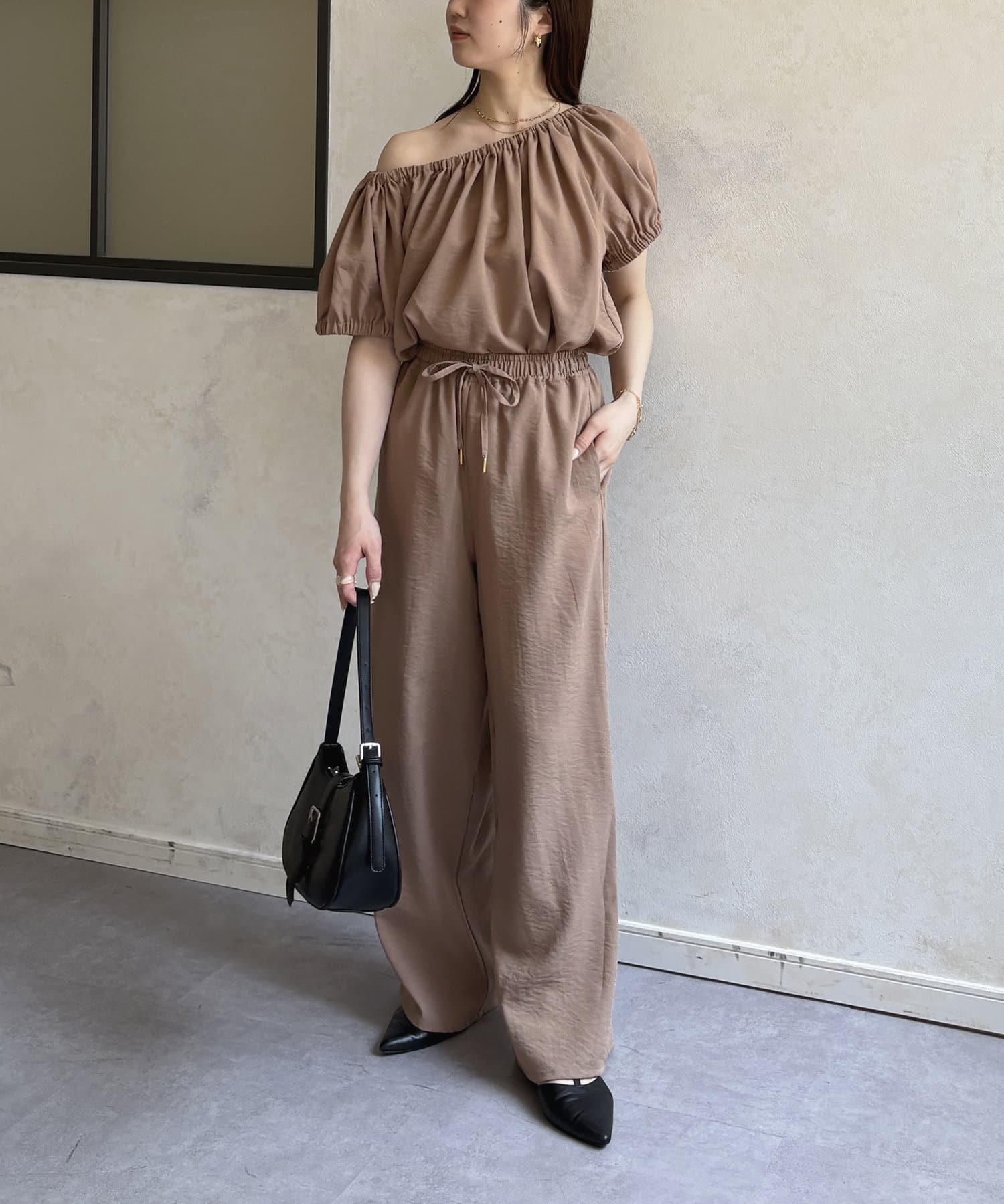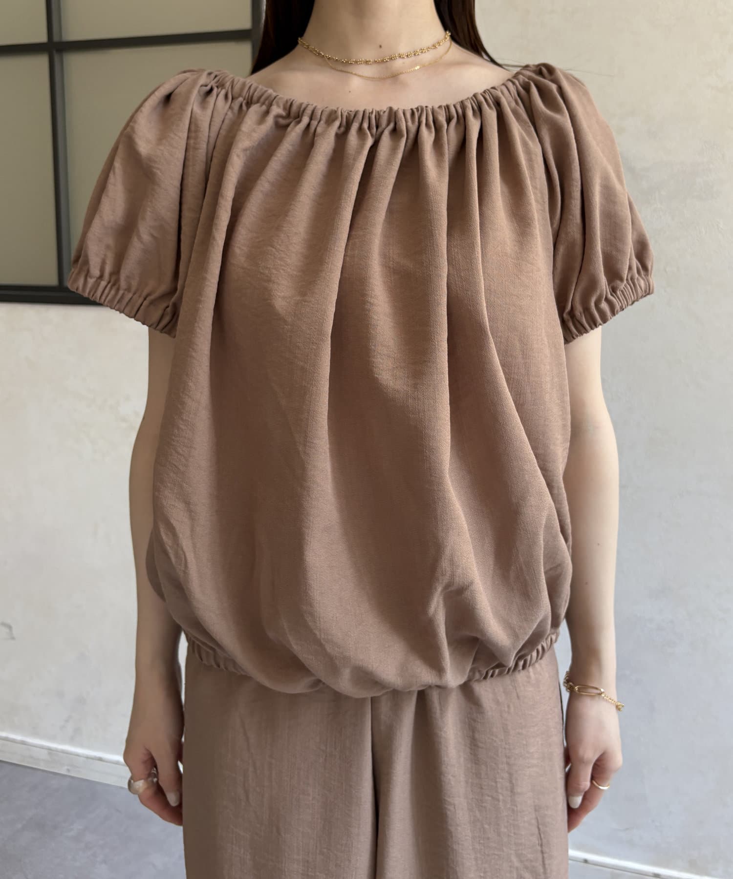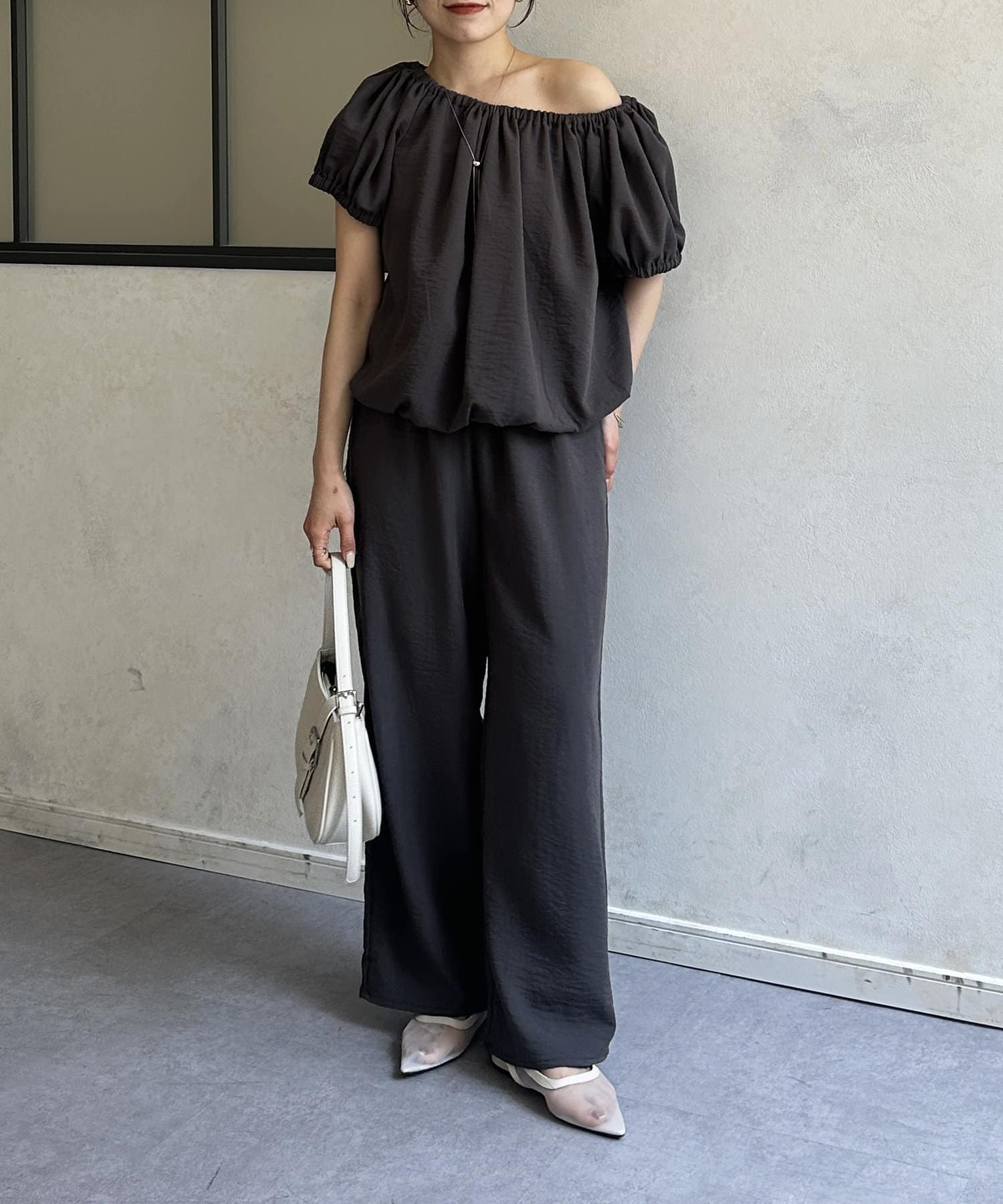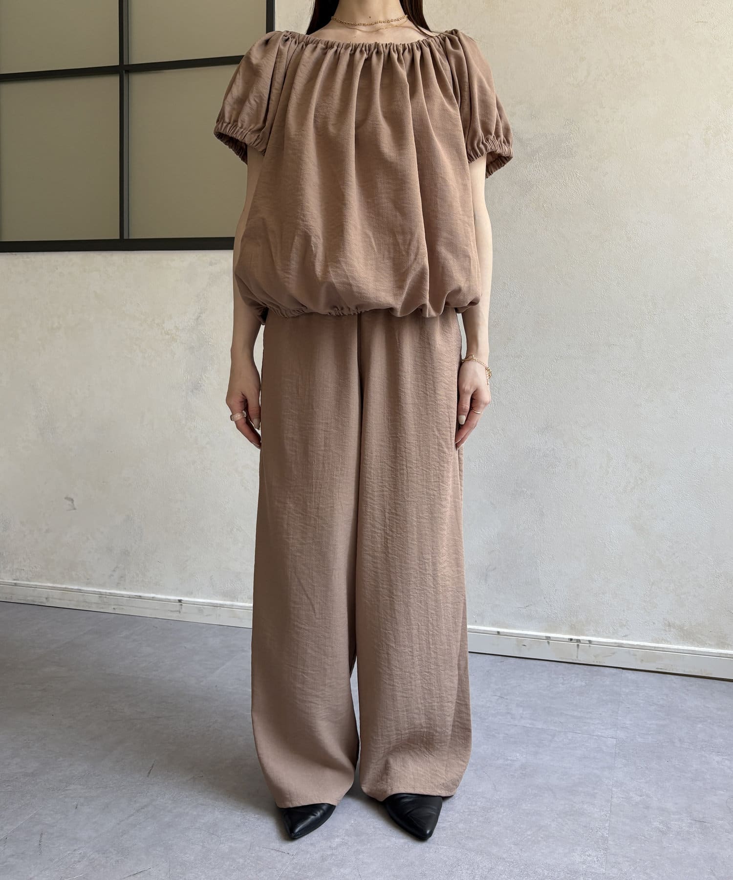 ギャザーブラウス×パンツセットアップ