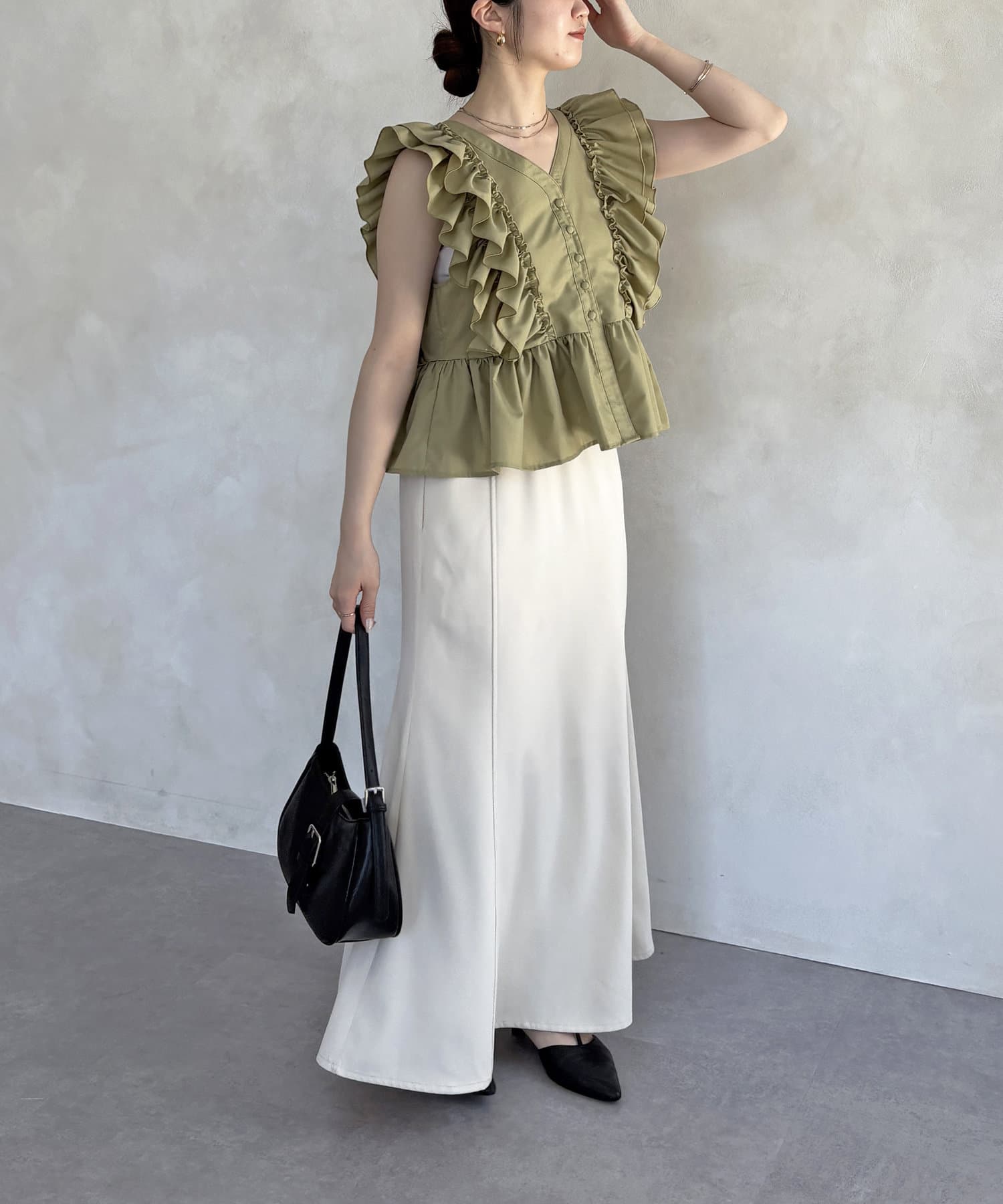 ・フリルとペプラムのコンビでかわいらしさ&トレンド感
