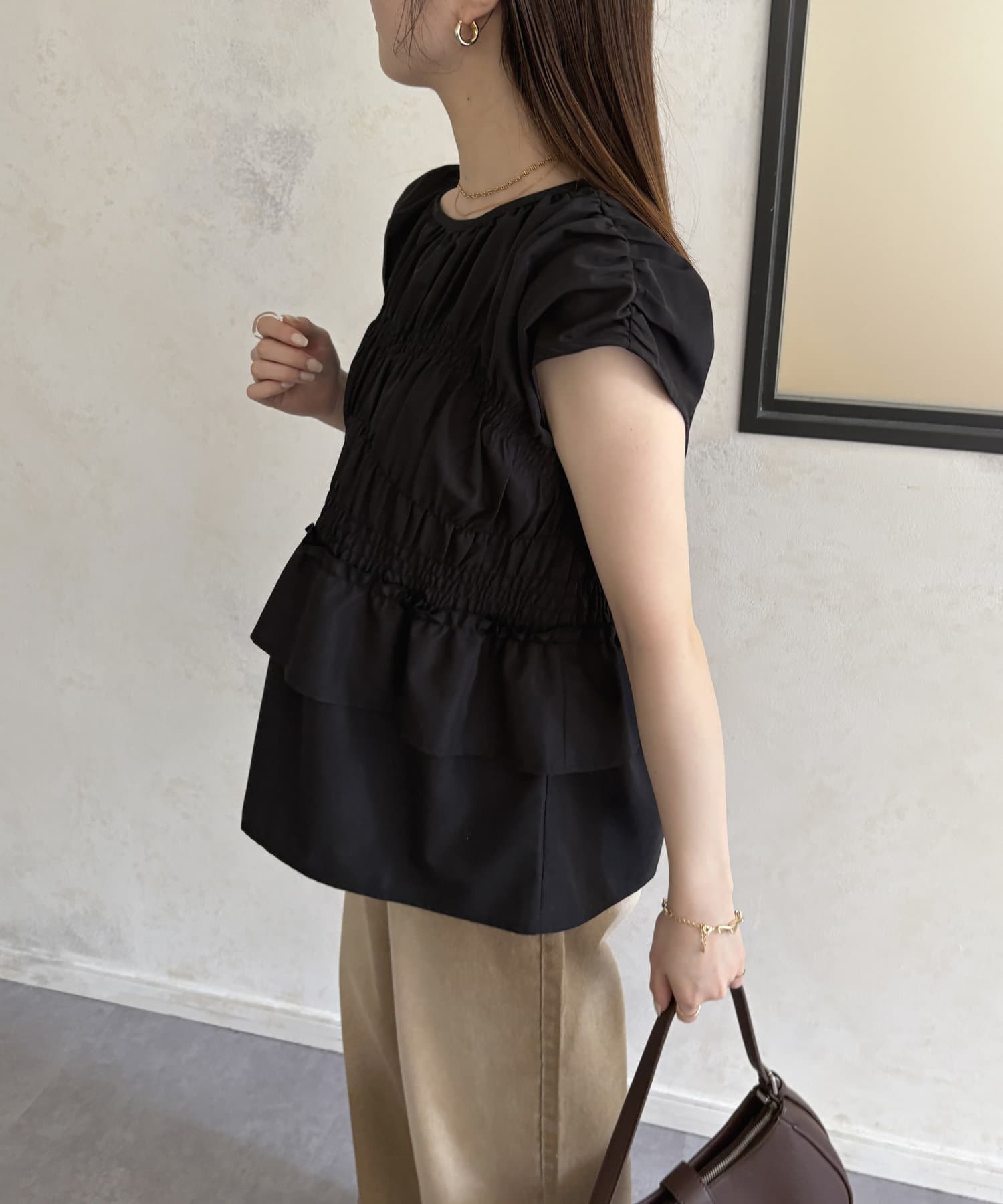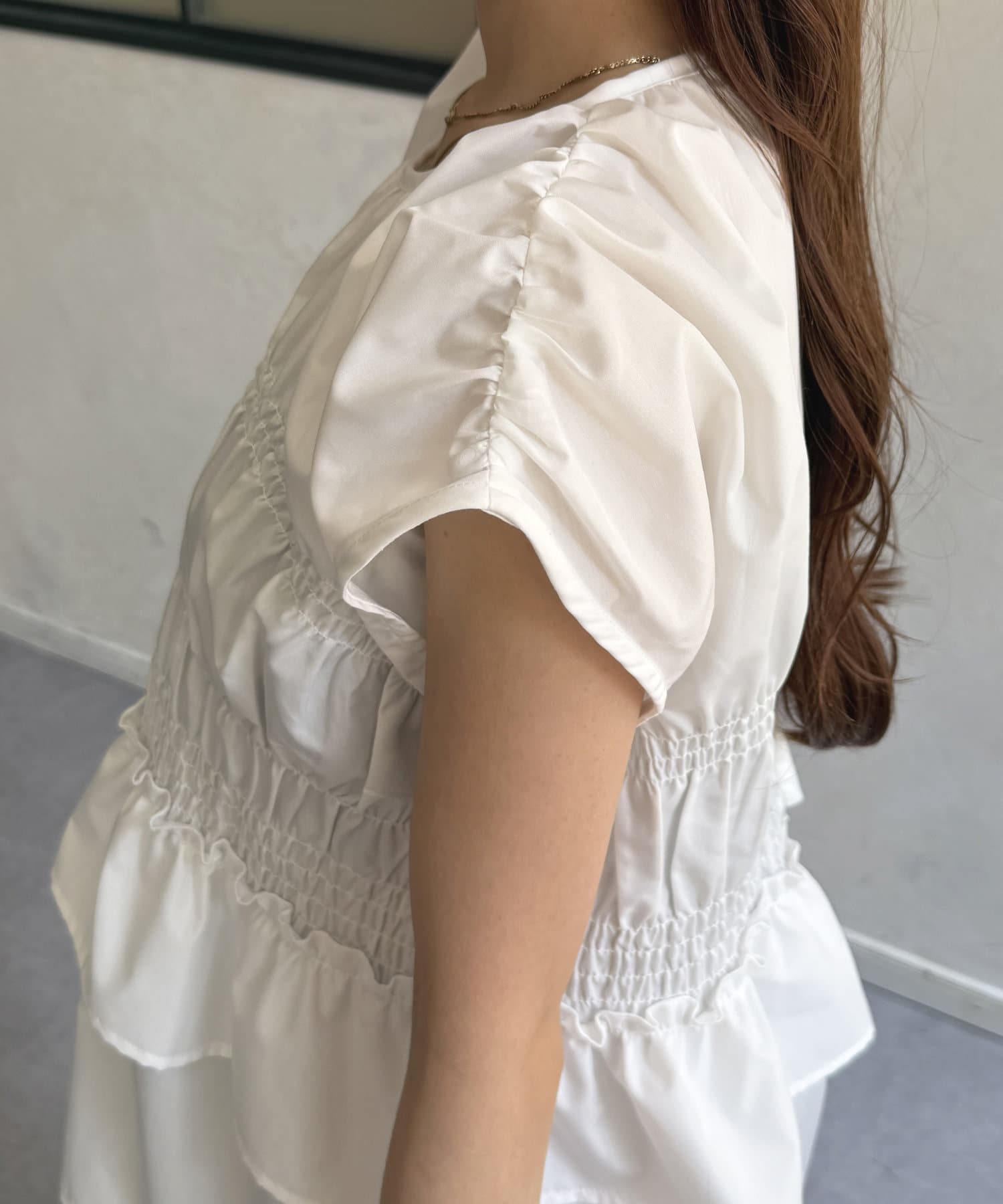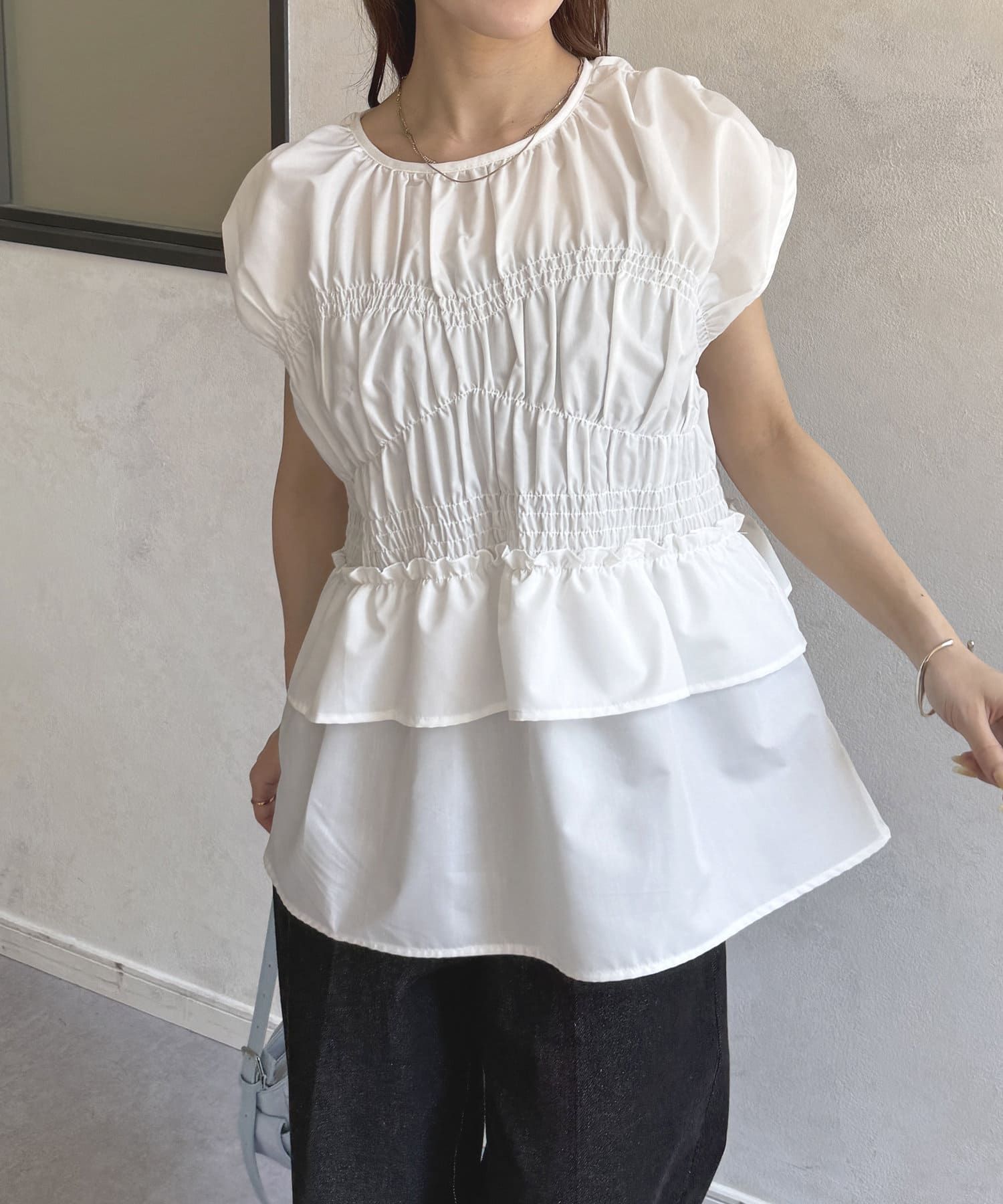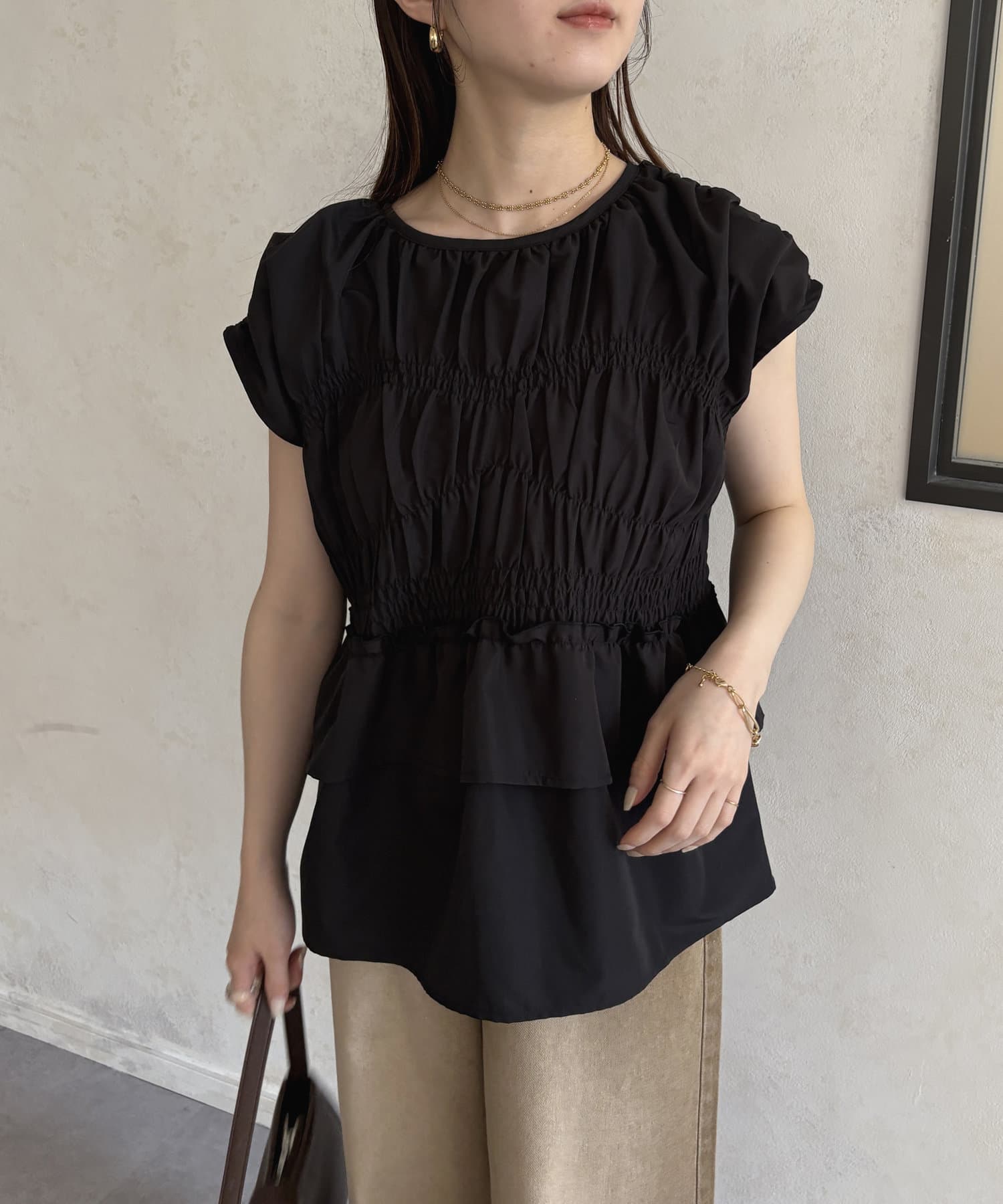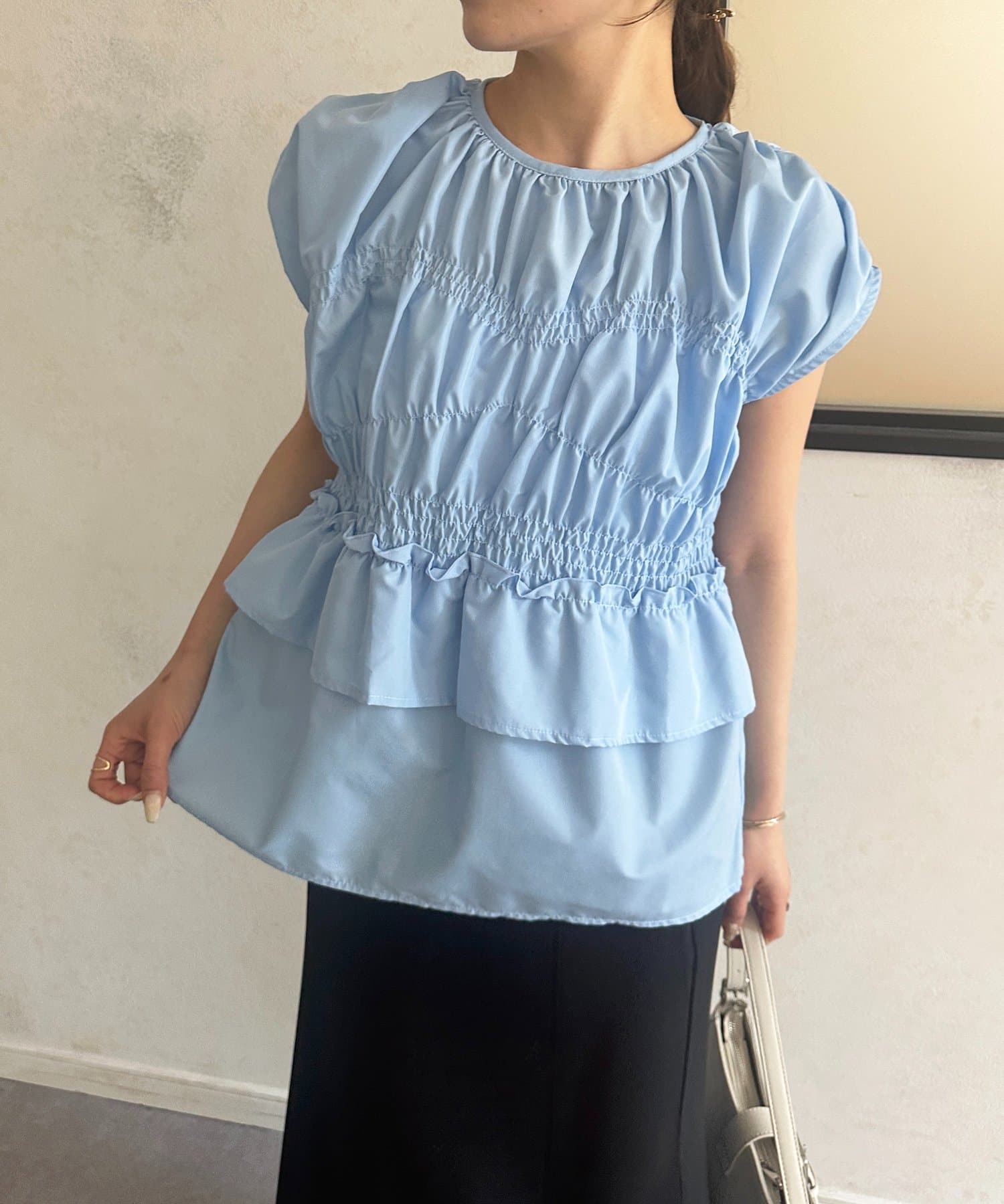 #フレンチブラウス #シャーリング #ペプラム #ブラウス