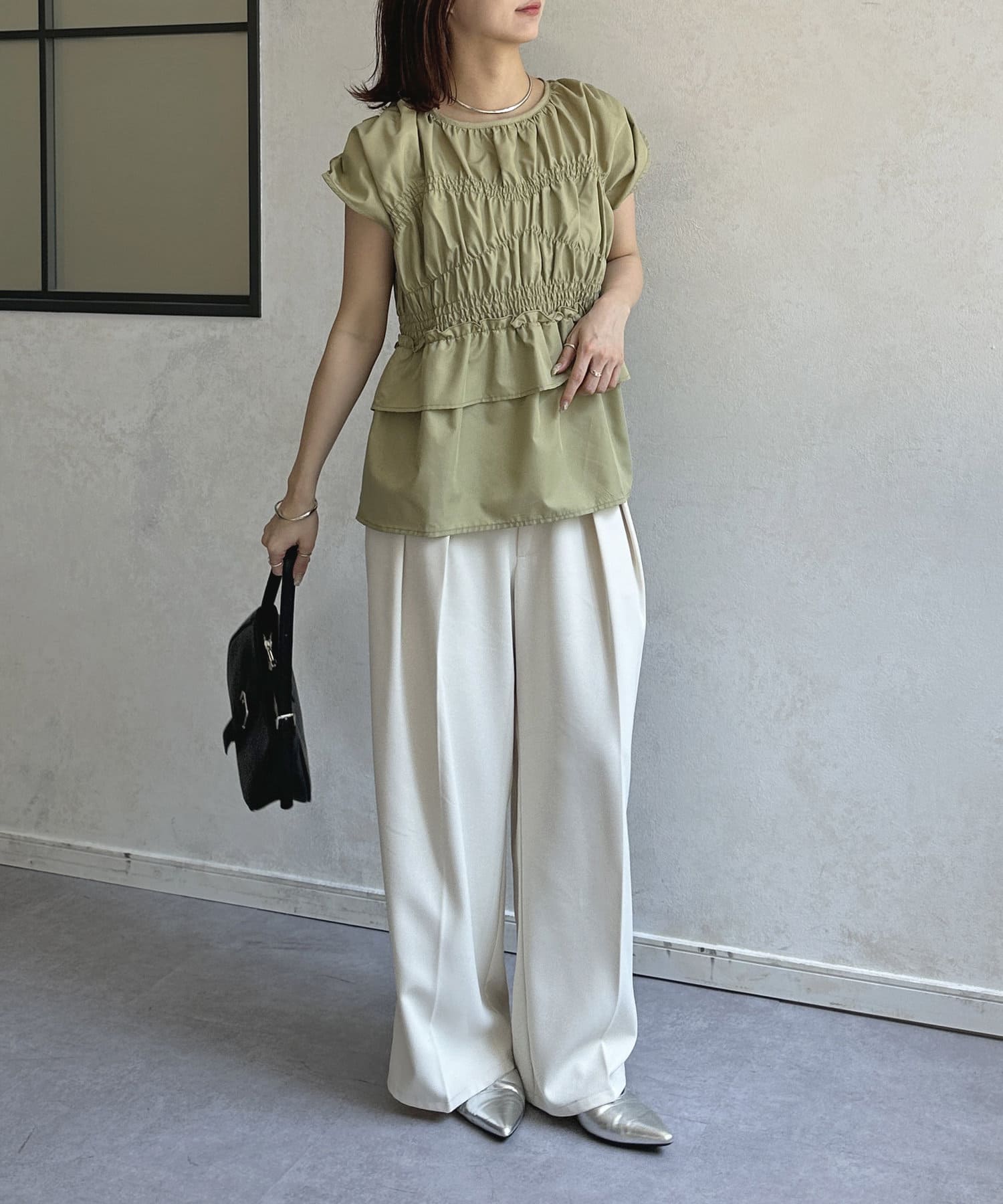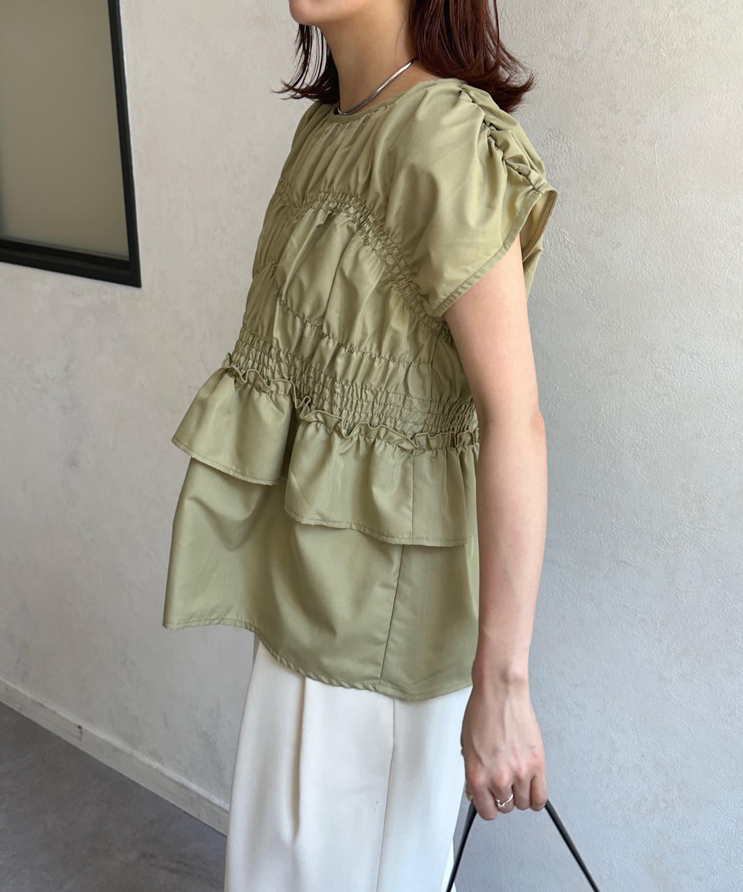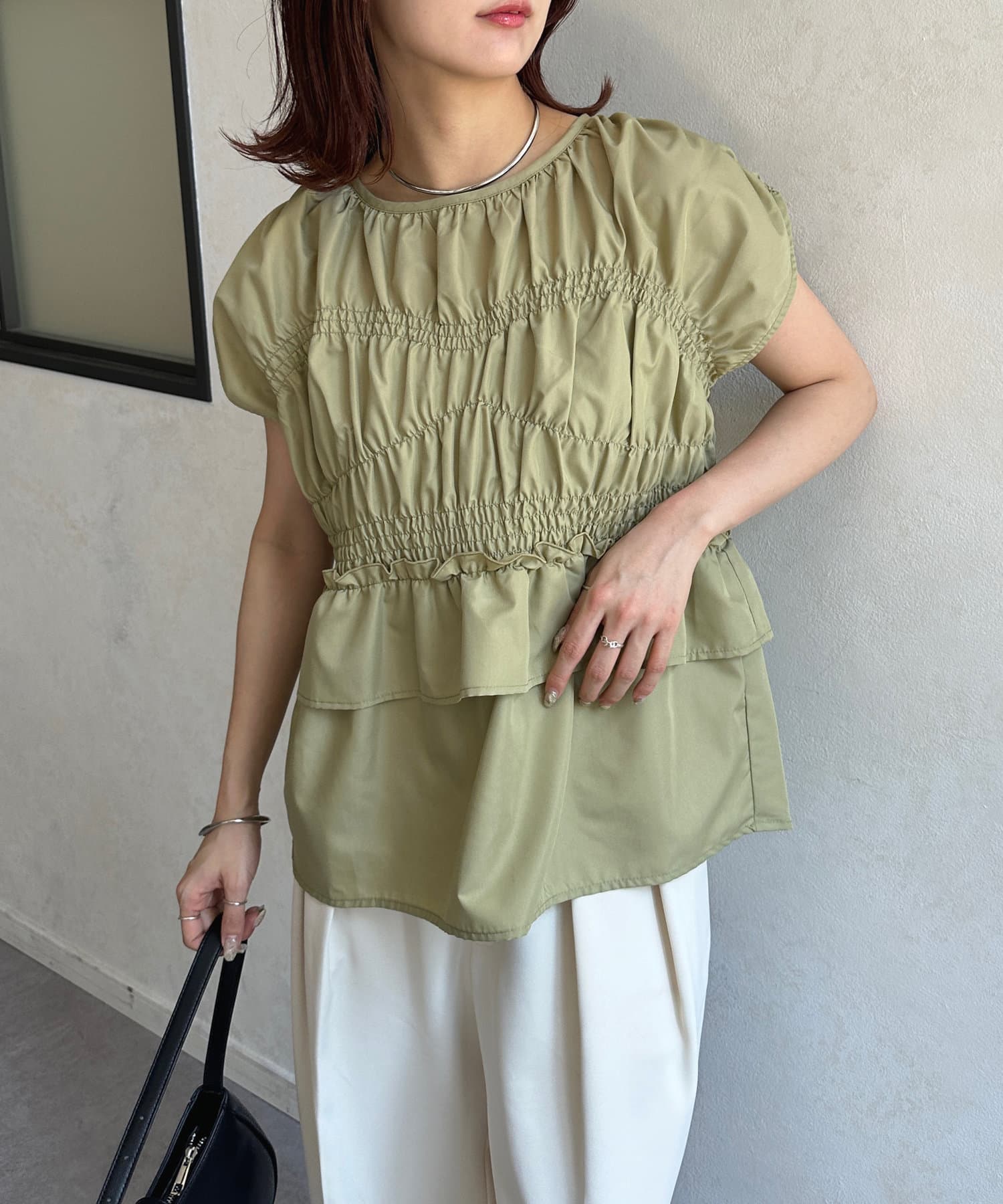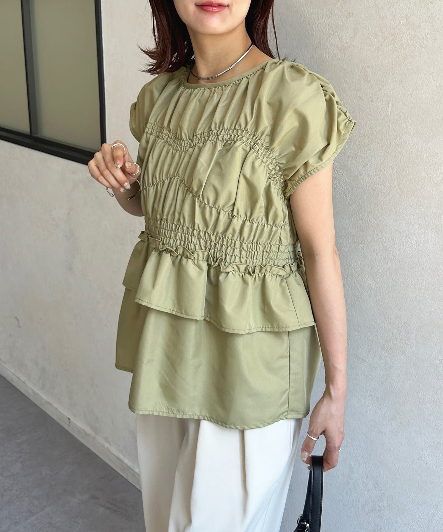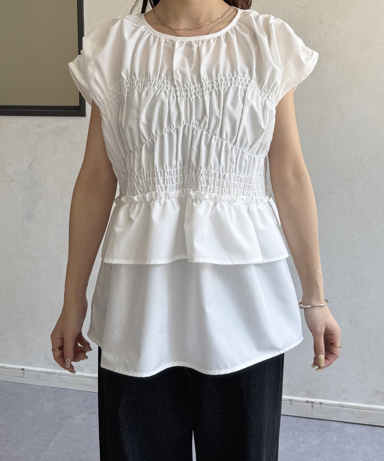 #フレンチブラウス #シャーリング #ペプラム #ブラウス