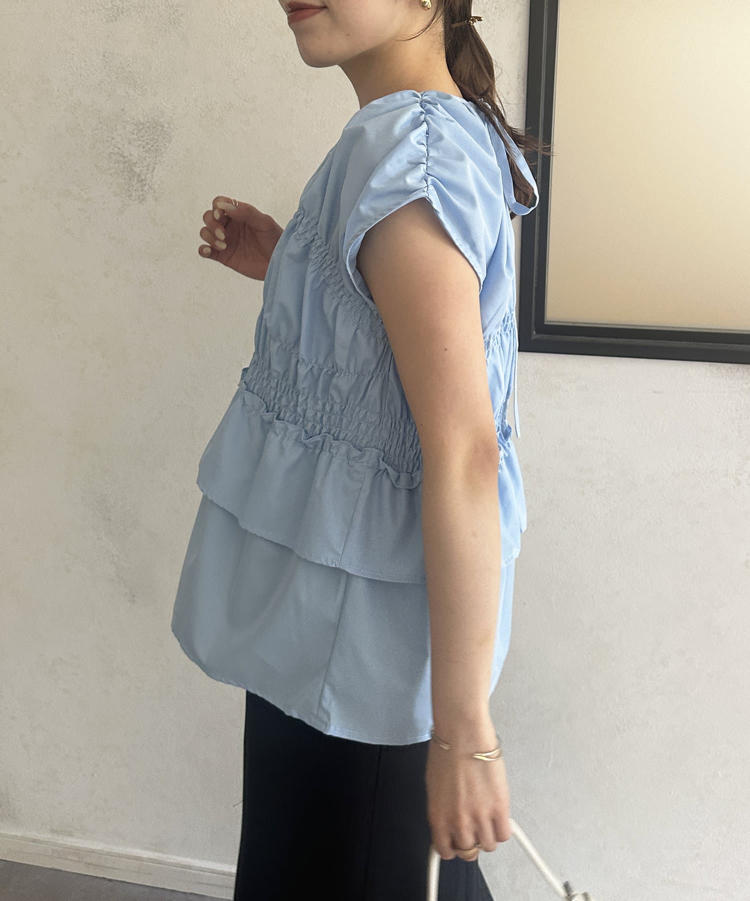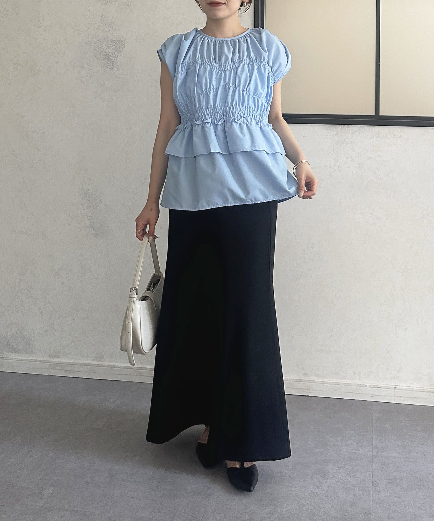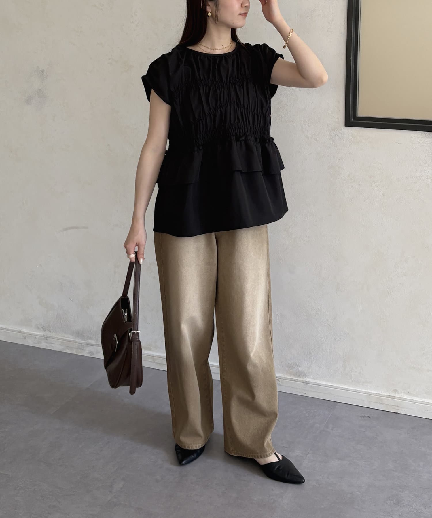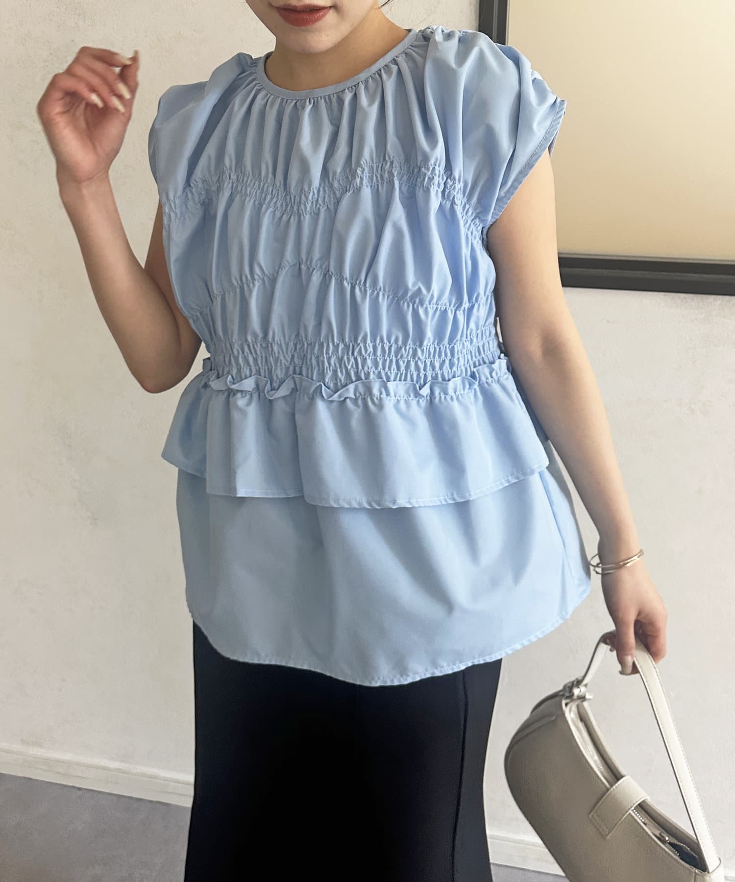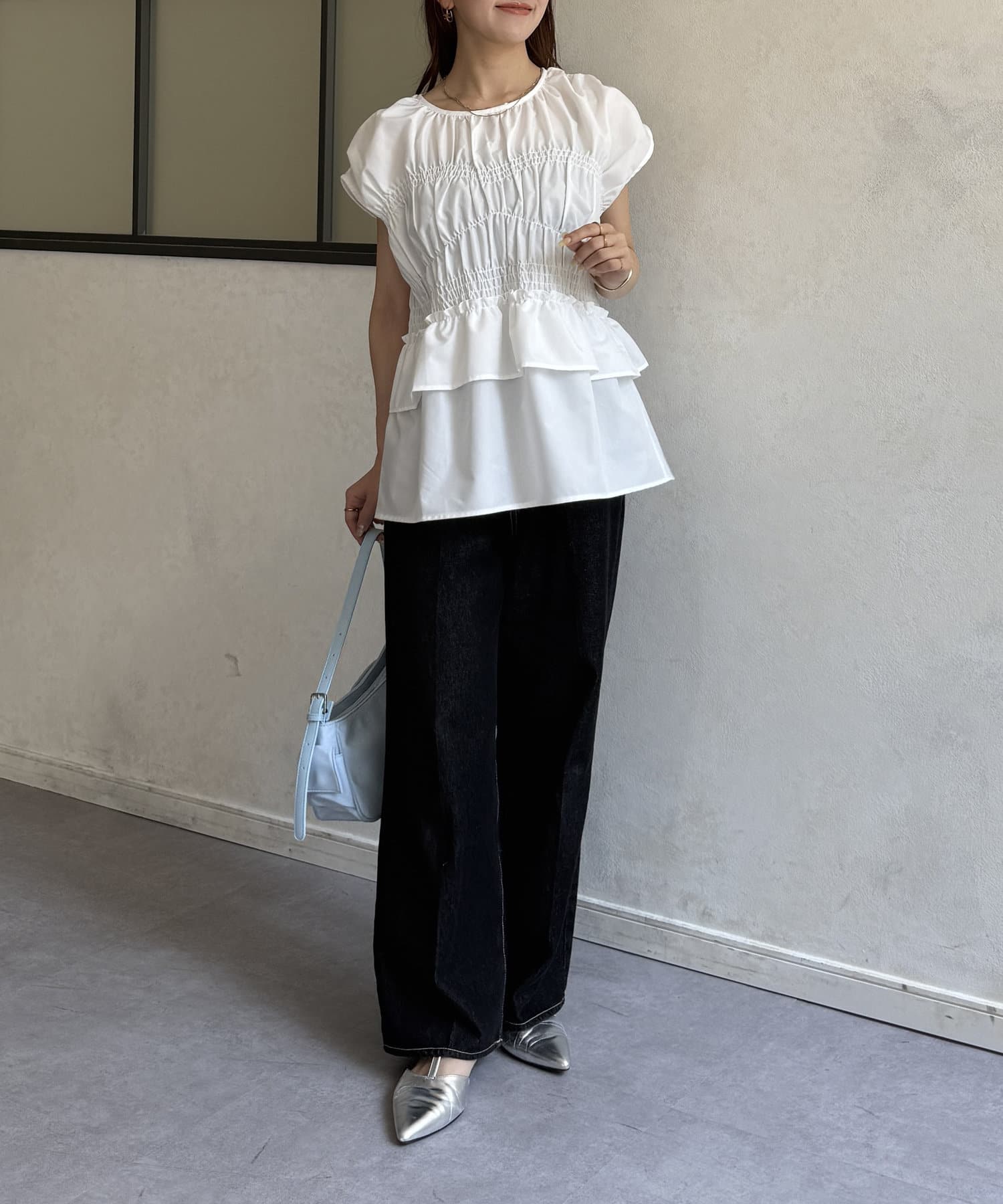 #フレンチブラウス #シャーリング #ペプラム #ブラウス