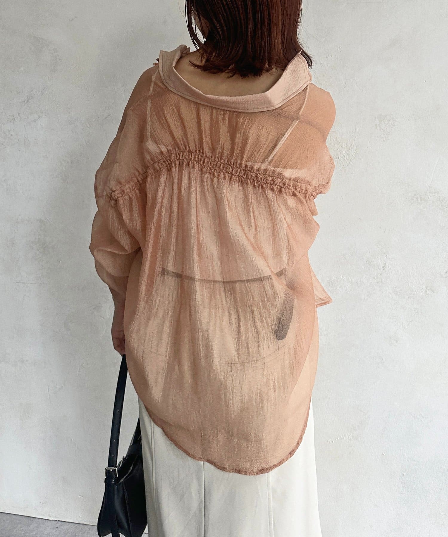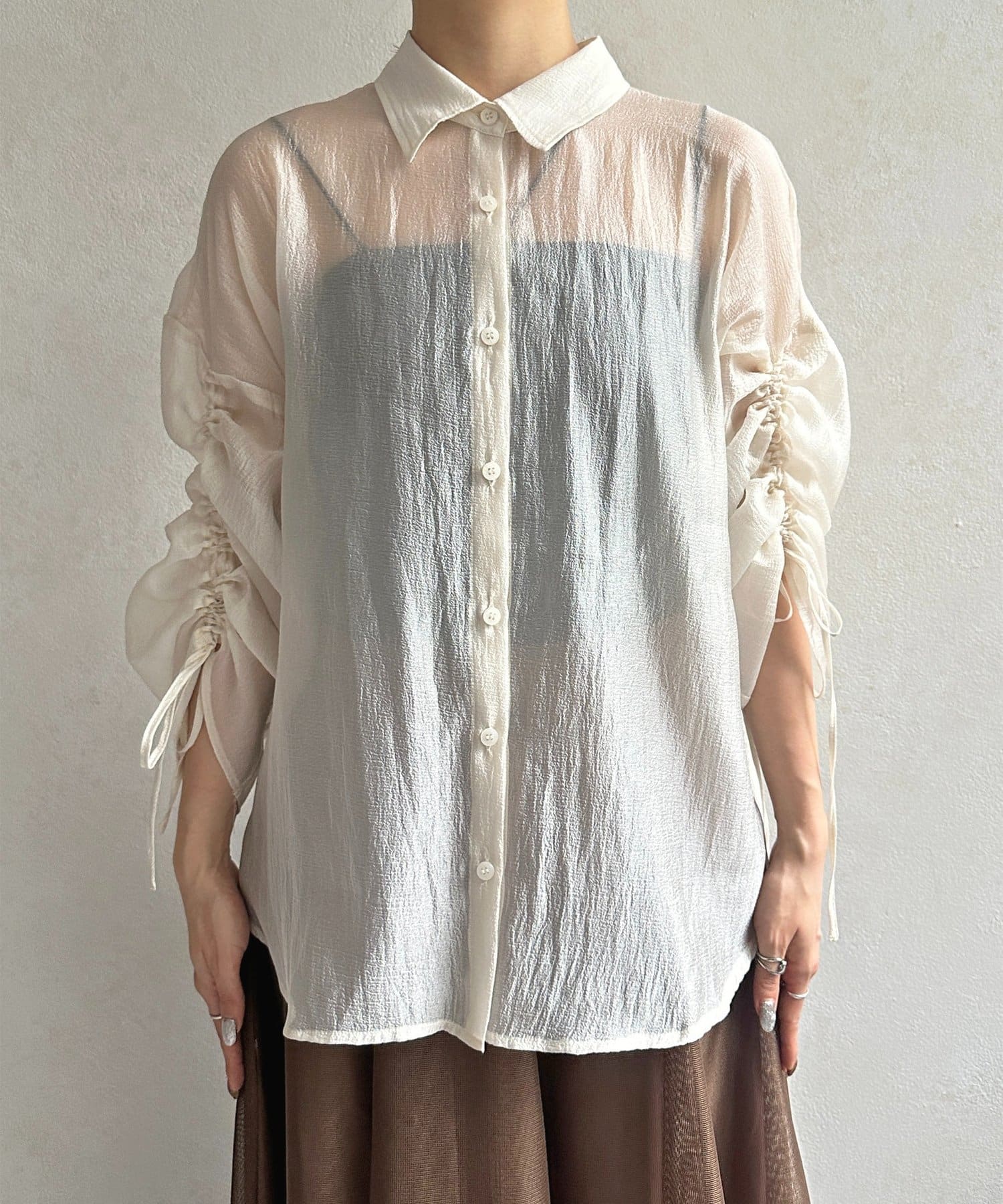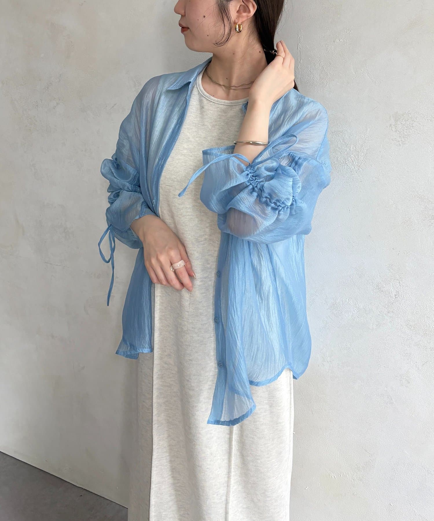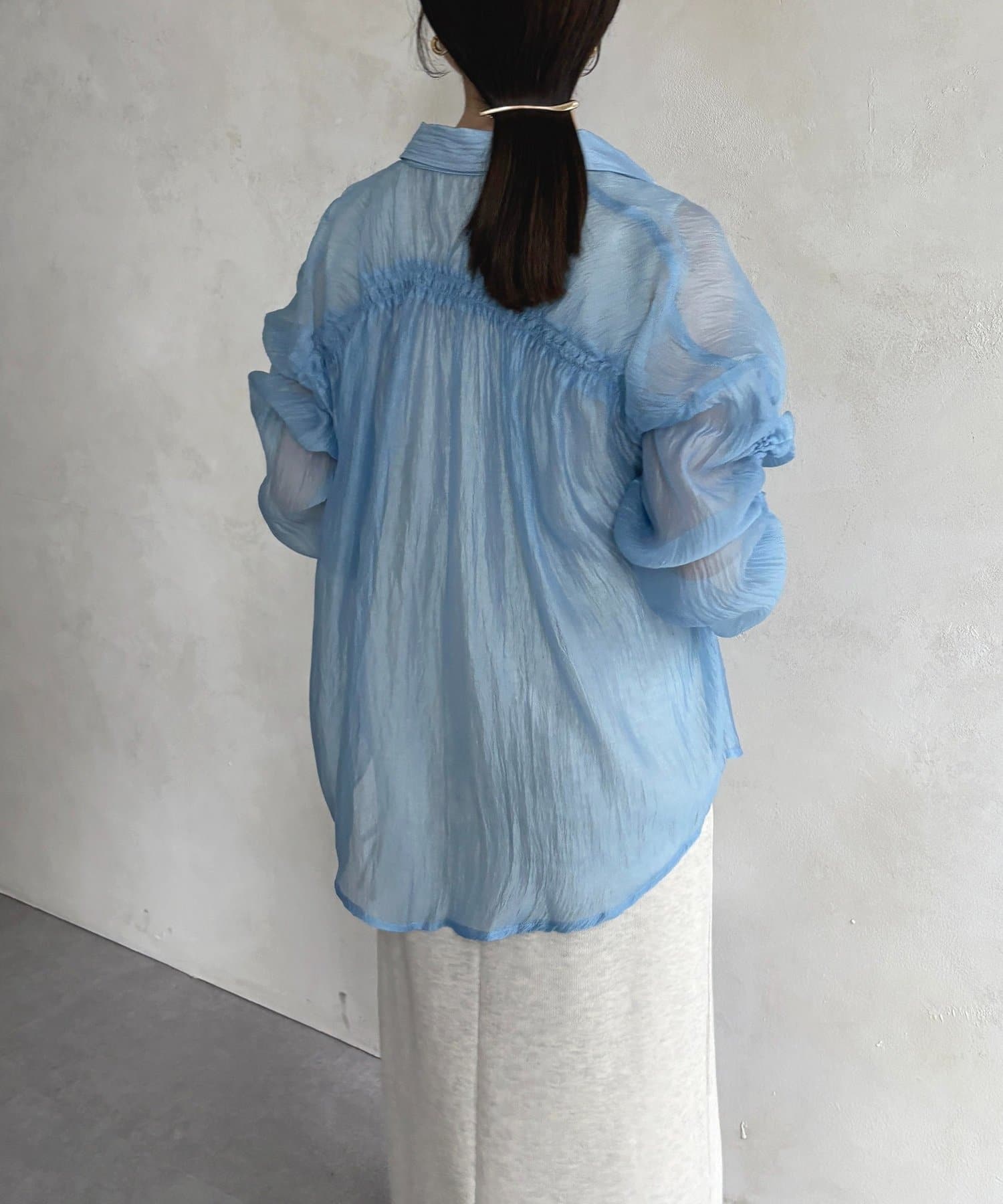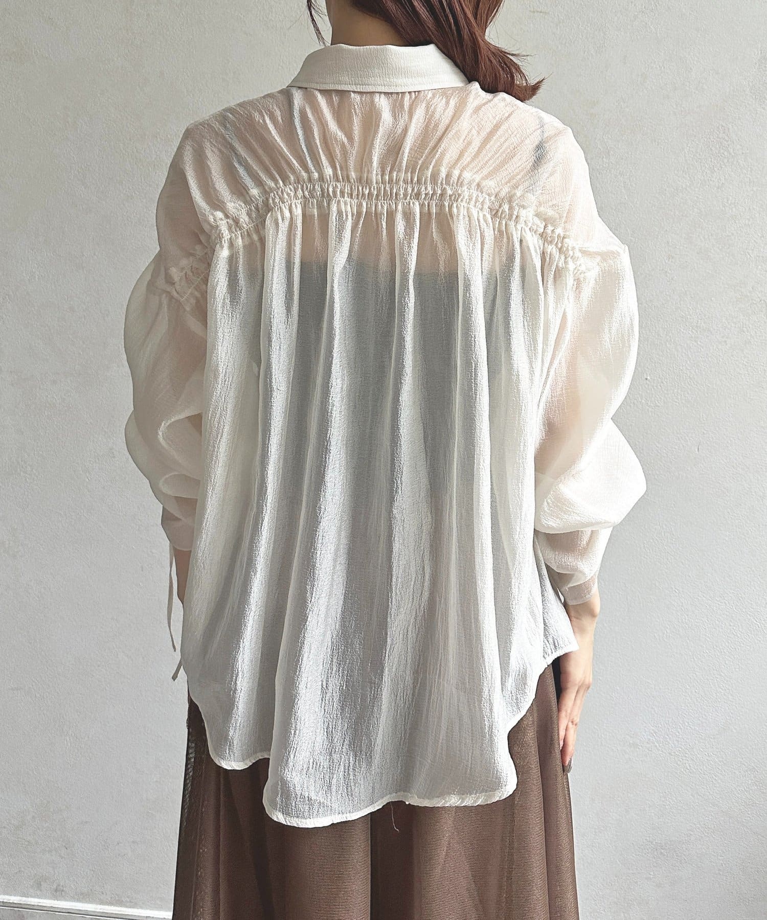 #シアーシャツ #シャーリング #ラメ #ワッシャー袖 #シアー素材