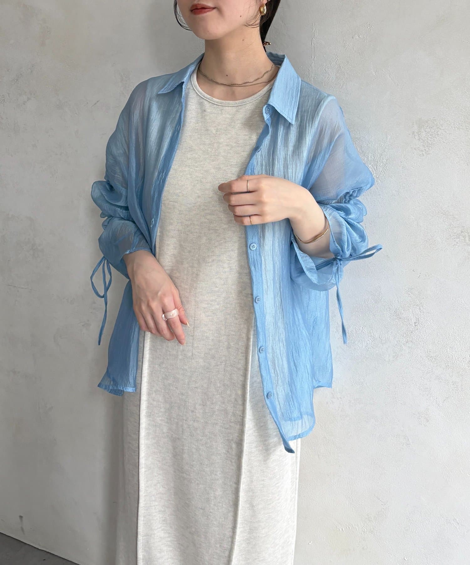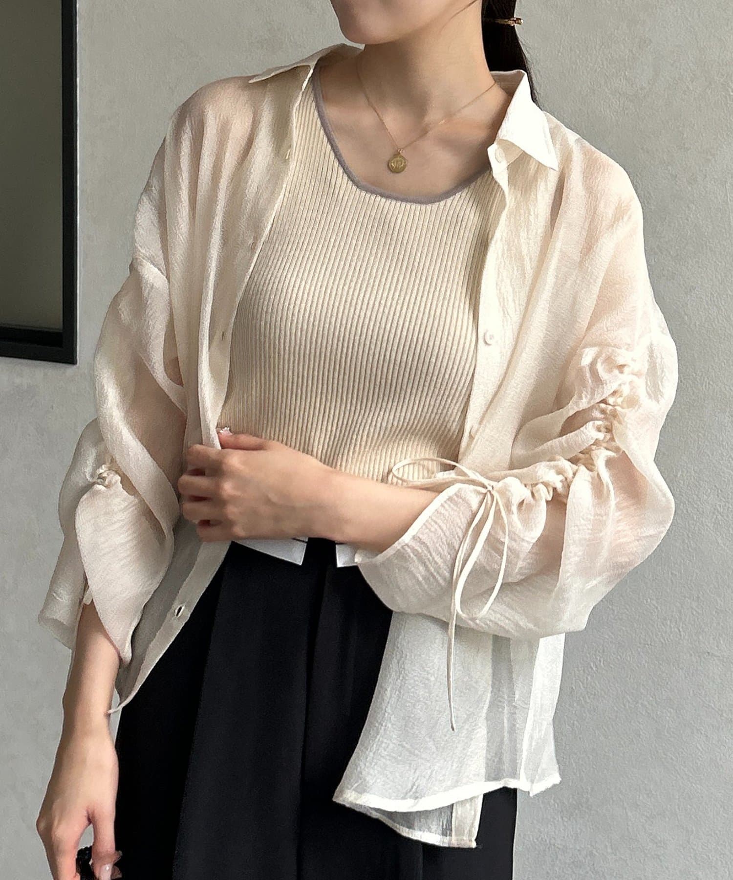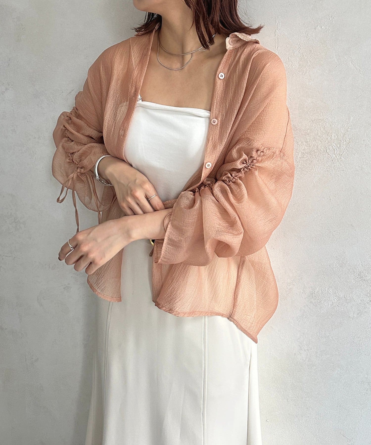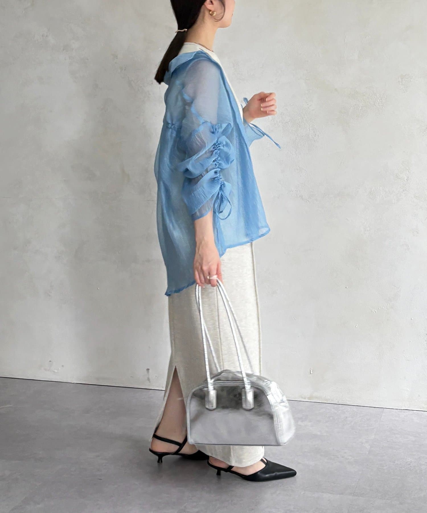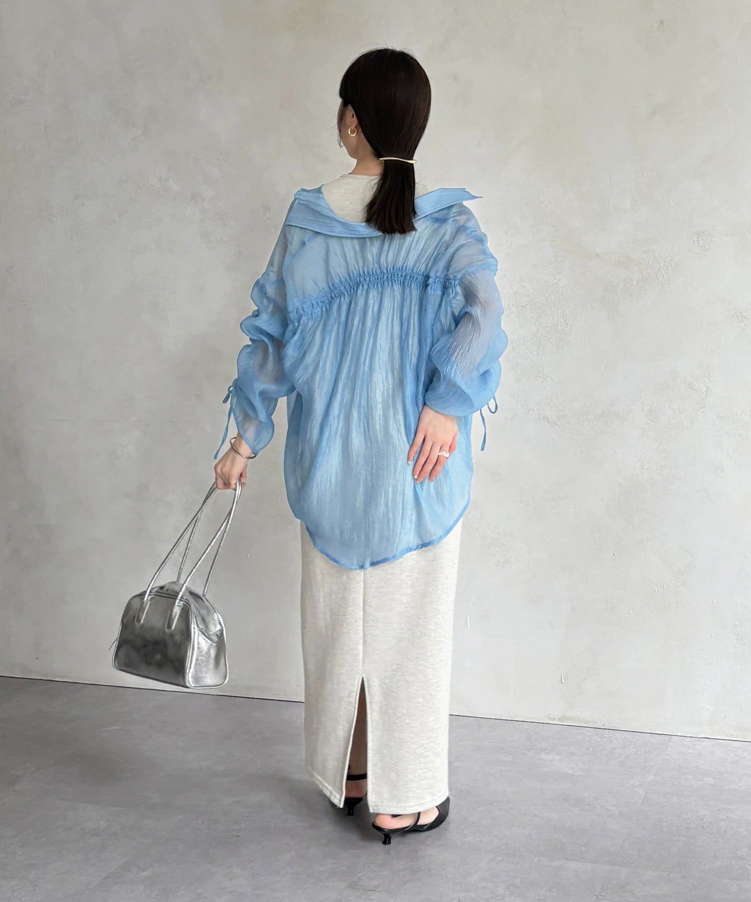 #シアーシャツ #シャーリング #ラメ #ワッシャー袖 #シアー素材