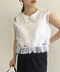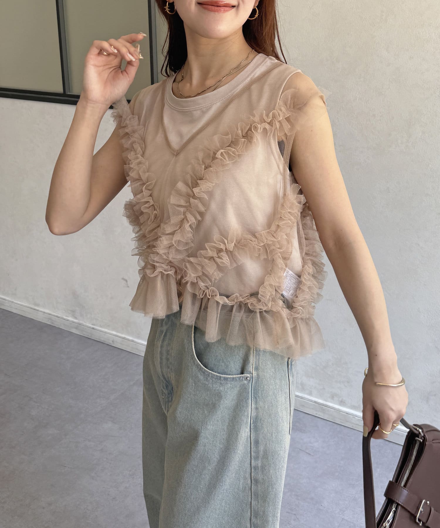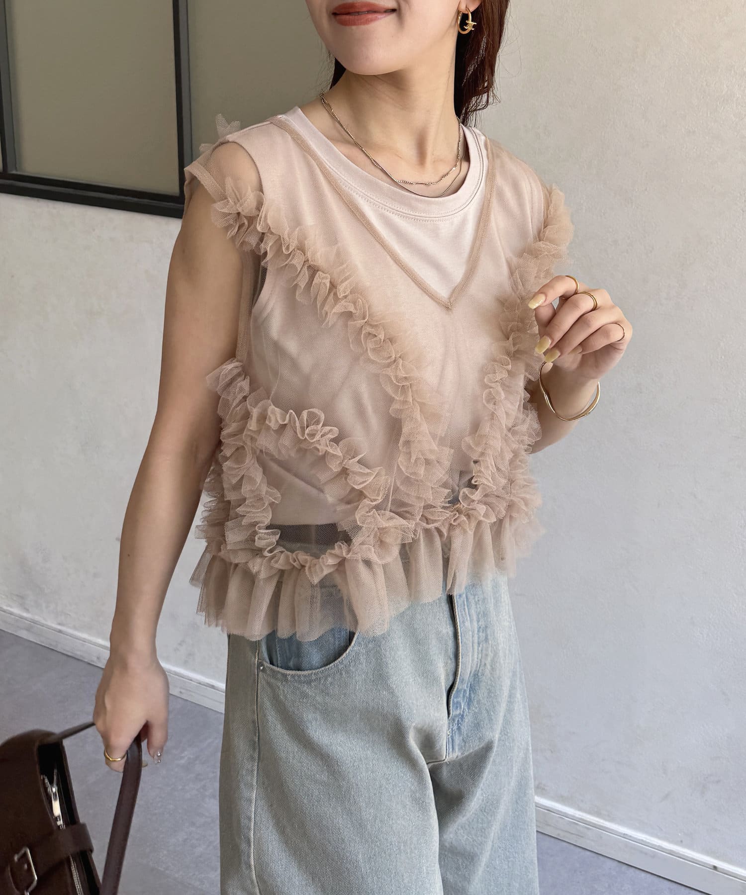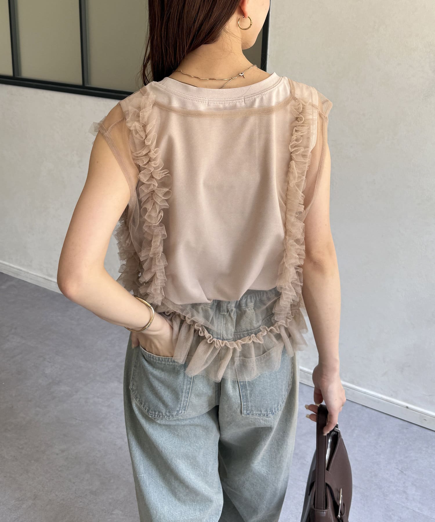 TOP > Thevon. > レディース > トップス > Tシャツ/カットソー > チュールフリルベスト×ノースリセットプルオーバー
