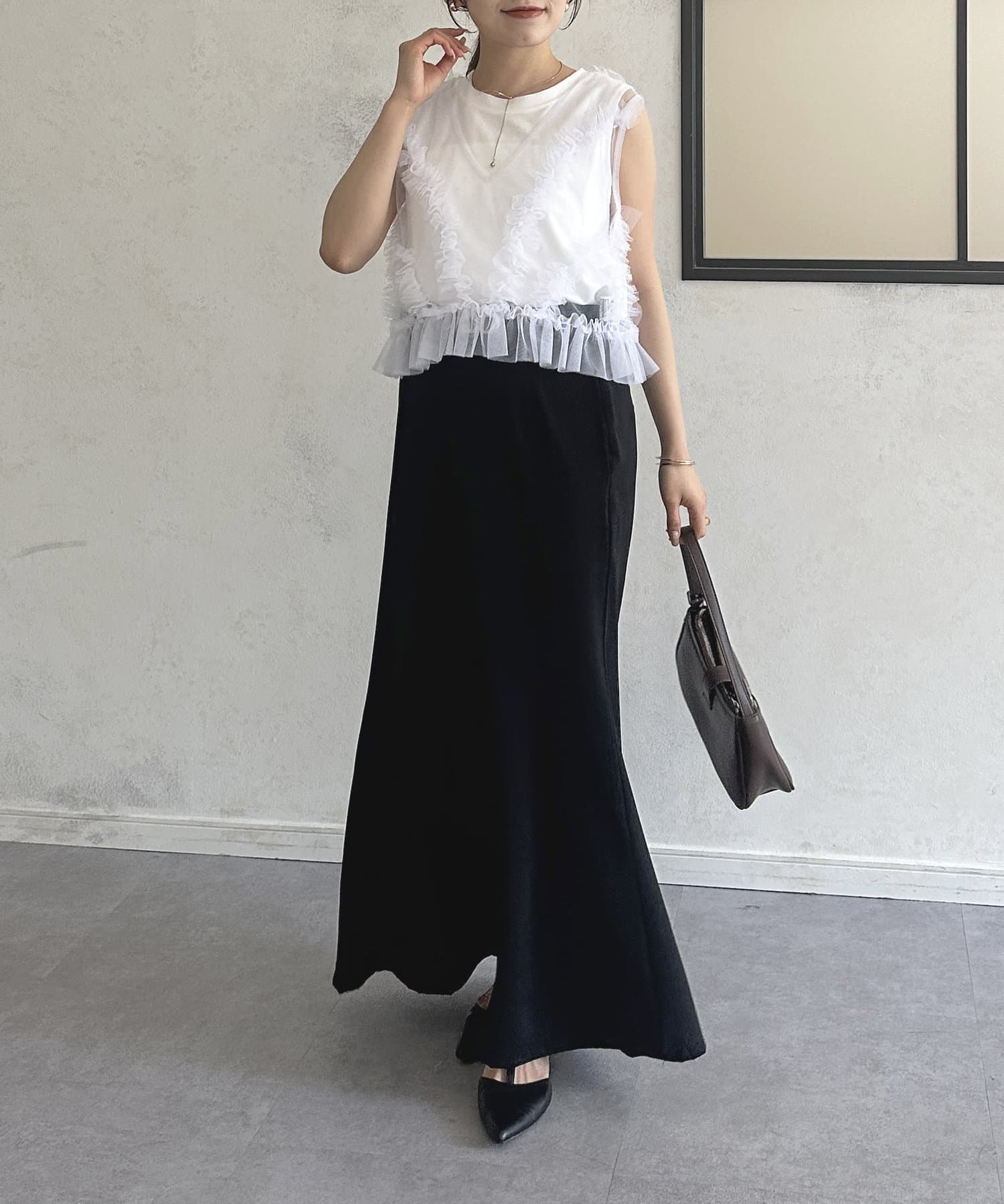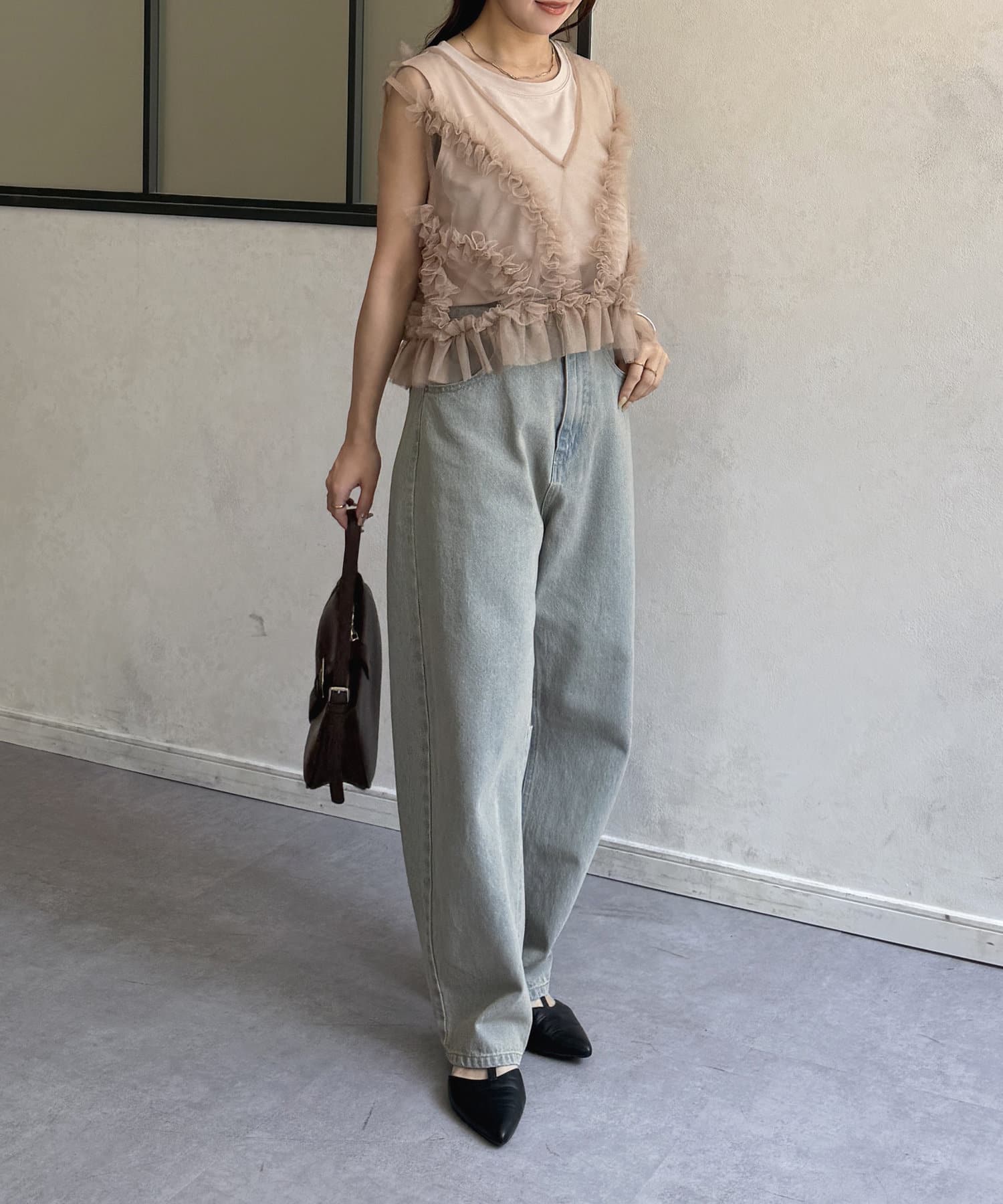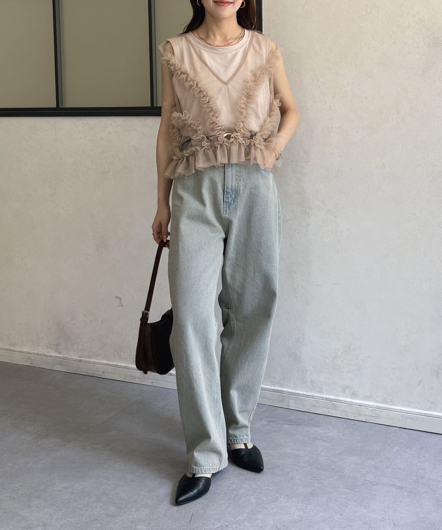 チュールフリルがカジュアルガーリーな着こなしにもぴったり◎