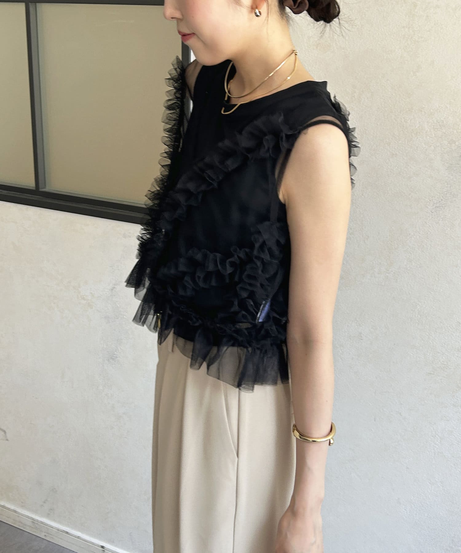Thevon.(ゼヴォン) チュールフリルベスト×ノースリセットプルオーバー
