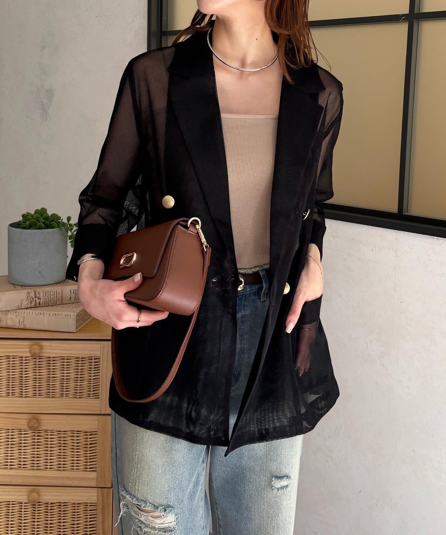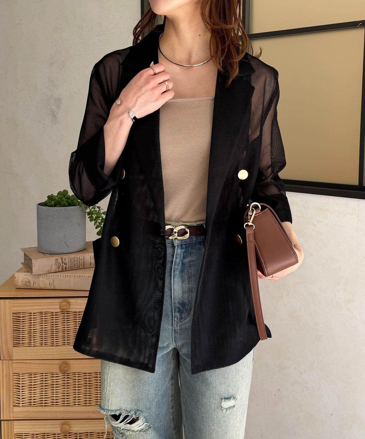 #メッシュジャケット #テーラードジャケット #メッシュ素材 #ゴールドボタン