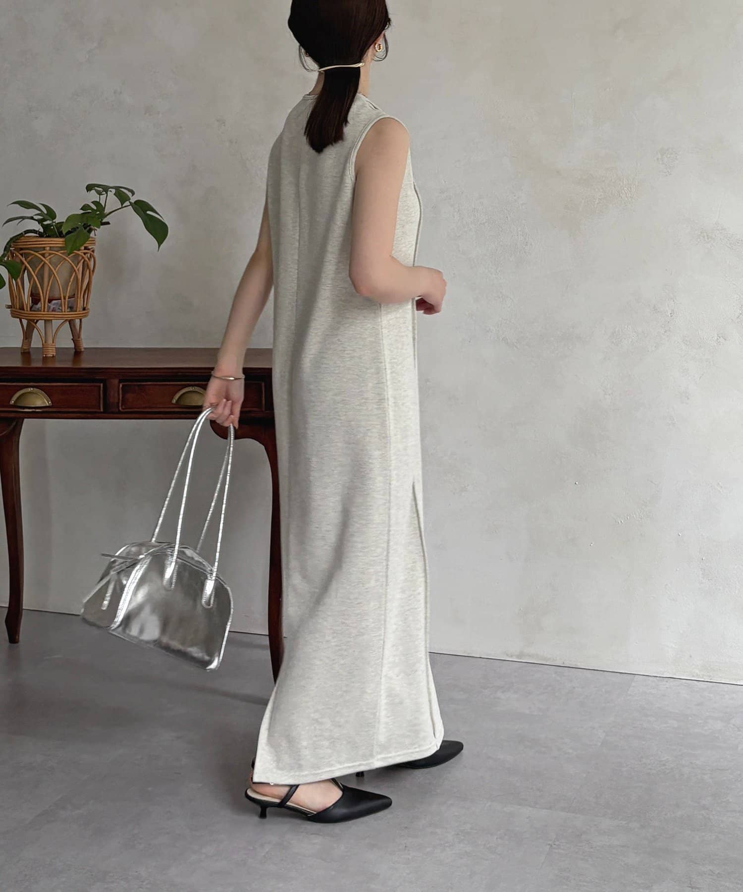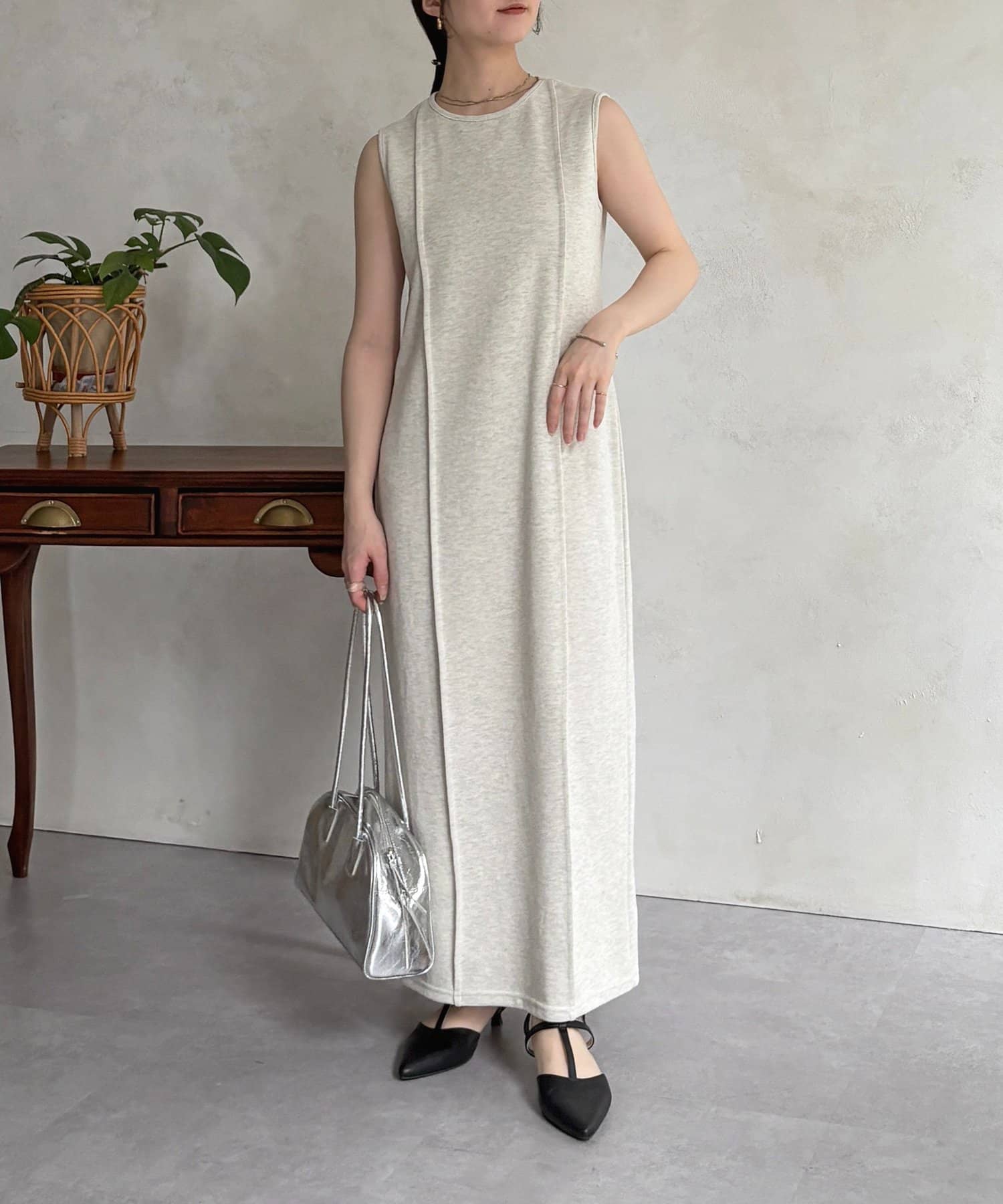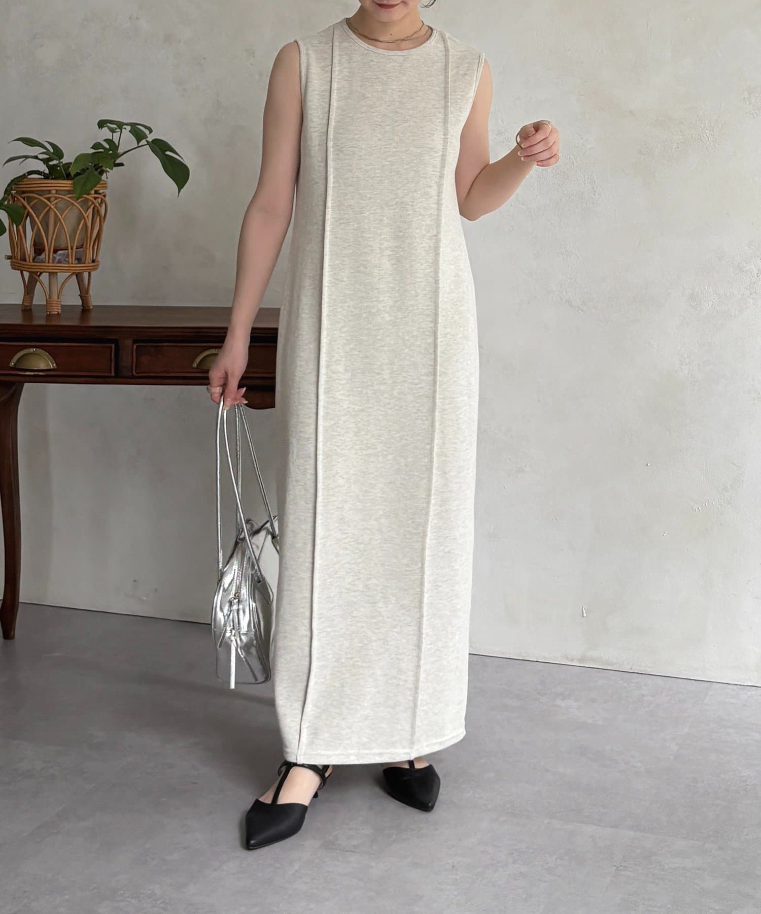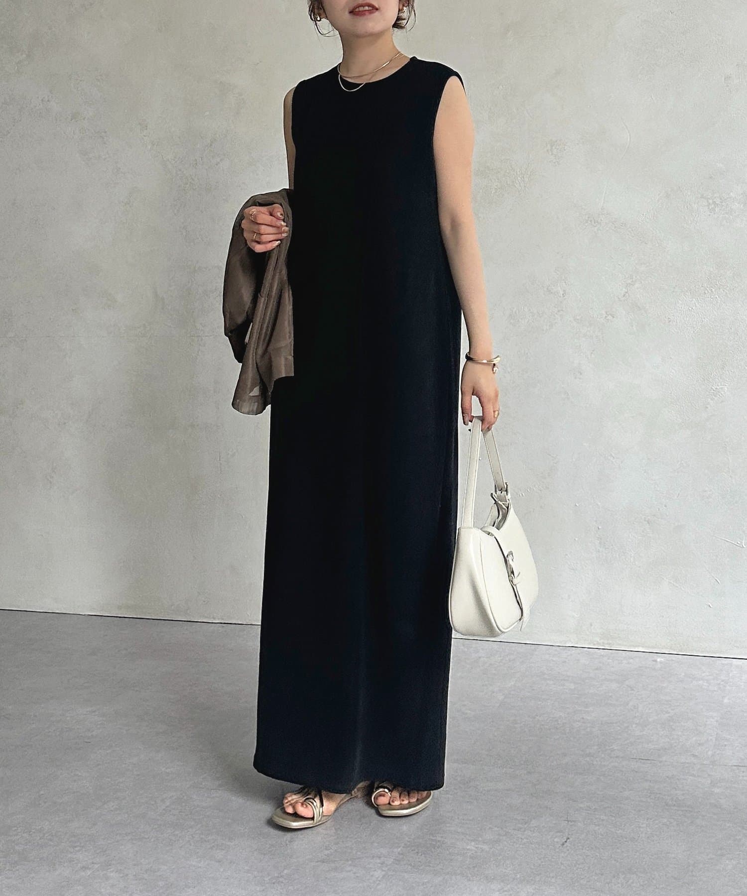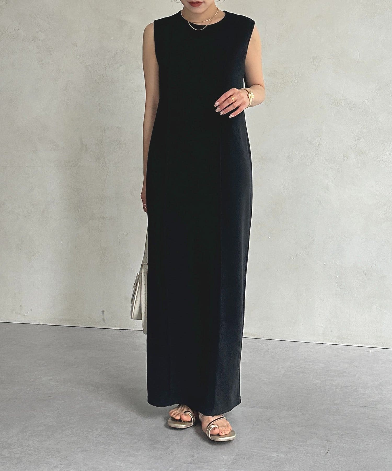#ノースリーブワンピース #ナローワンピース #リブ素材 #カジュアル #おでかけ