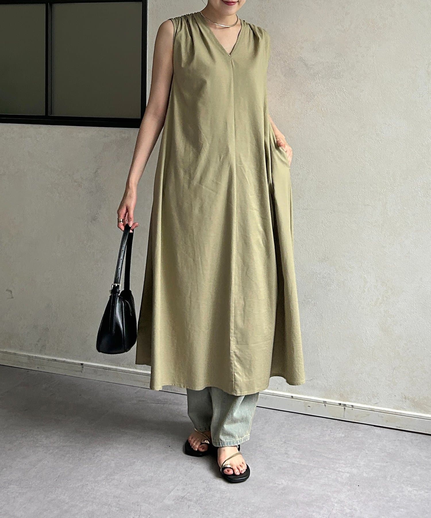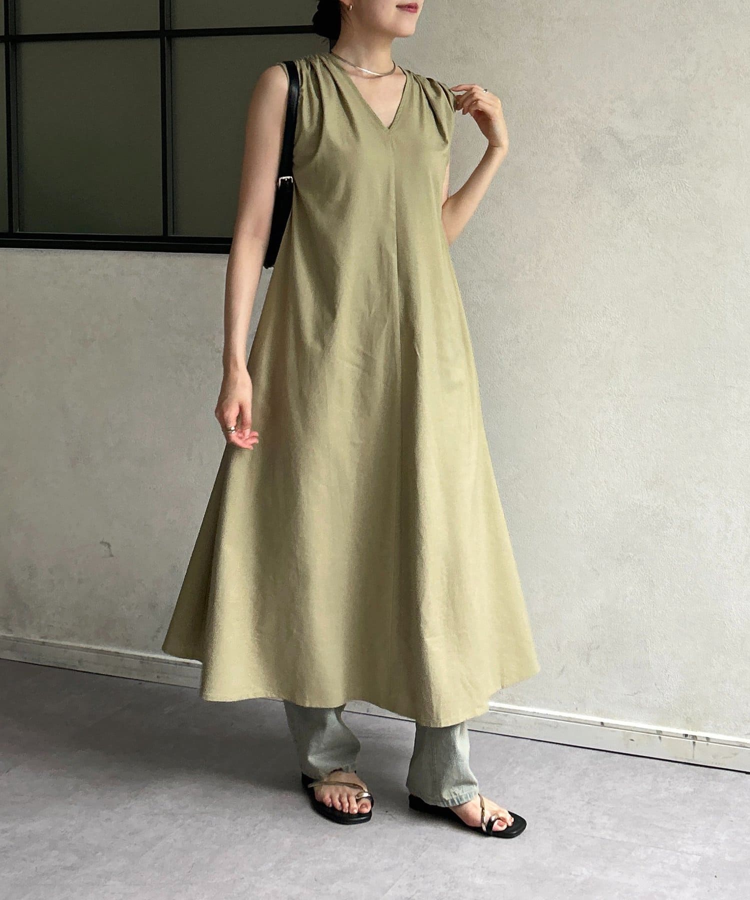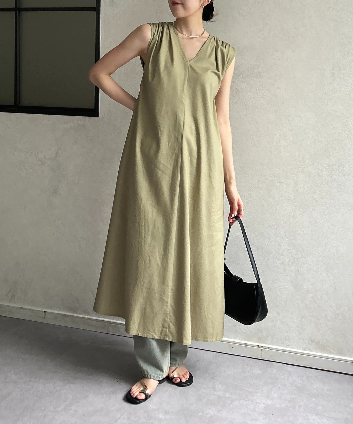 #ワンピース #Vネックワンピース #ギャザー #Vネック