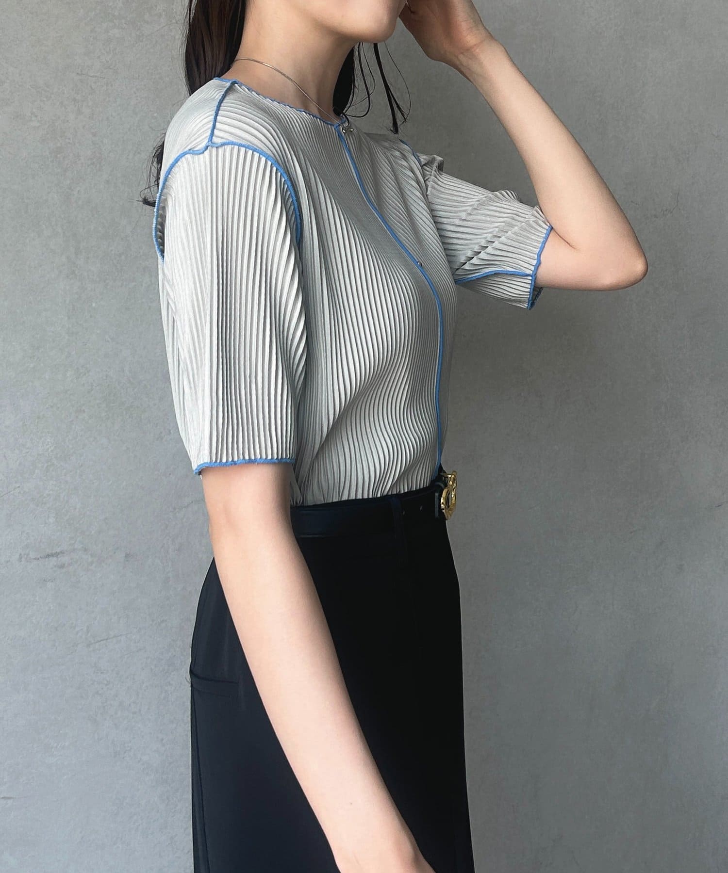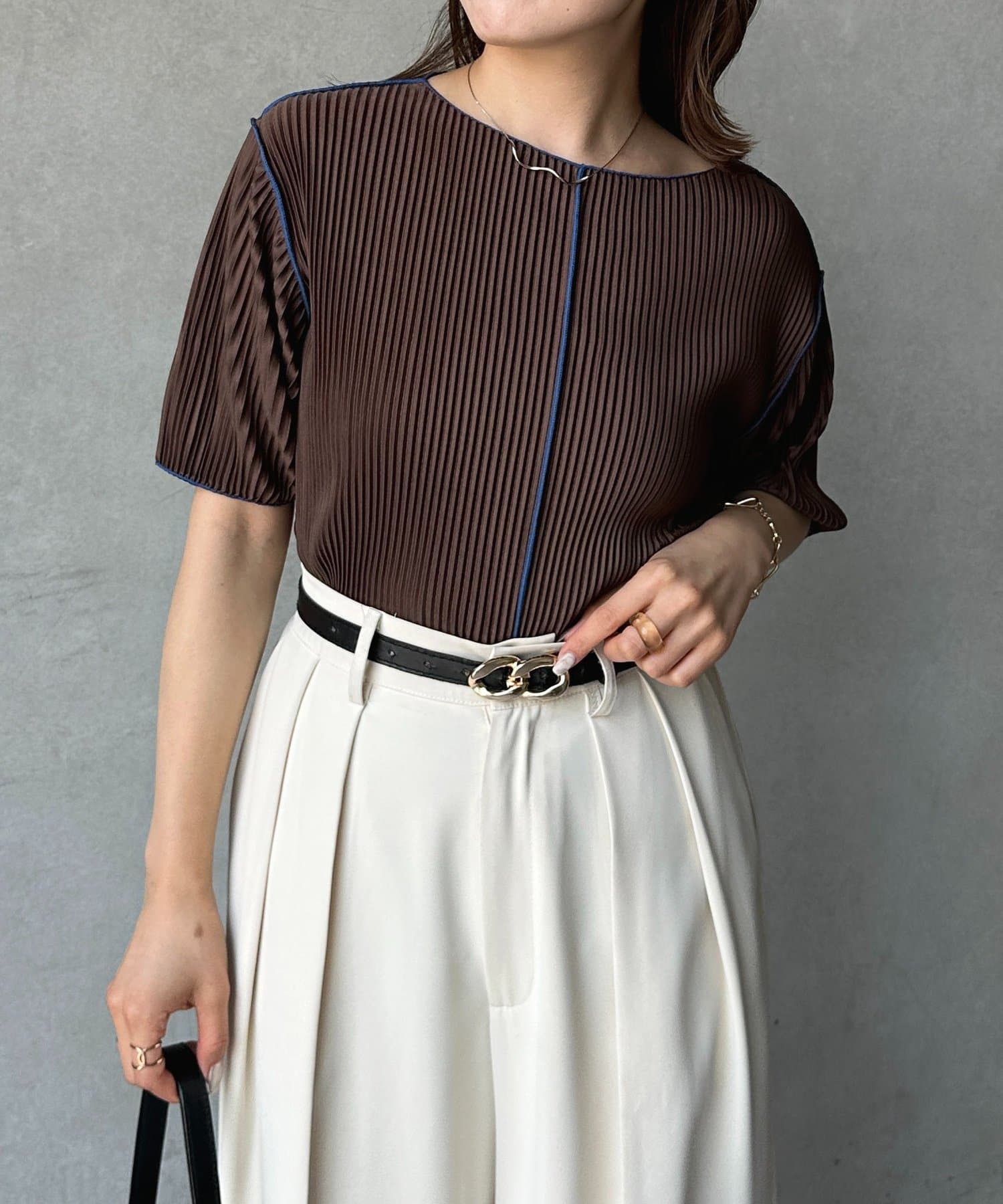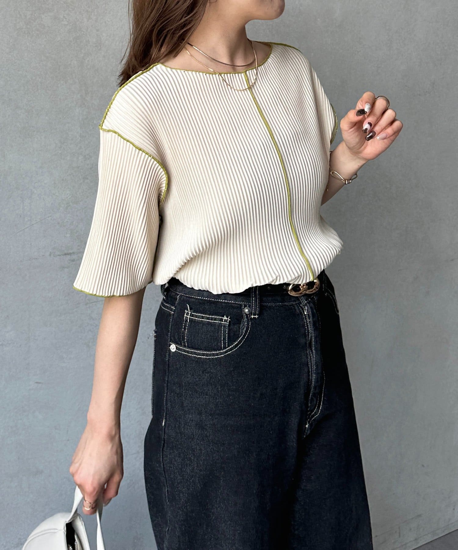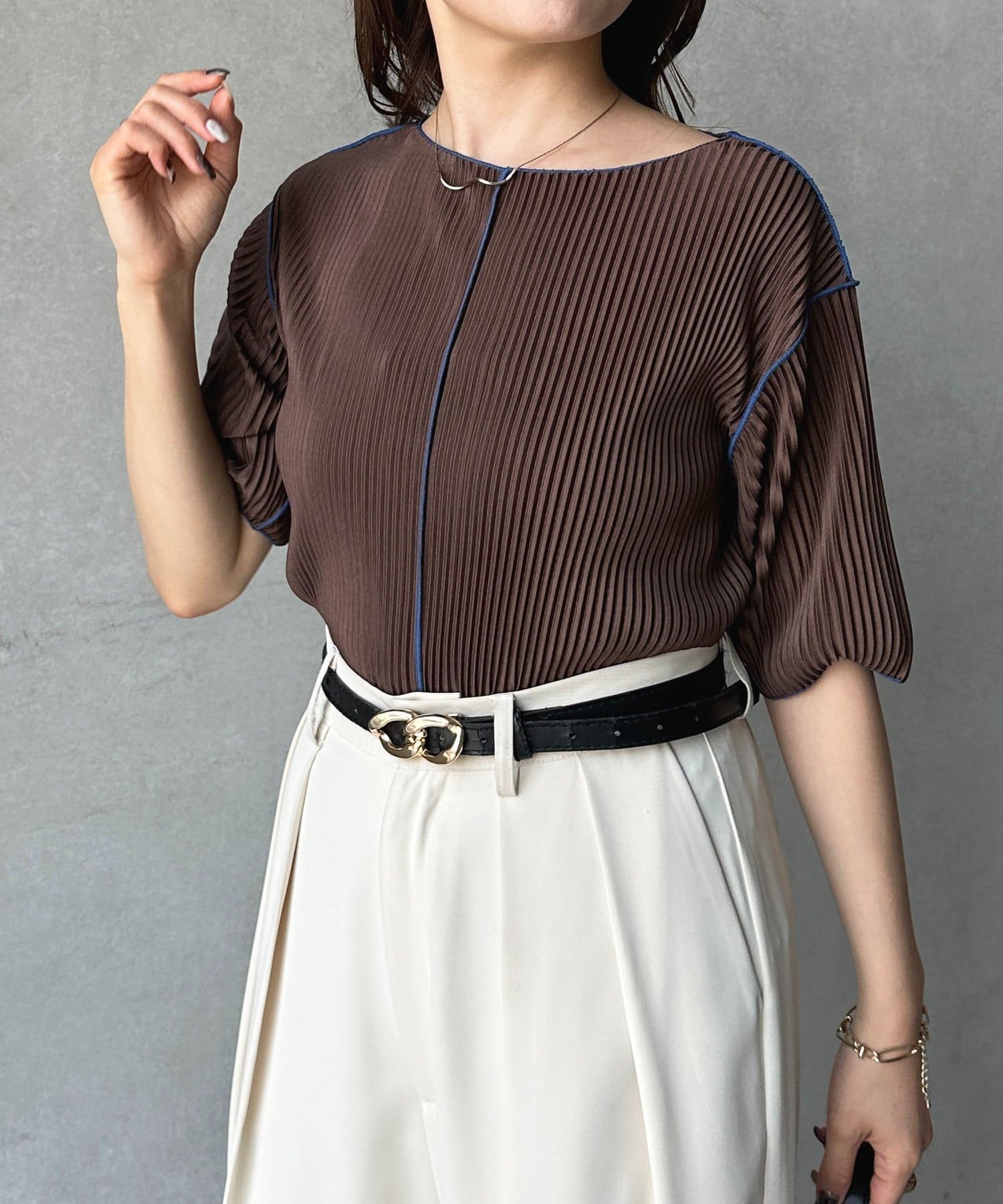 #プルオーバー #5分袖トップス #プリーツメロー #きれいめ
