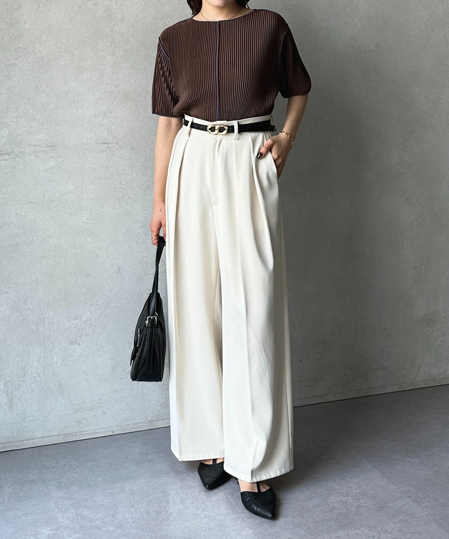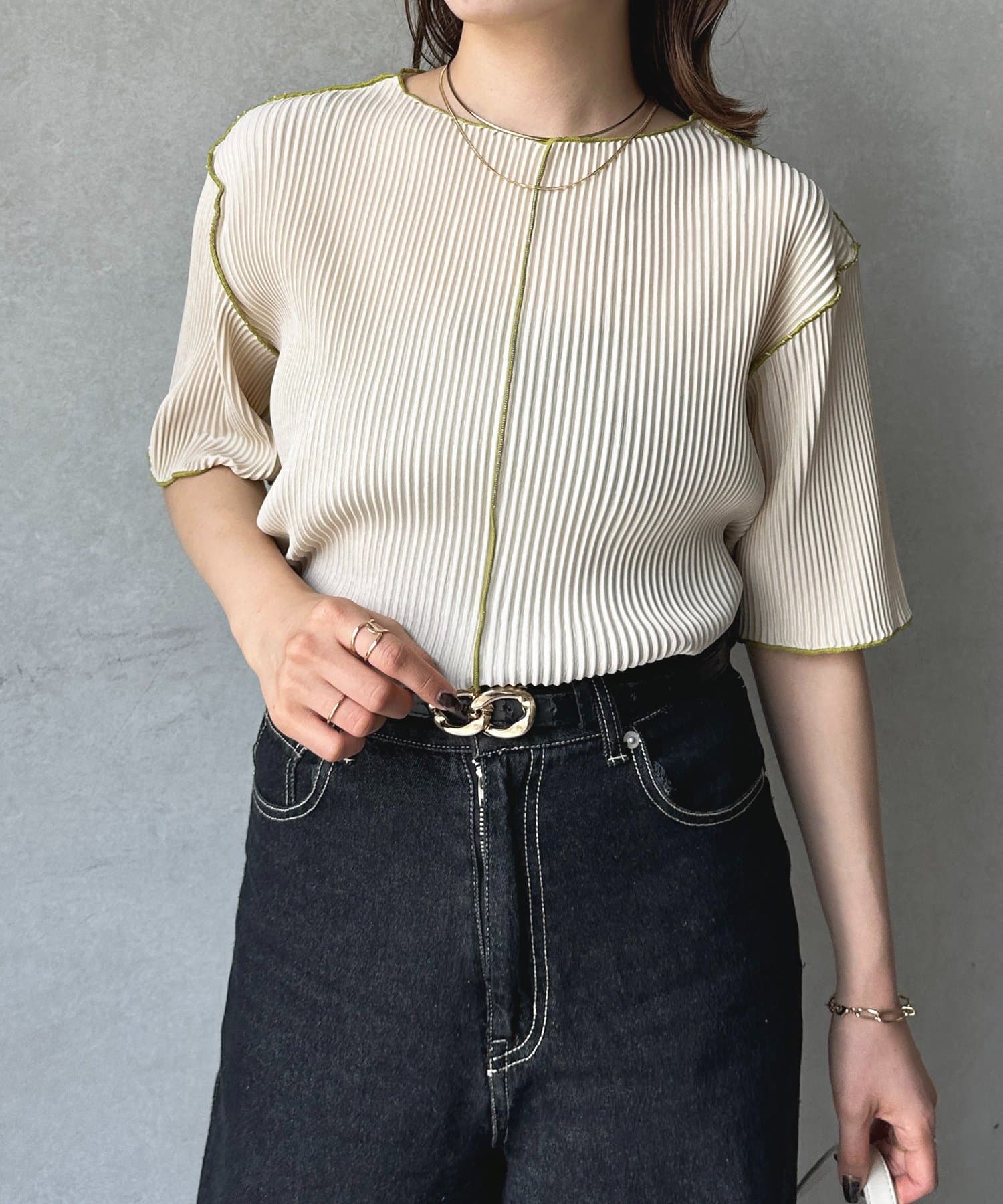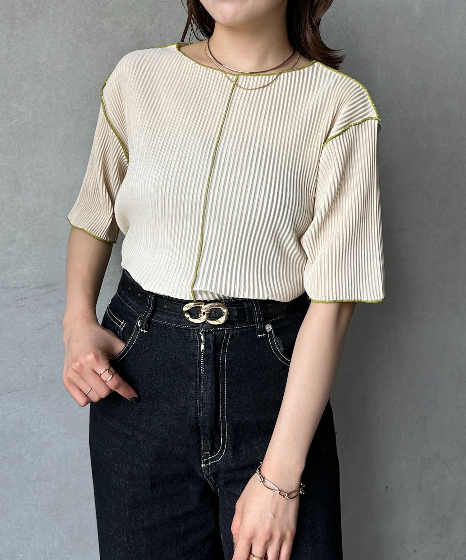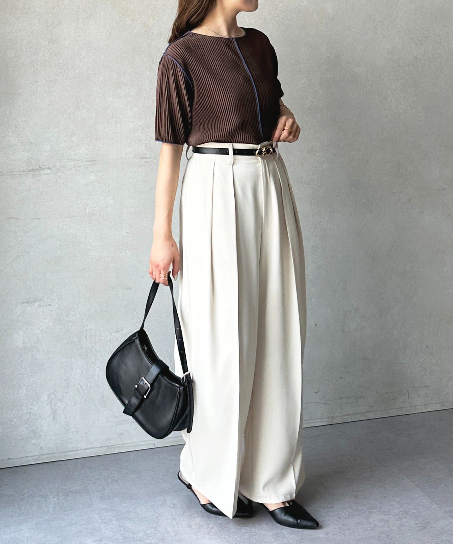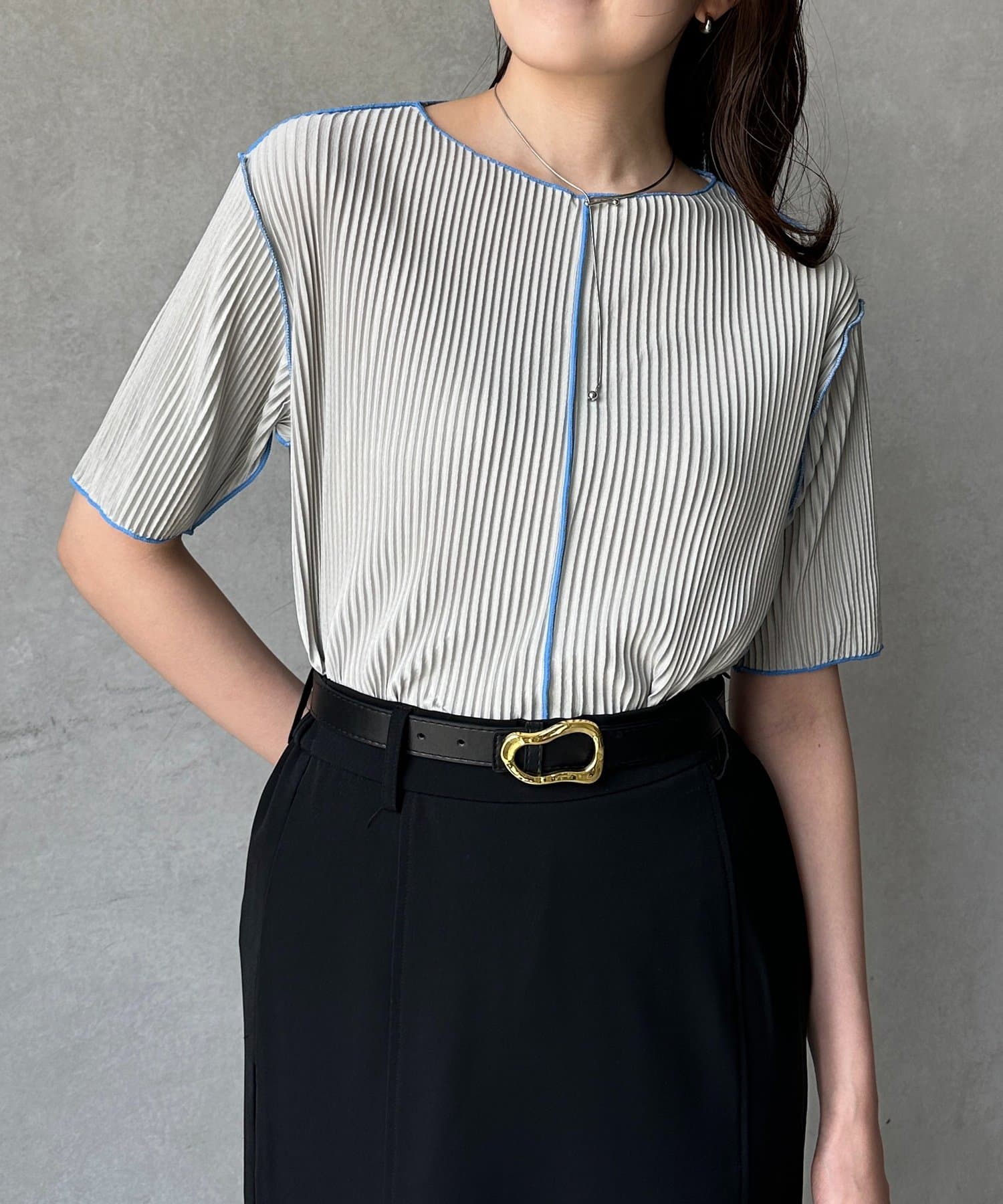 #プルオーバー #5分袖トップス #プリーツメロー #きれいめ