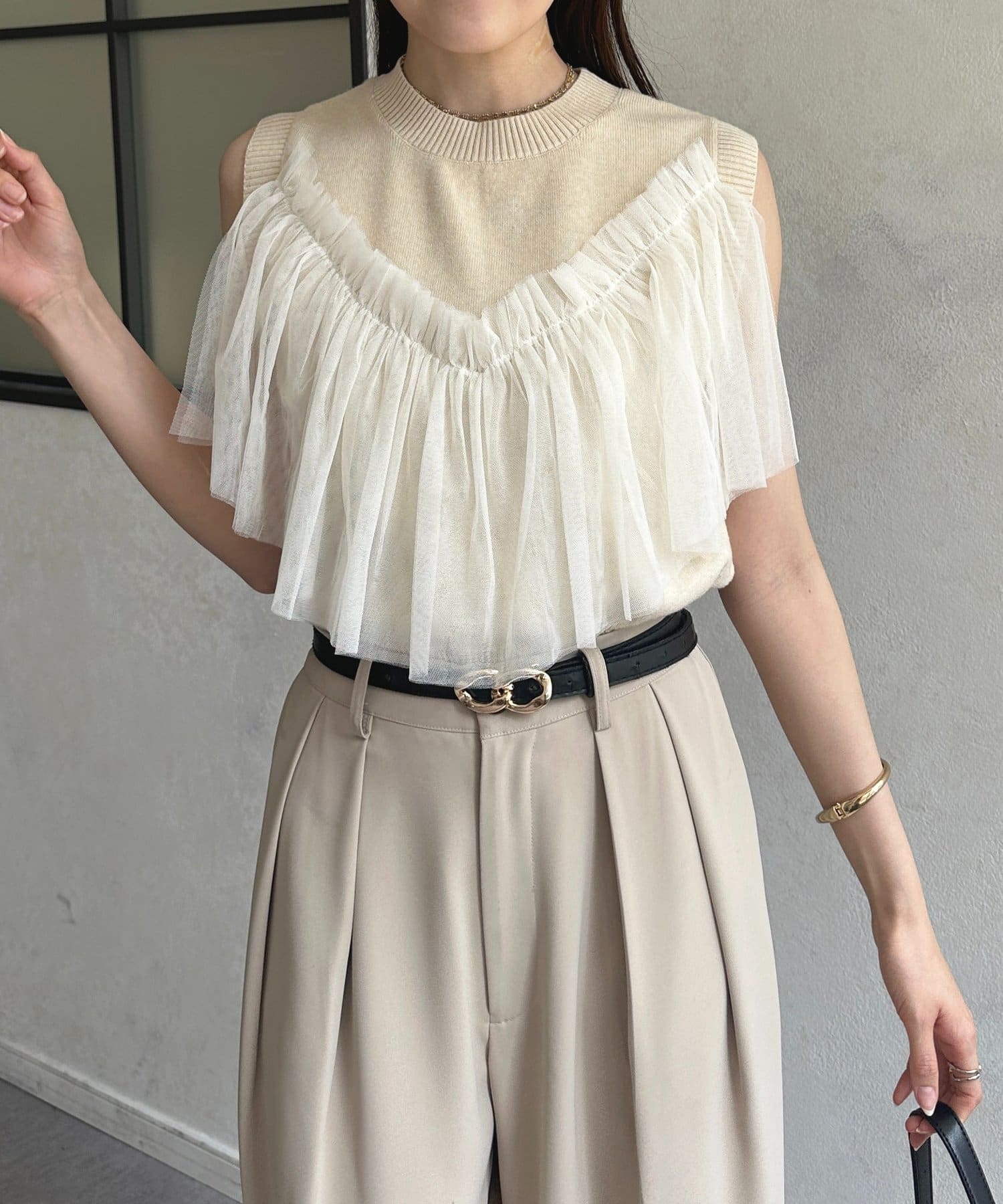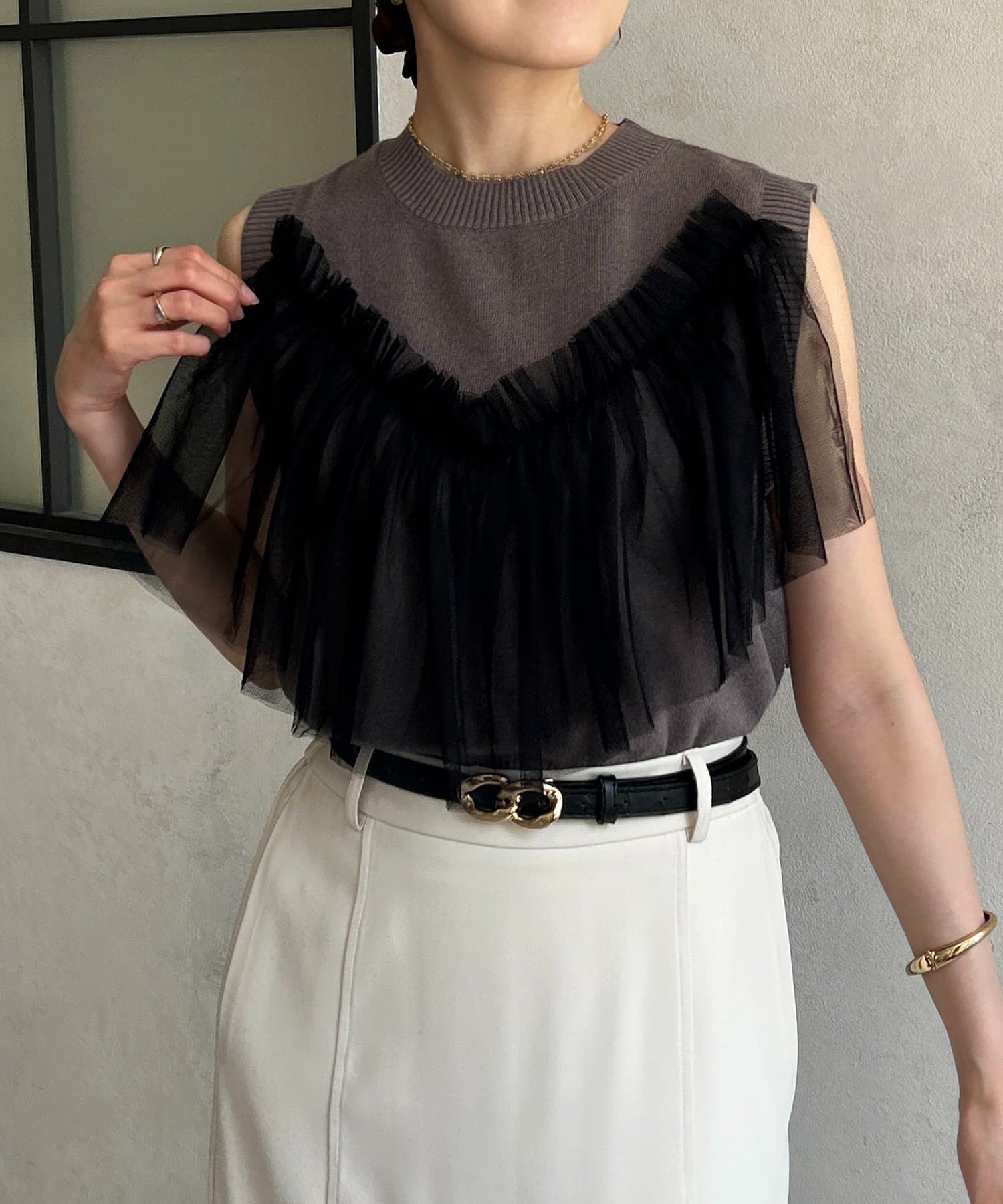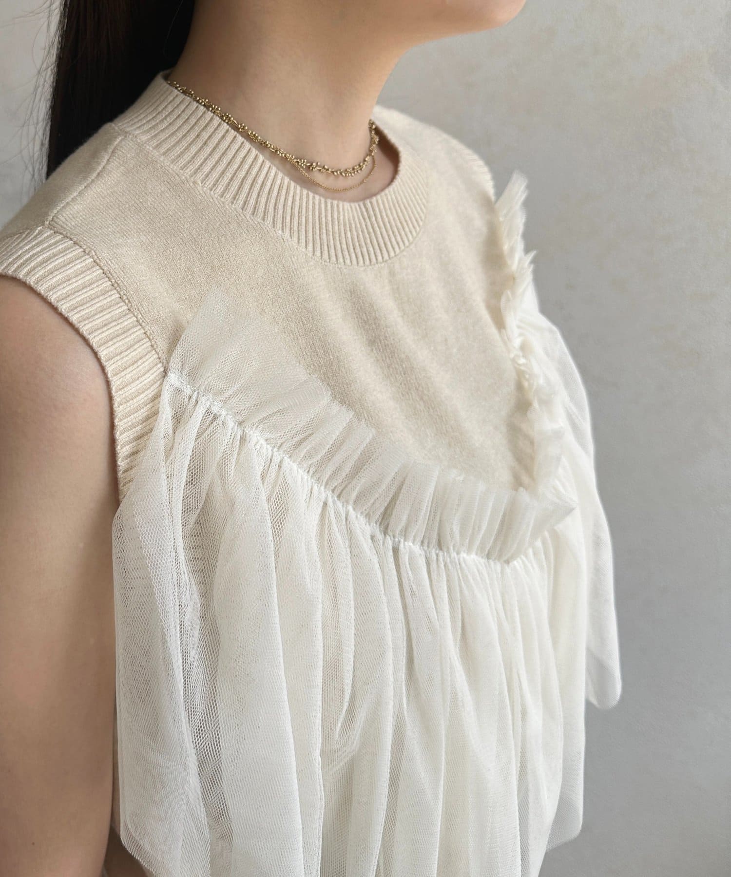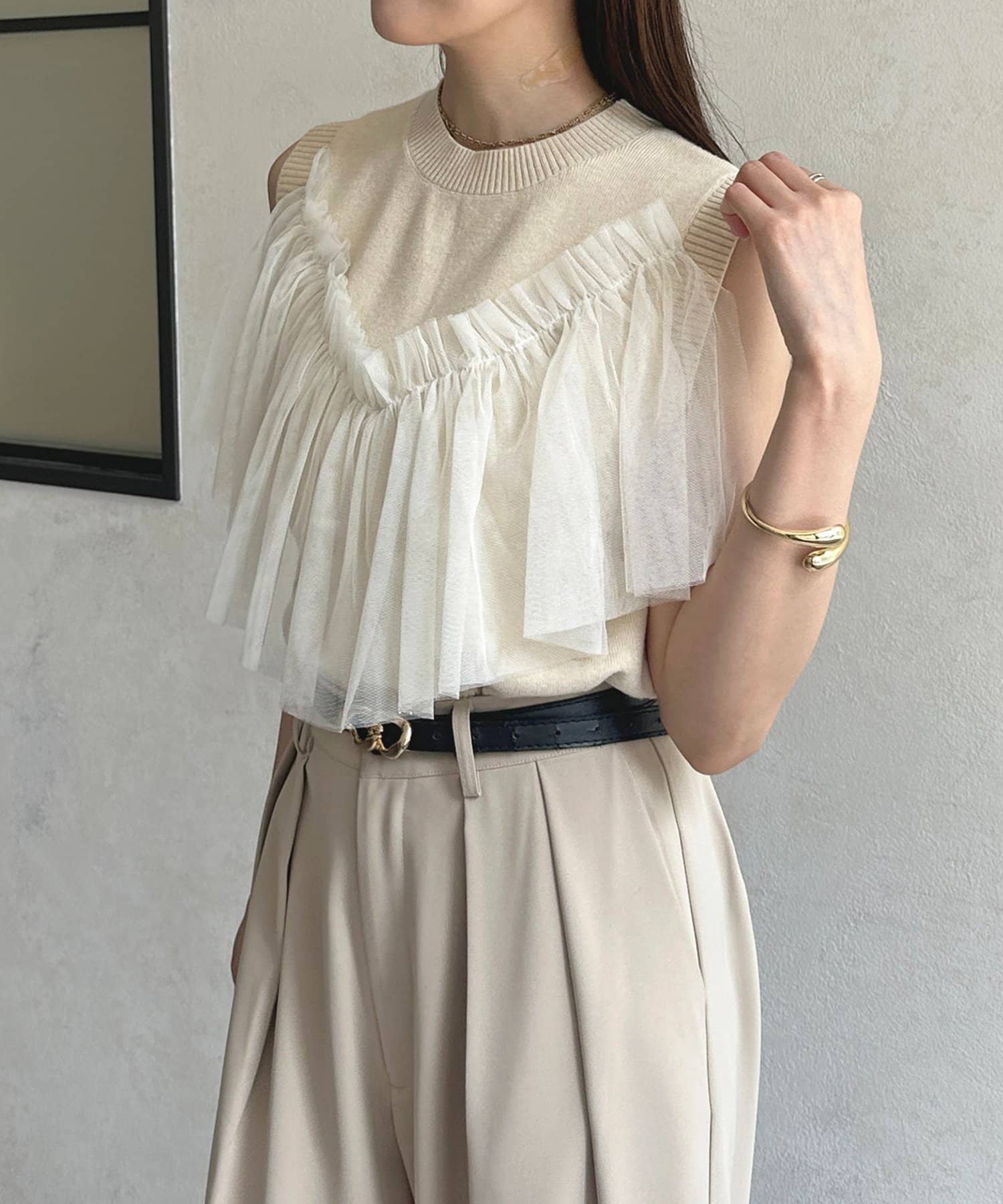 #ノースリニット #チュールビスチェ #トレンド #きれいめ