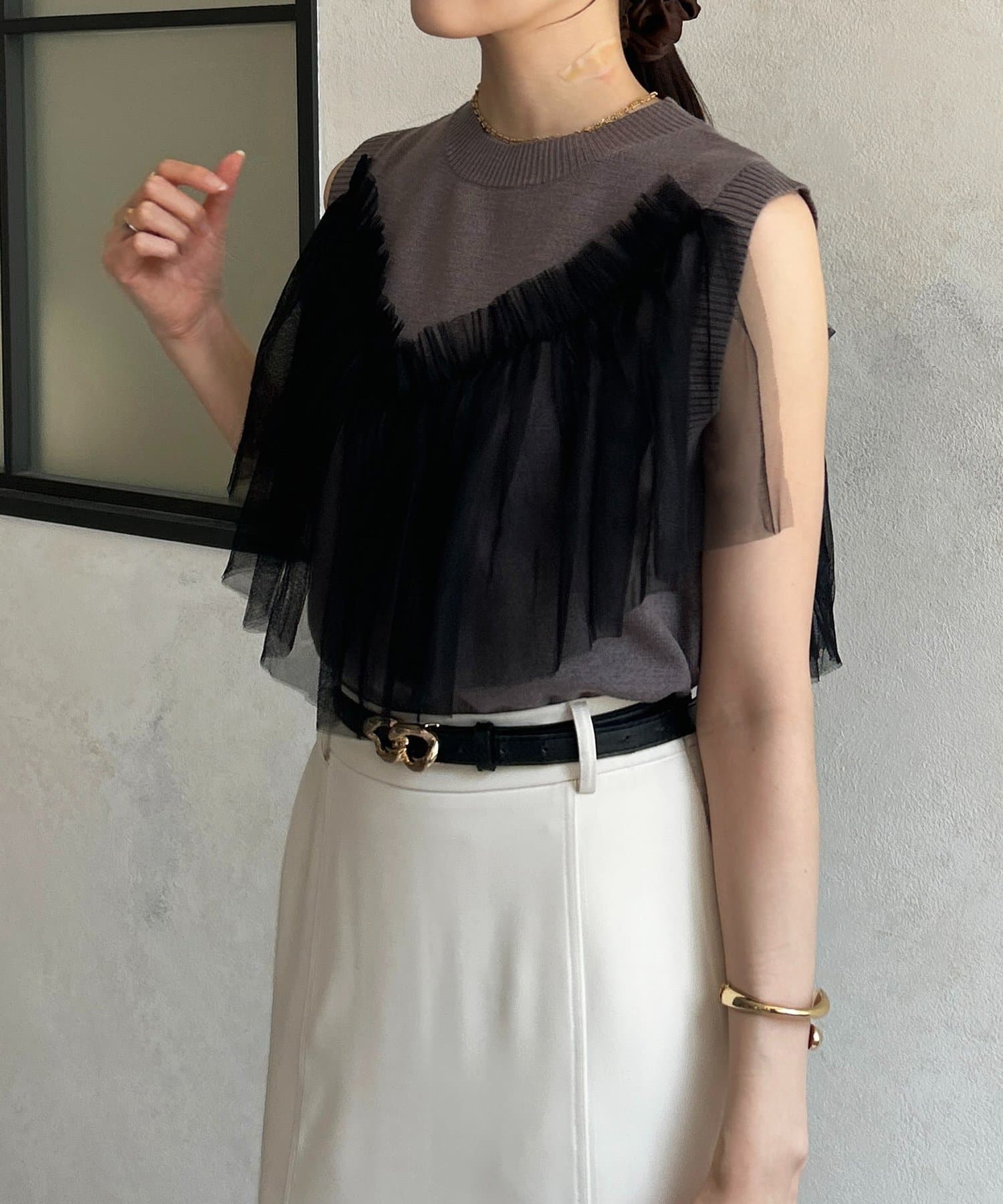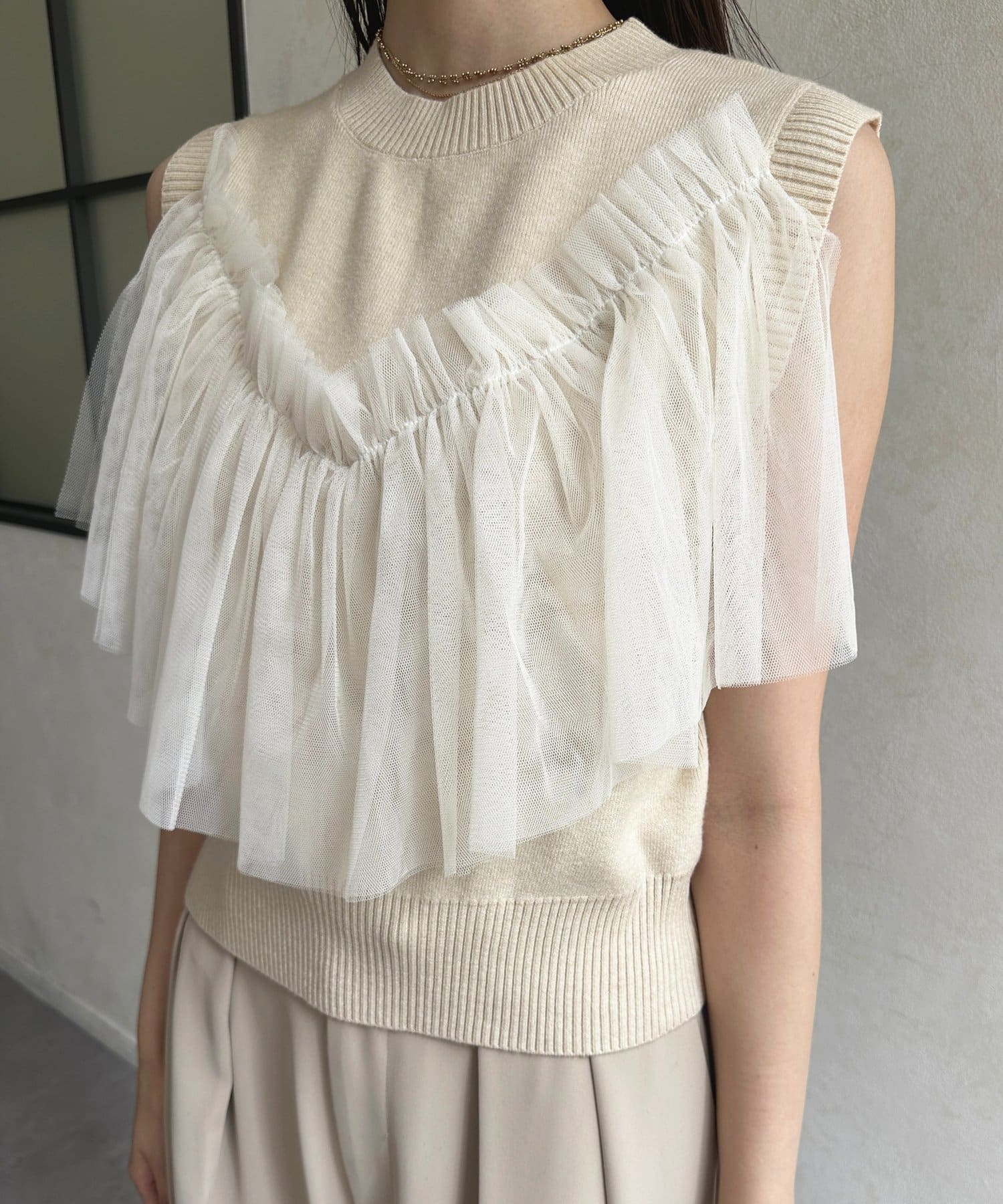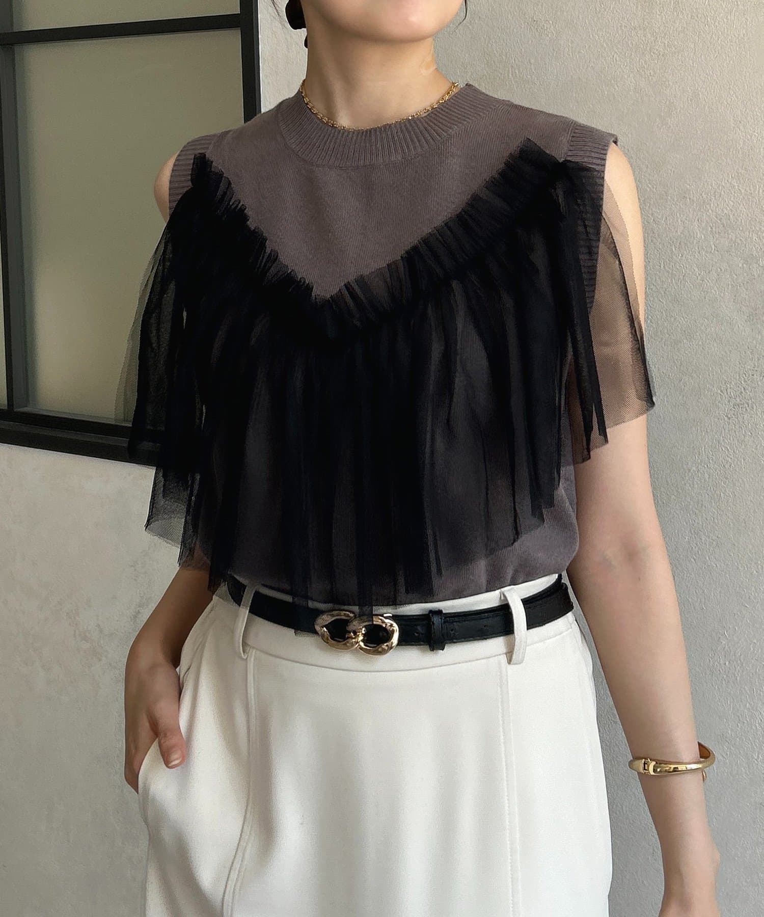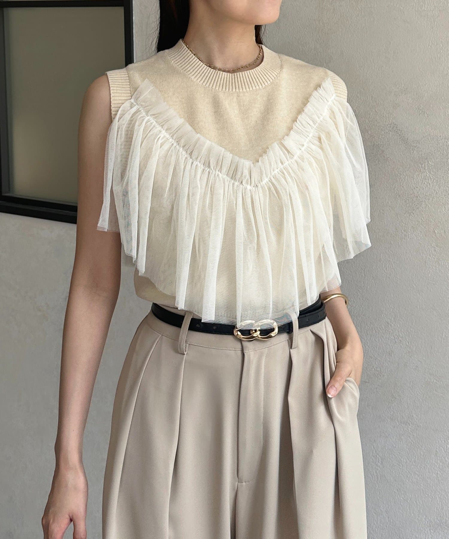 #ノースリニット #チュールビスチェ #トレンド #きれいめ