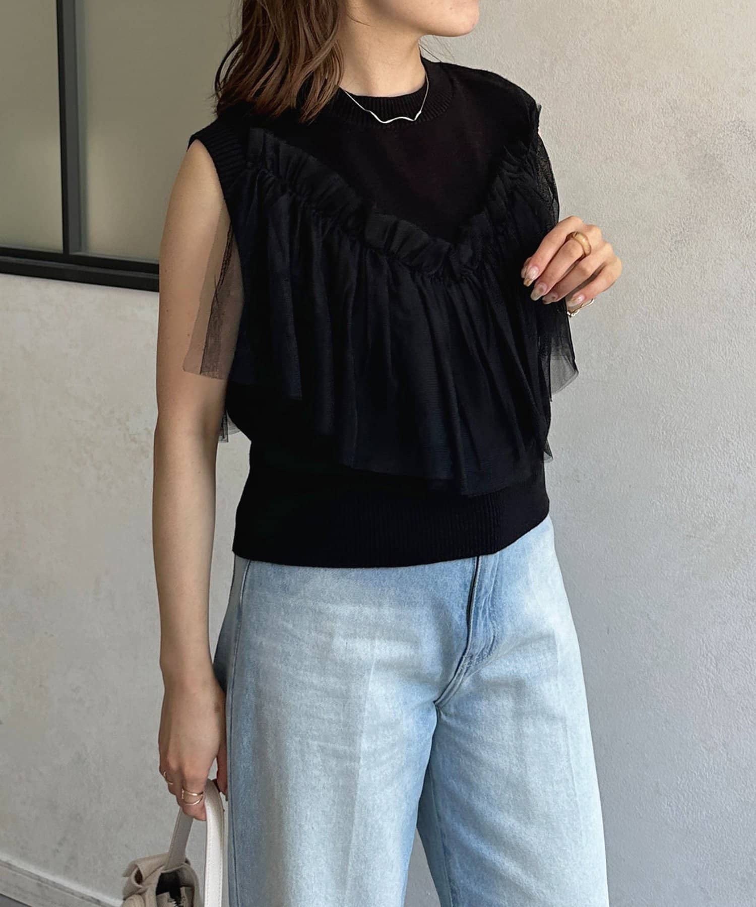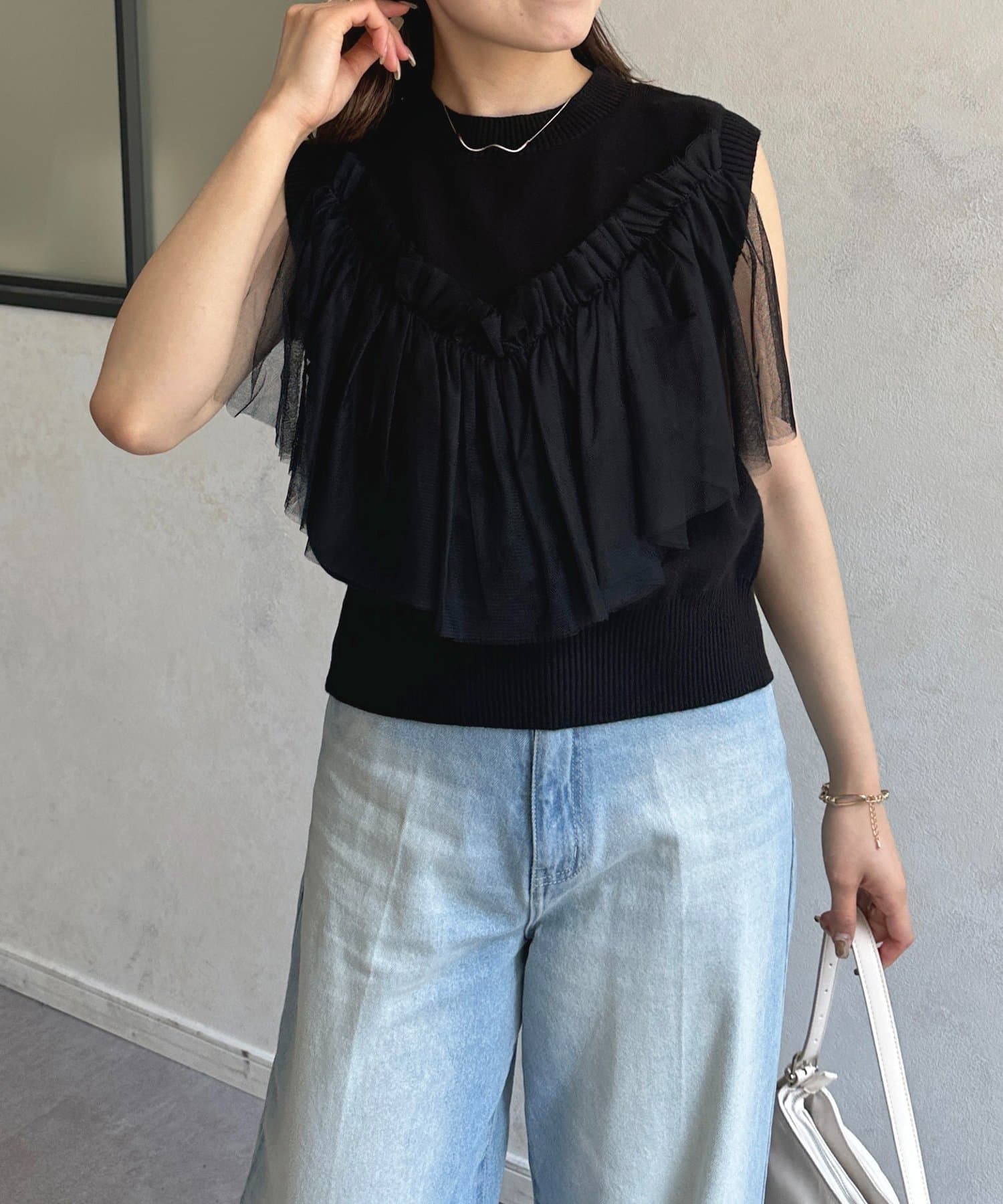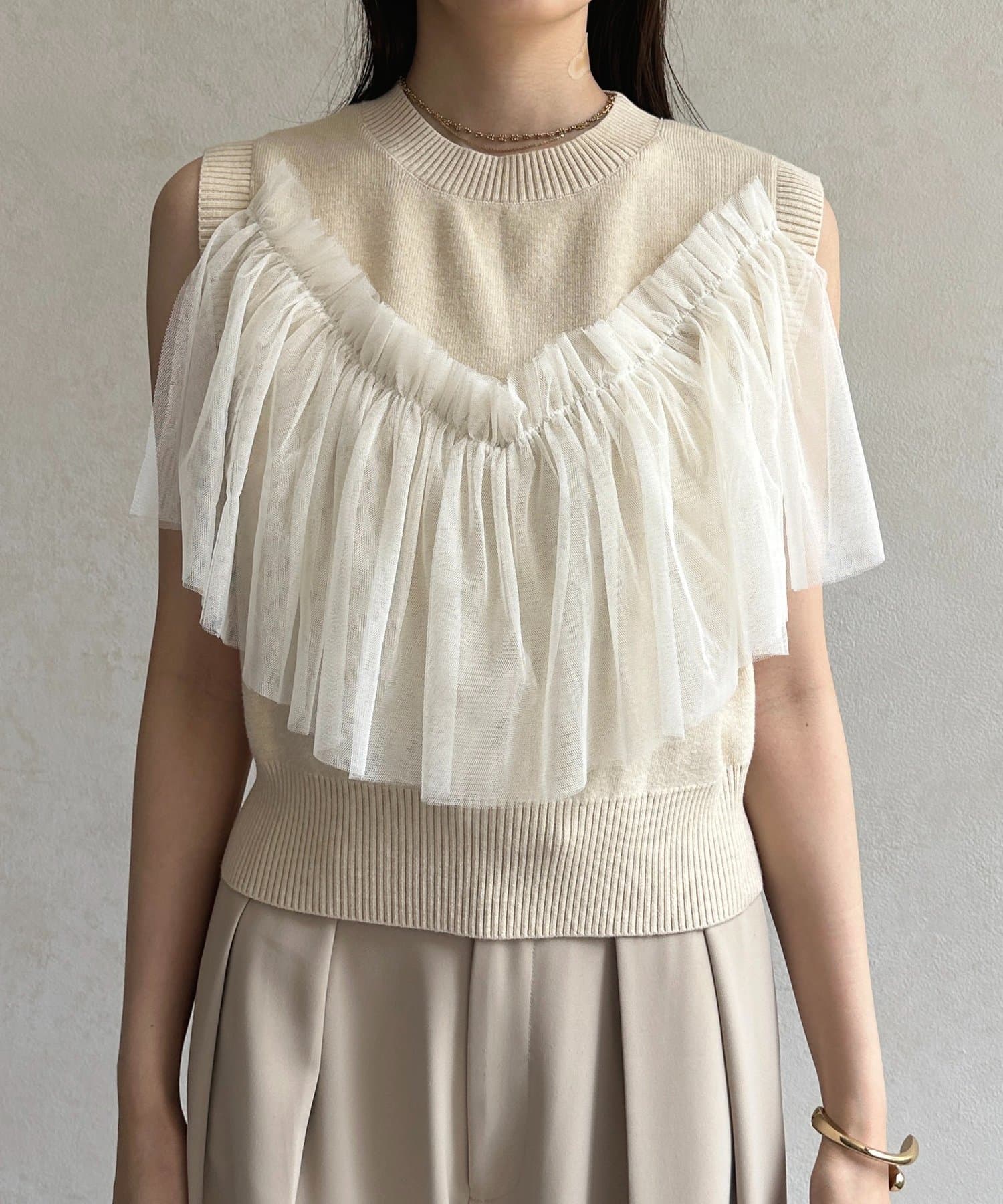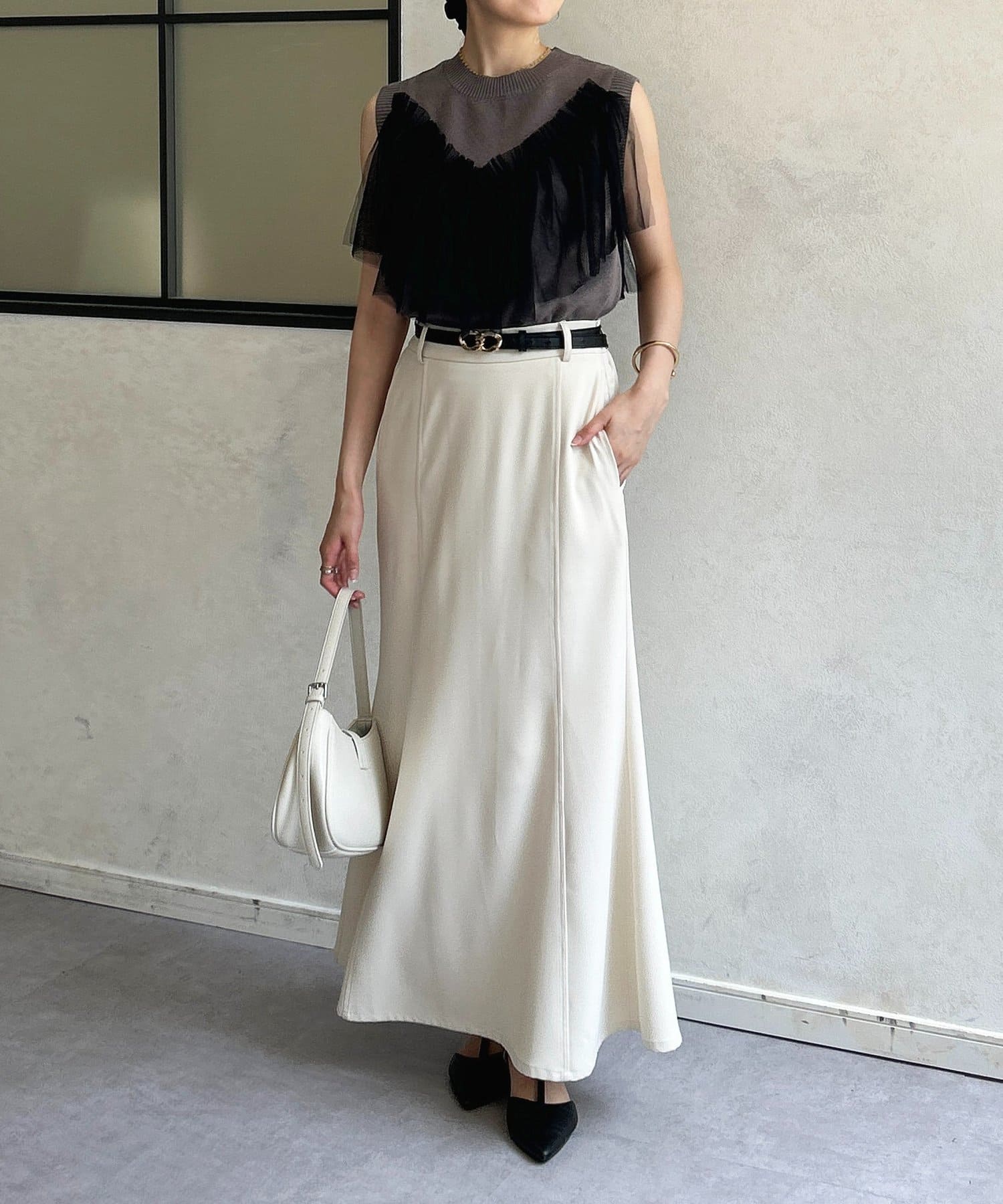#ノースリニット #チュールビスチェ #トレンド #きれいめ