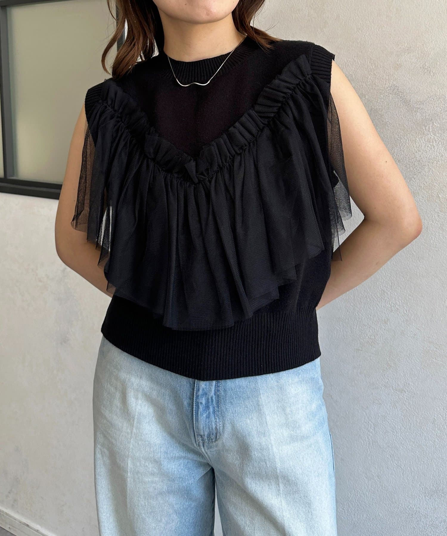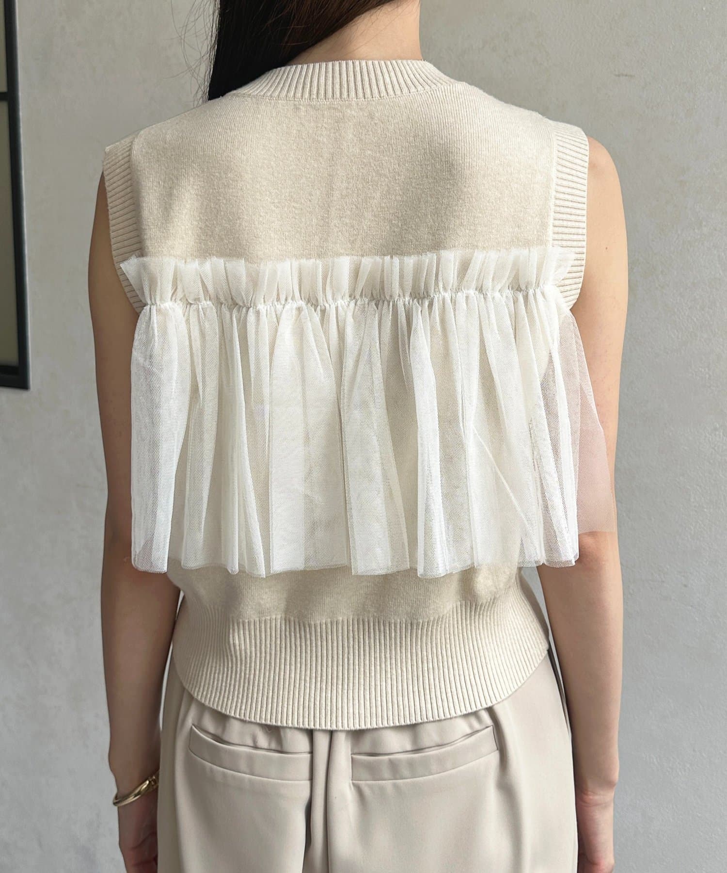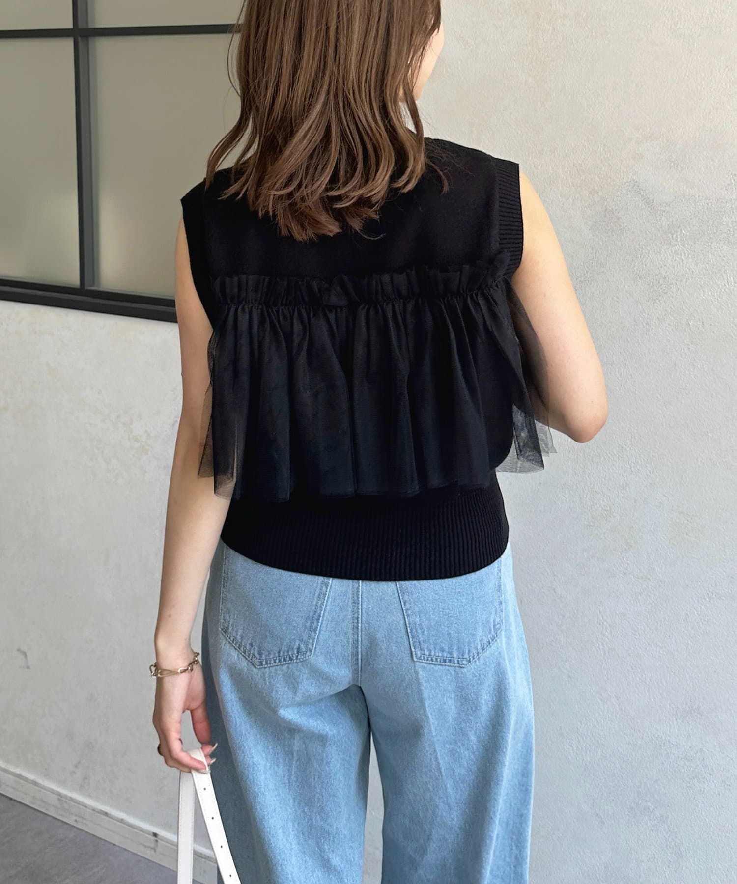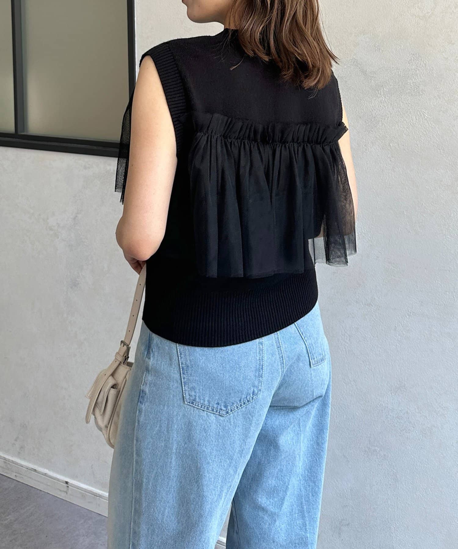 #ノースリニット #チュールビスチェ #トレンド #きれいめ