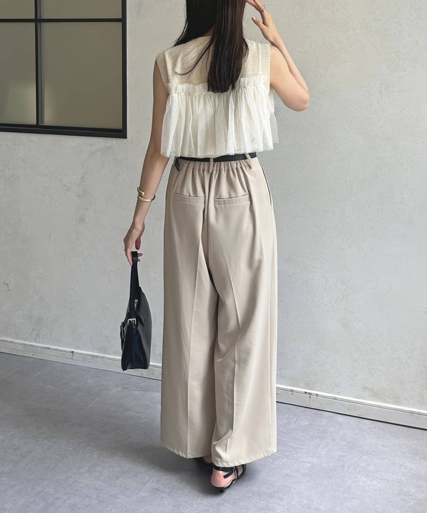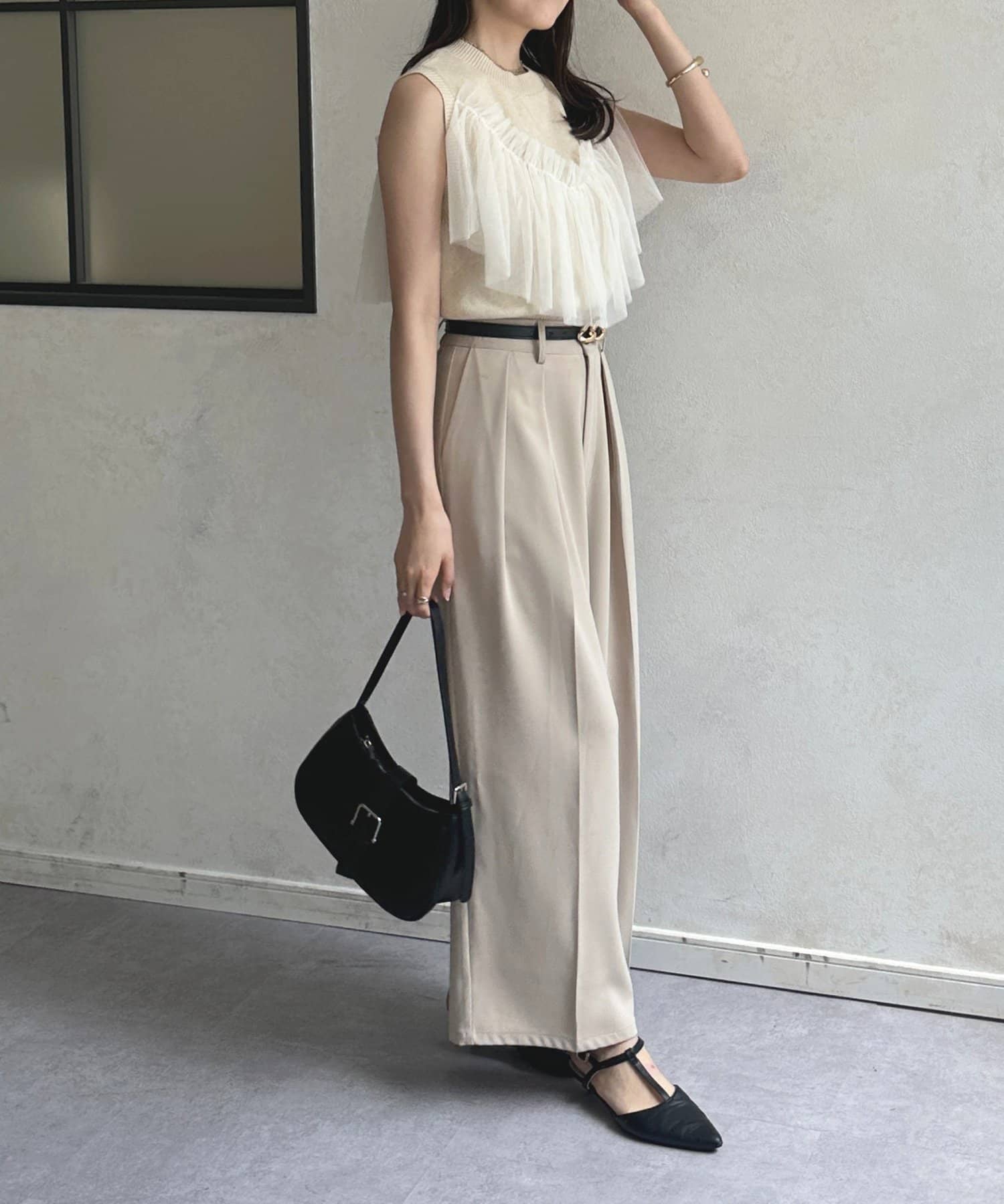パンツにアクセントをプラスしたスタイリングも楽しめます。