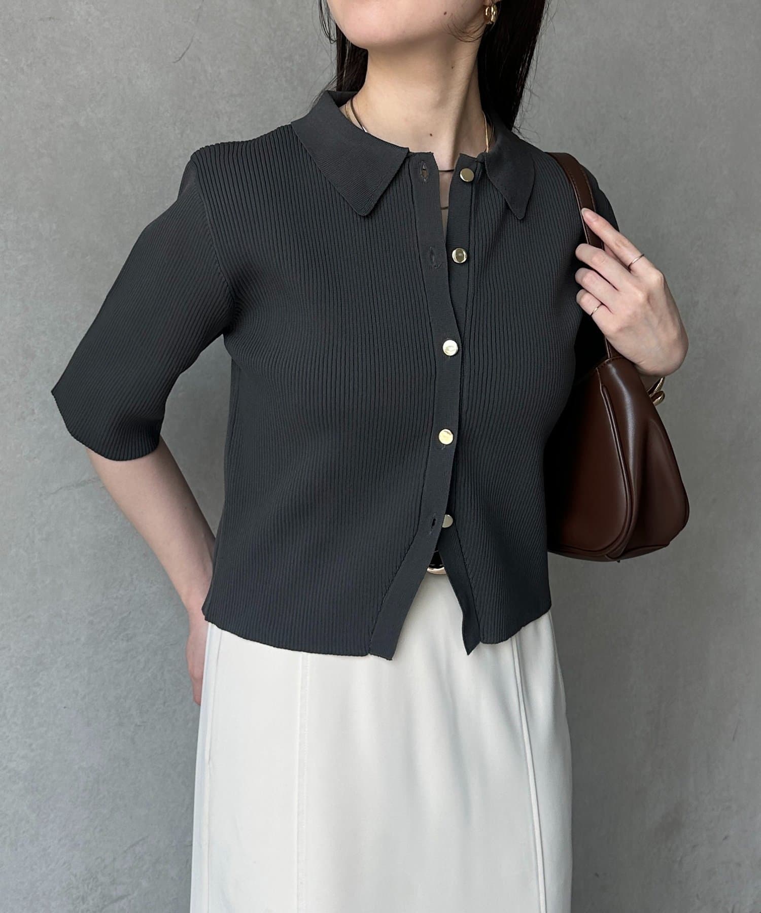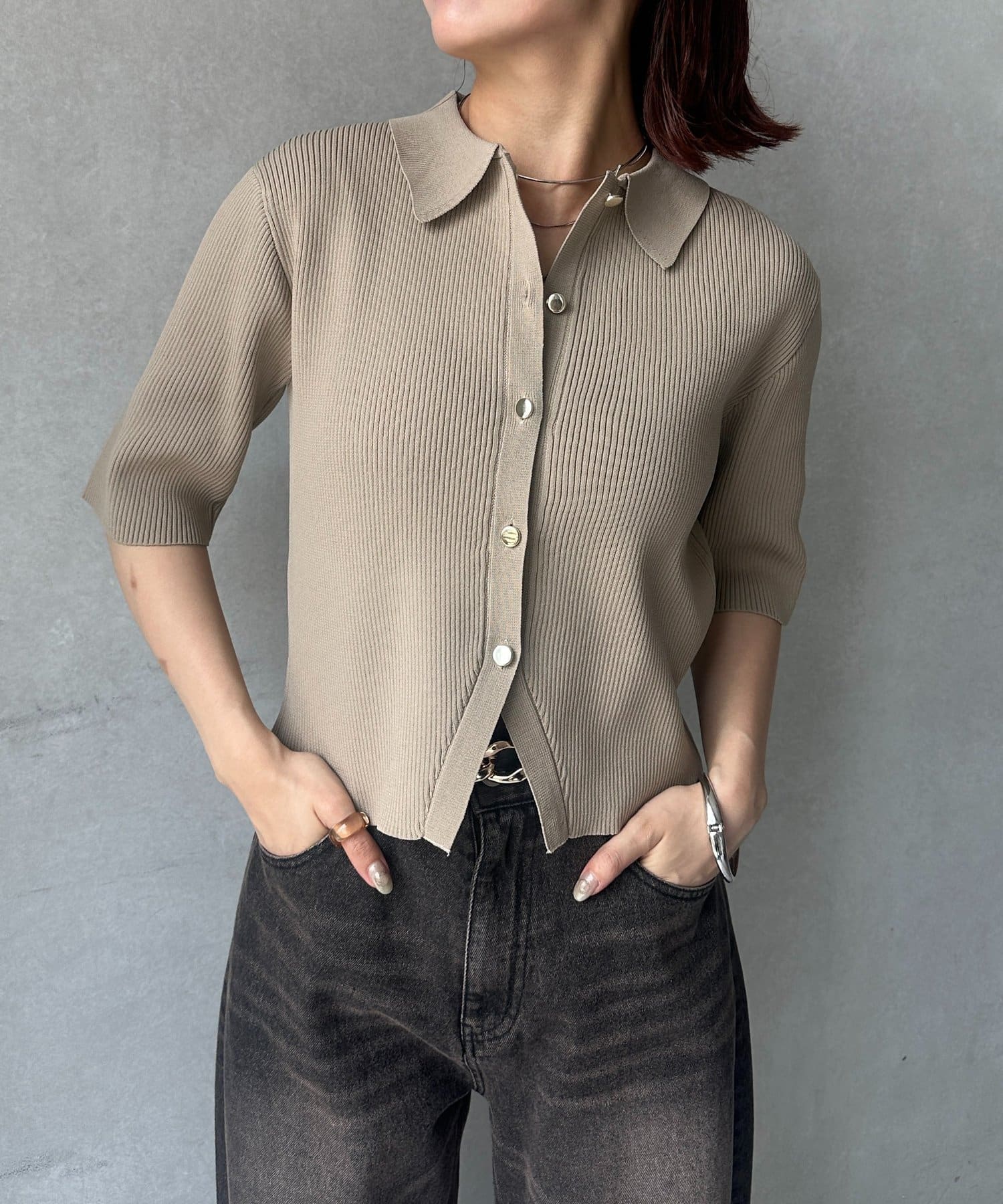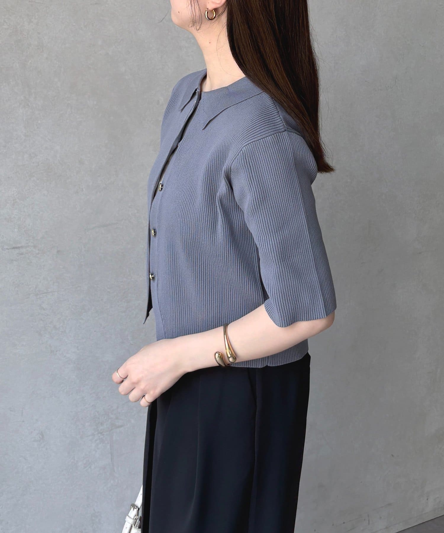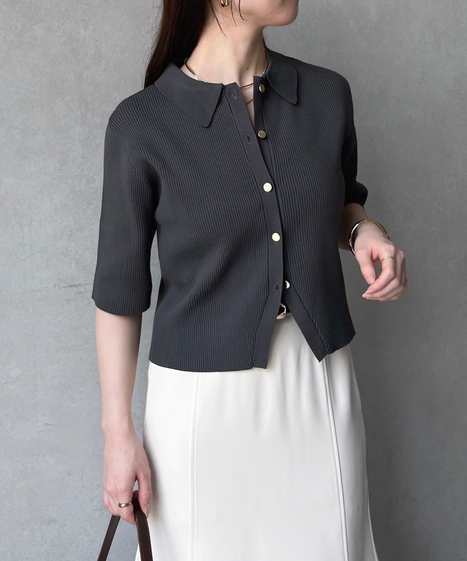 #カーディガン #リブカーディガン #襟付き #5分袖 #きれいめ