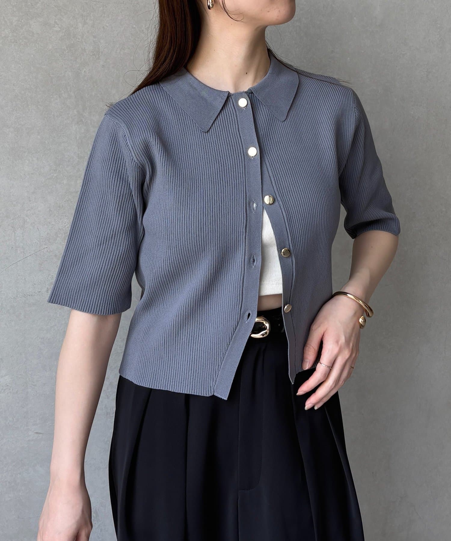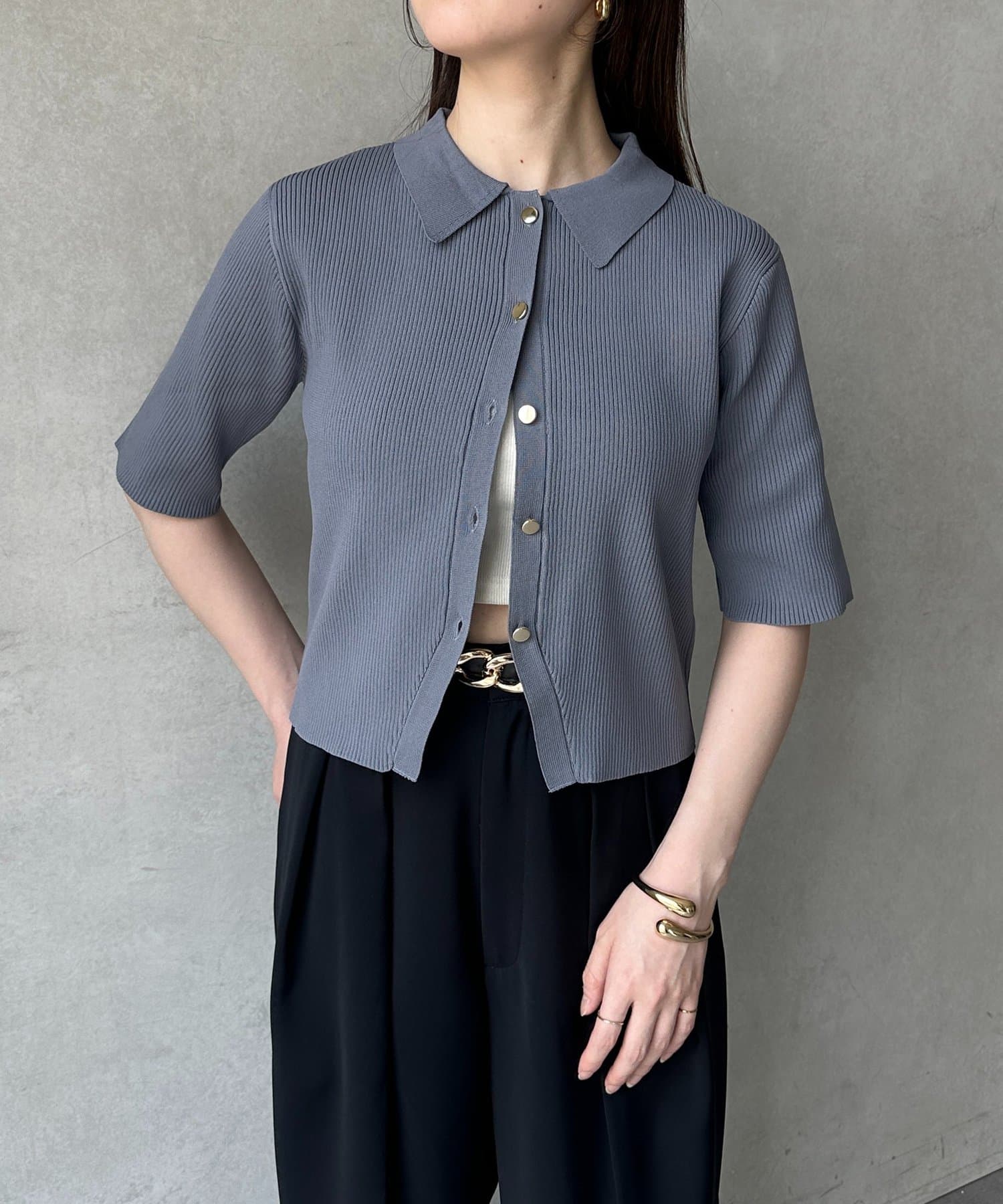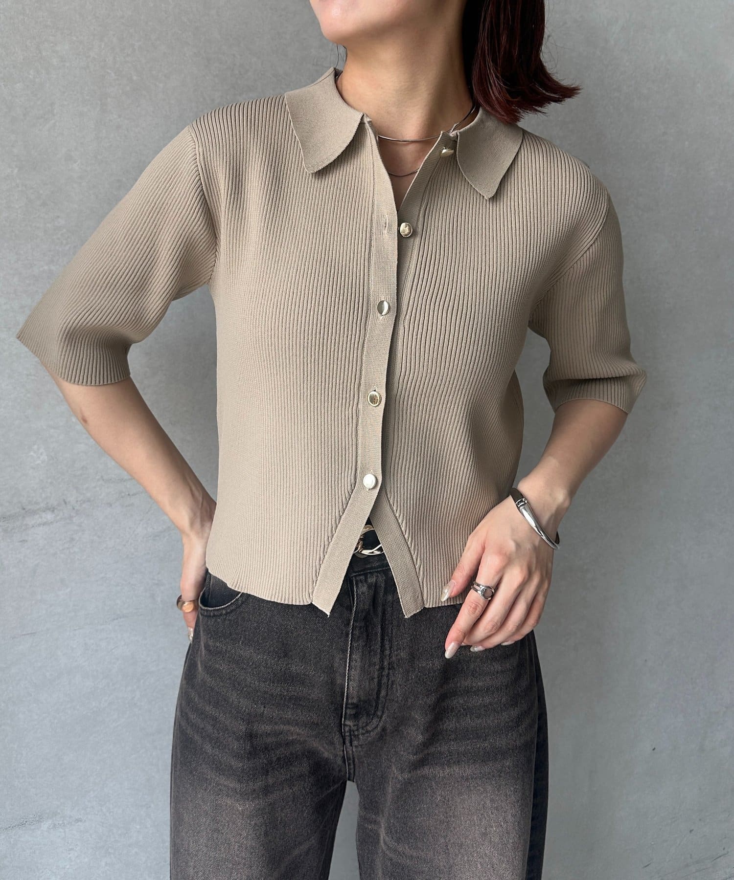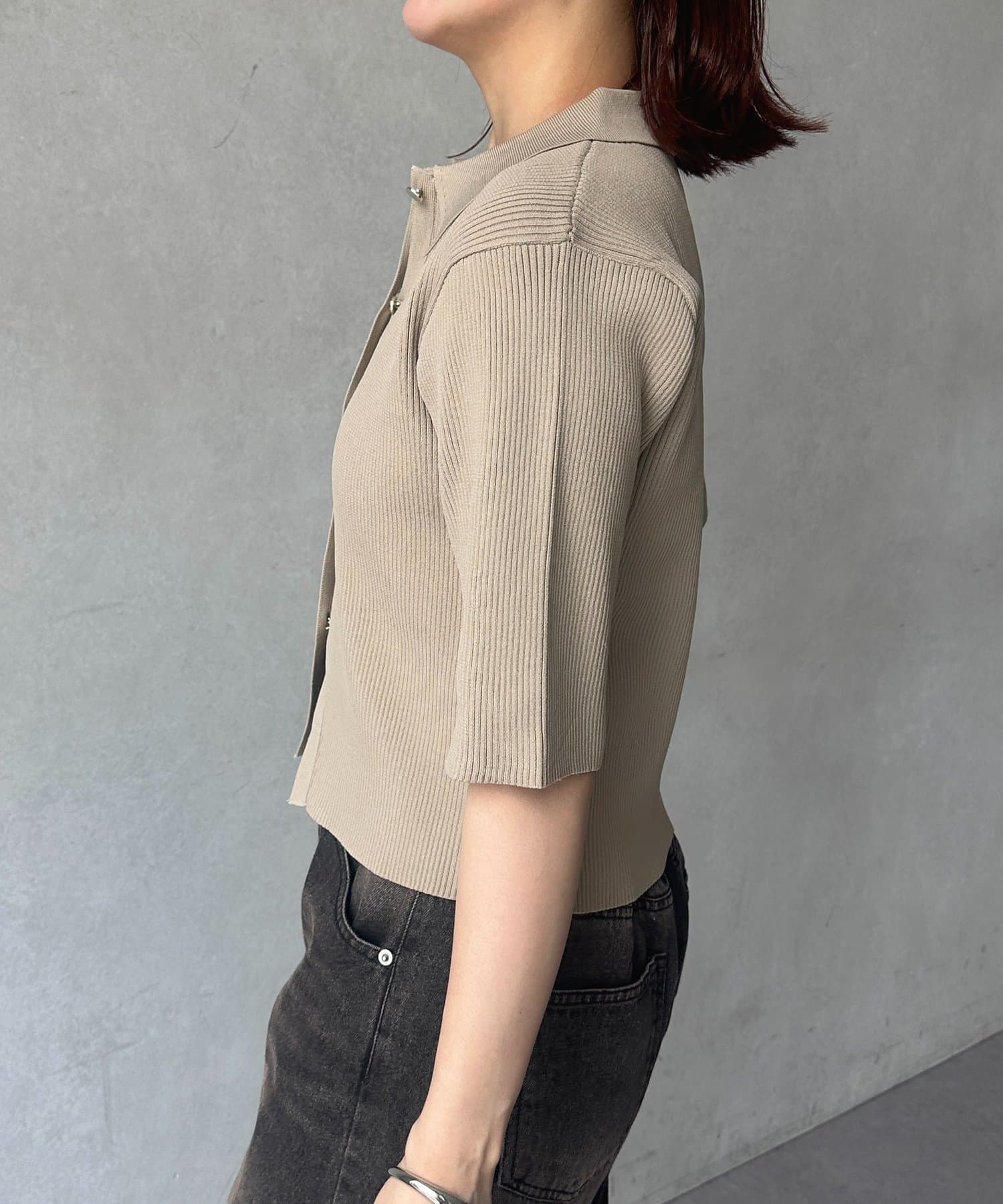 #カーディガン #リブカーディガン #襟付き #5分袖 #きれいめ