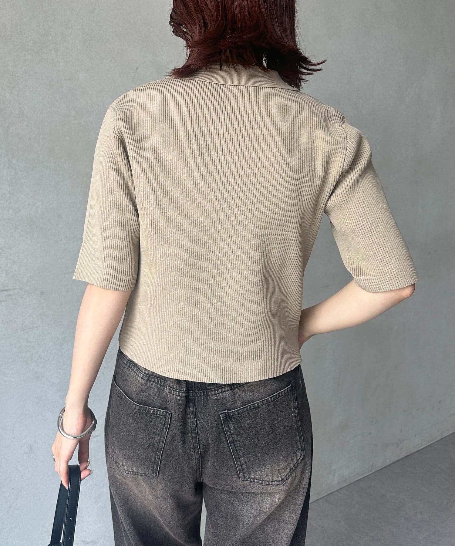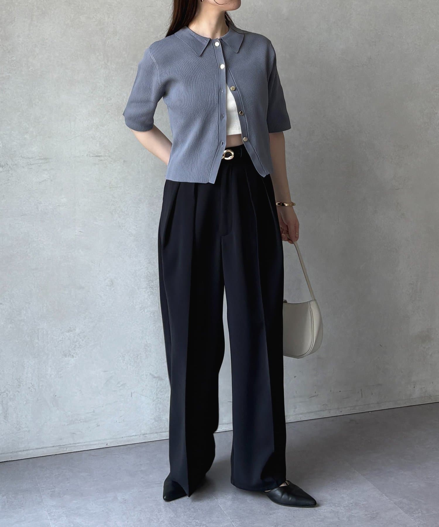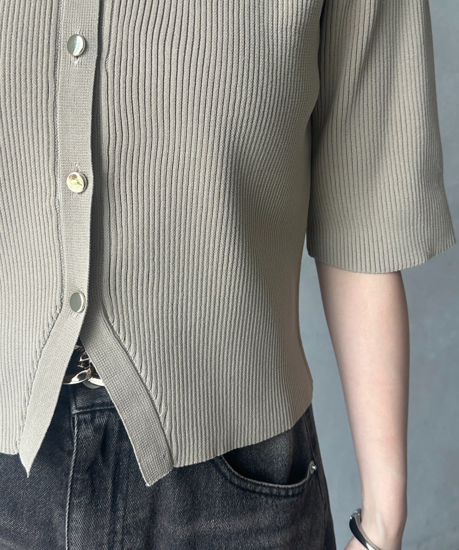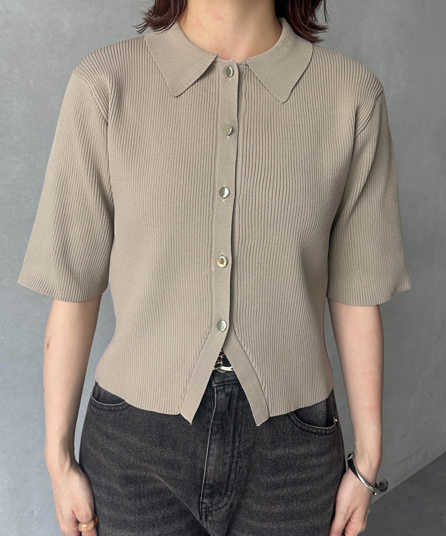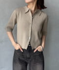 #カーディガン #リブカーディガン #襟付き #5分袖 #きれいめ