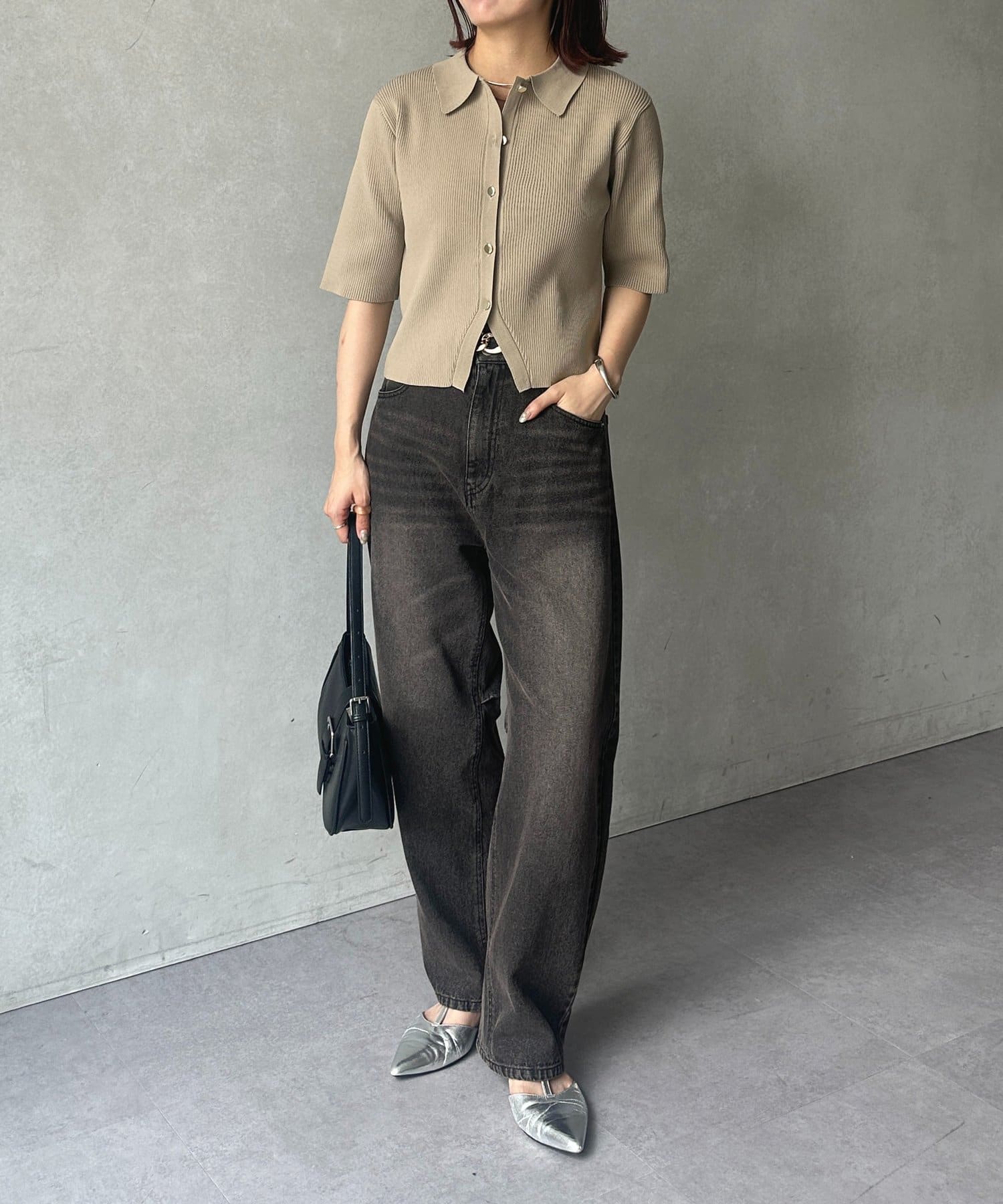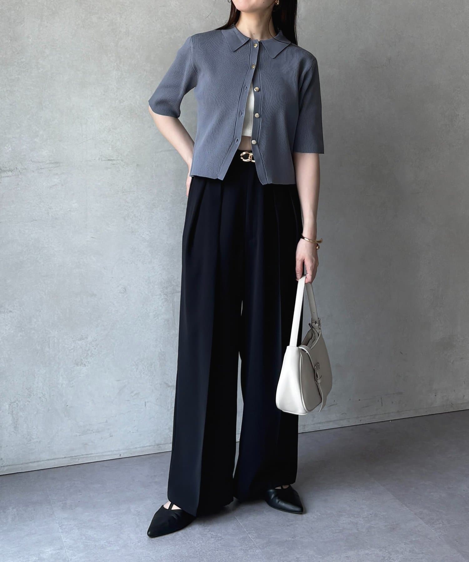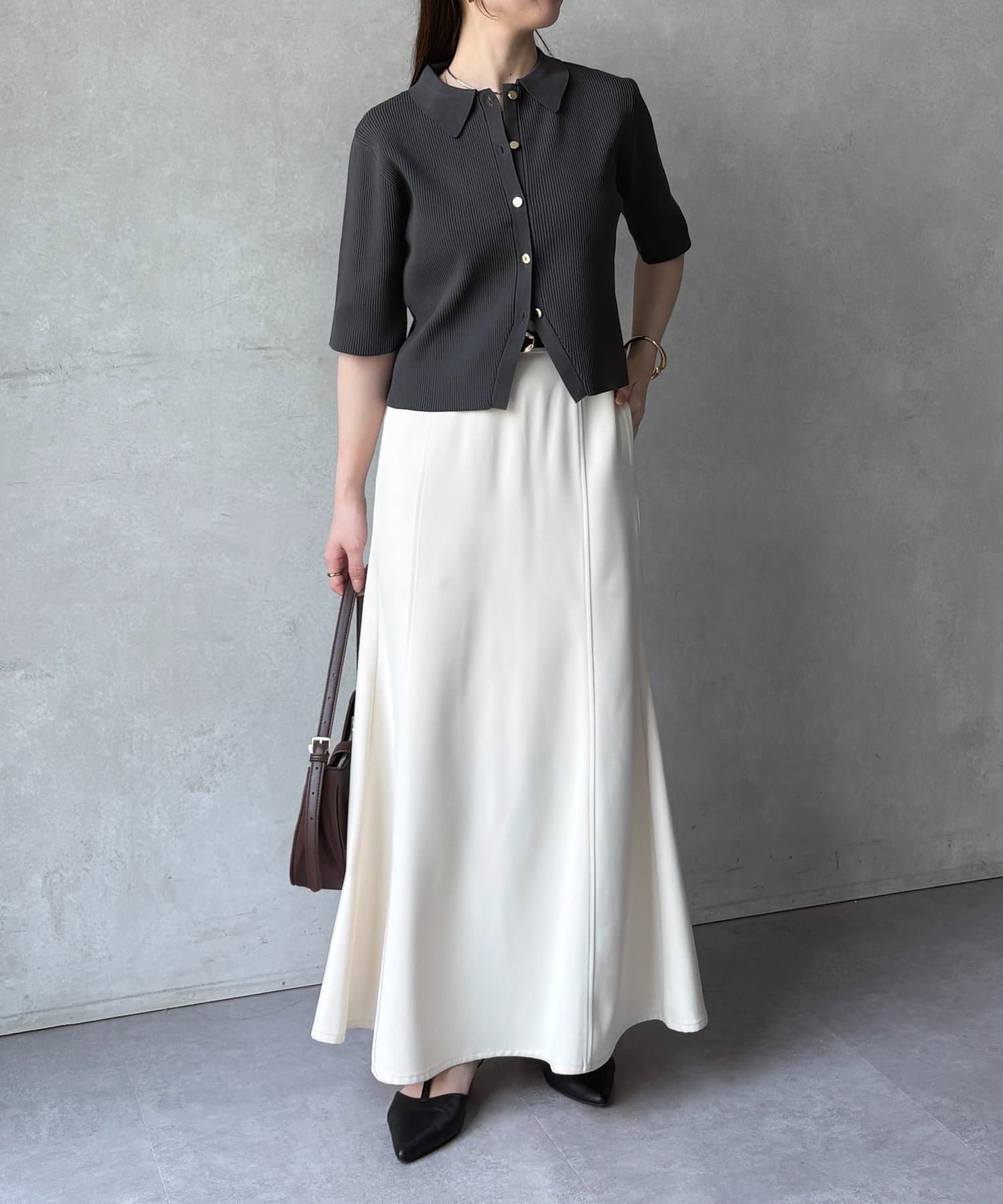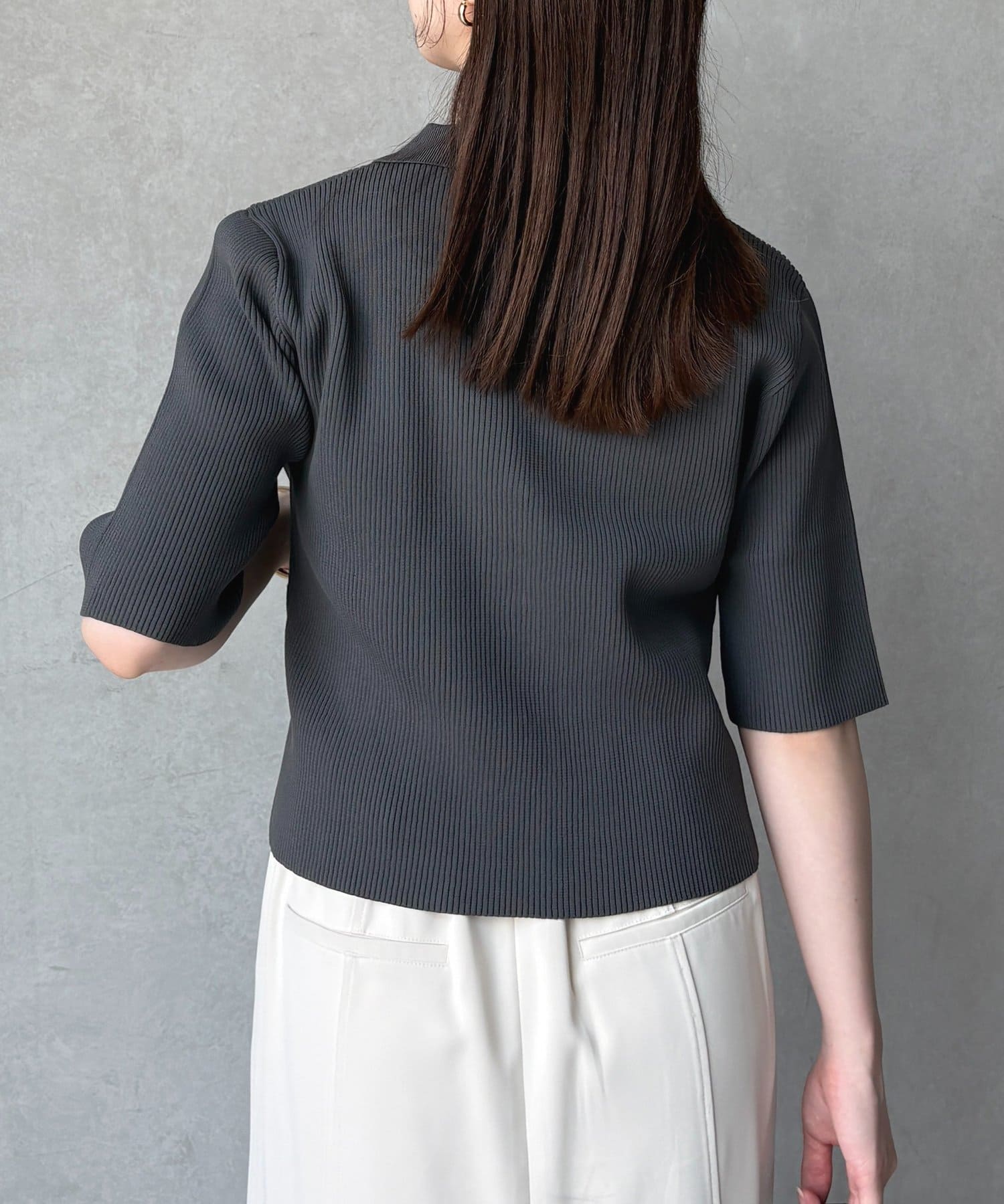 #カーディガン #リブカーディガン #襟付き #5分袖 #きれいめ