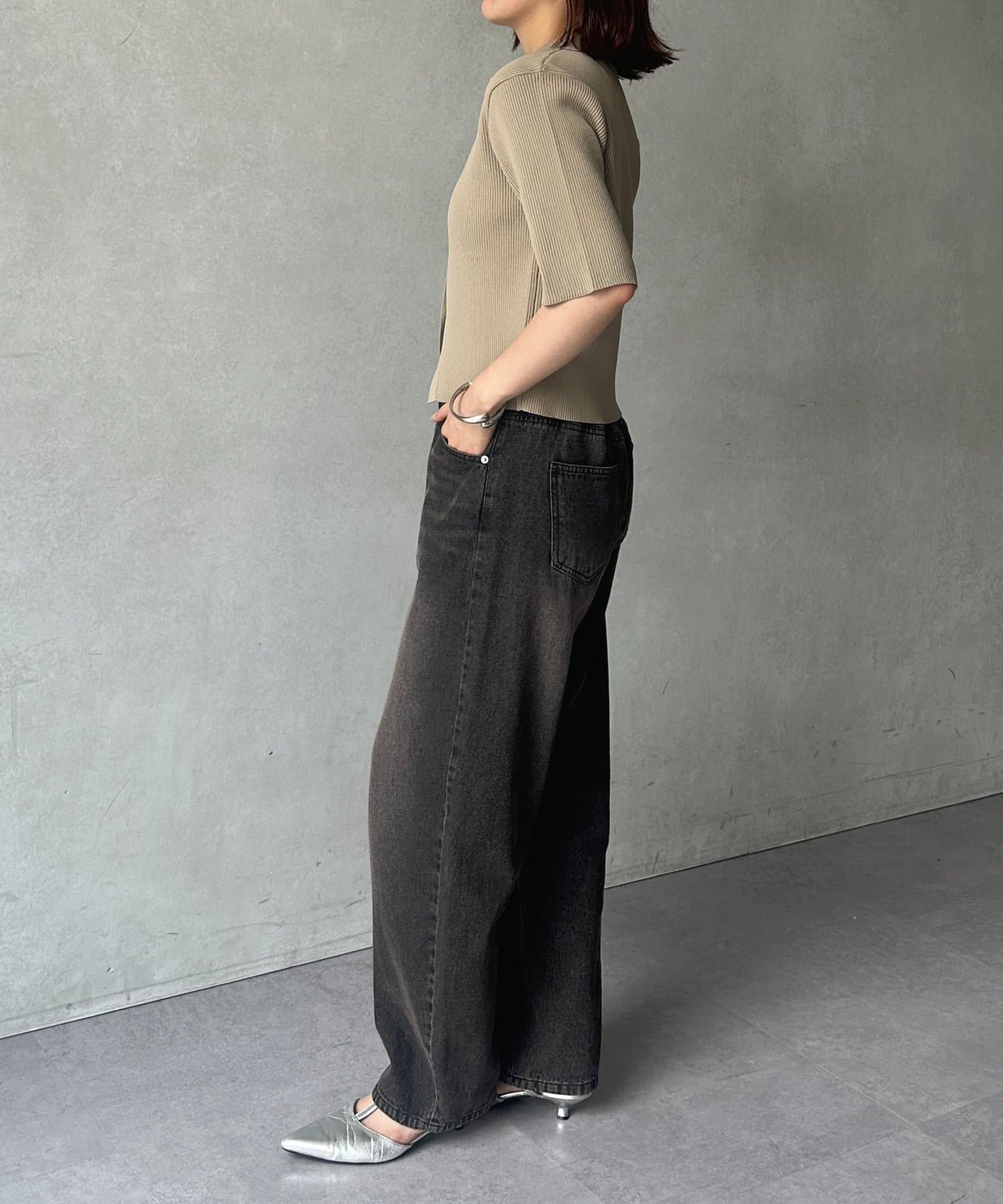 ・ワイドパンツやデニムと合わせることで、抜け感のある