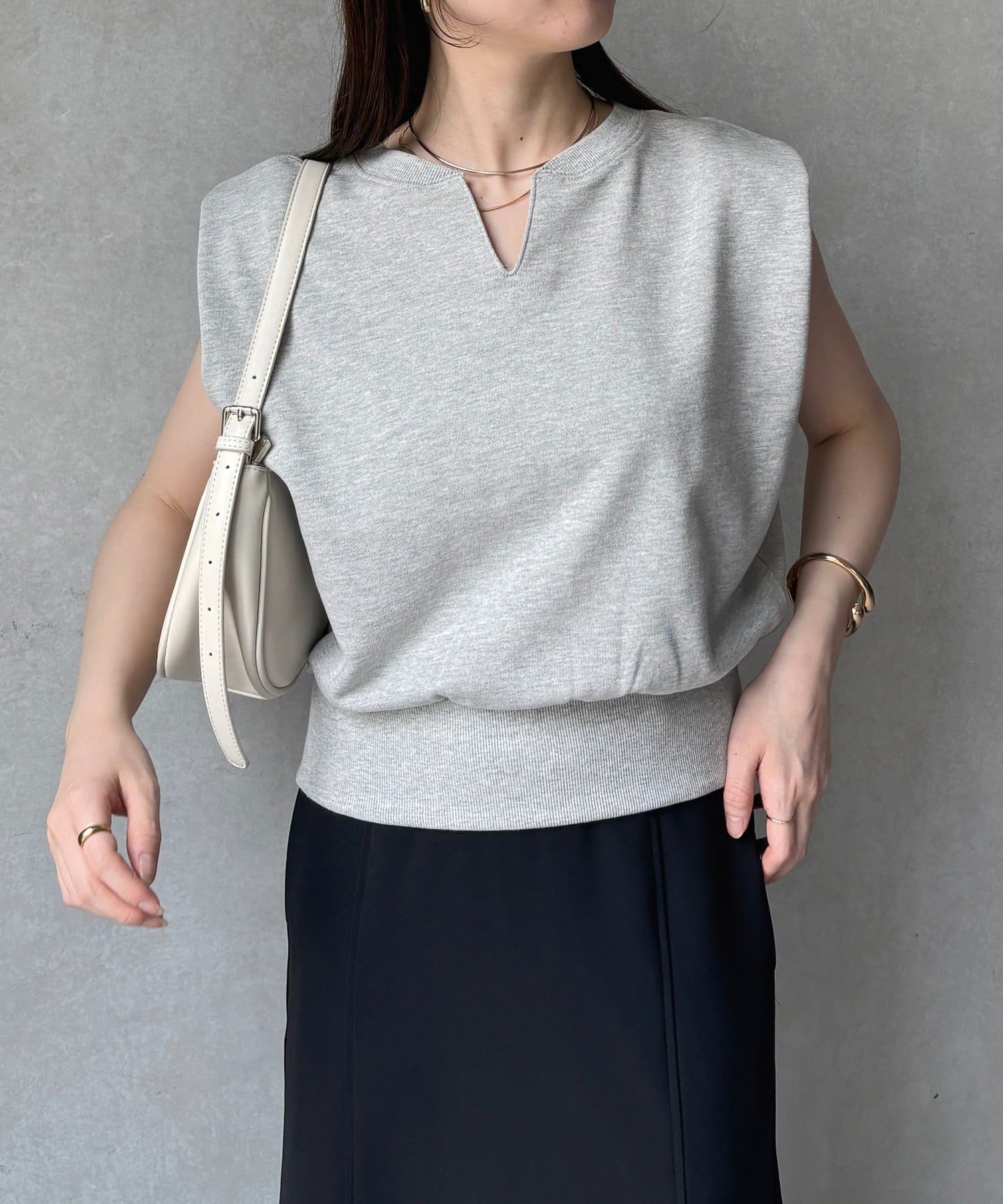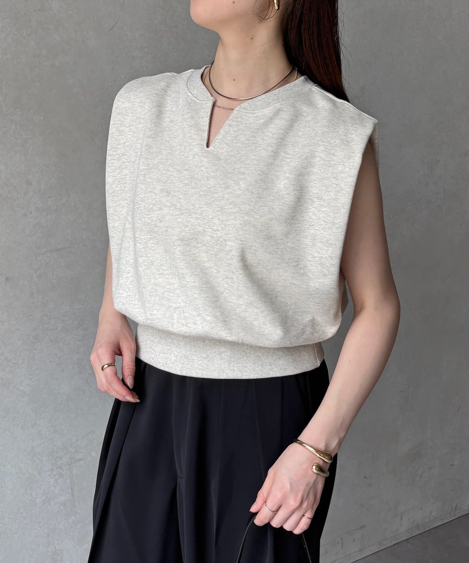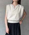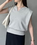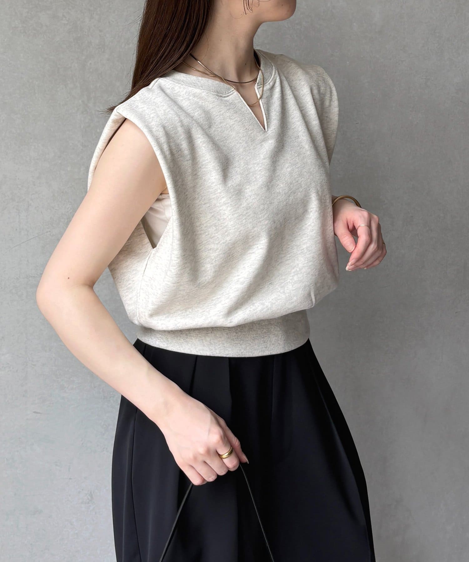 #ショートベスト #キーネック #裏毛 #ベスト #きれいめ #おでかけ