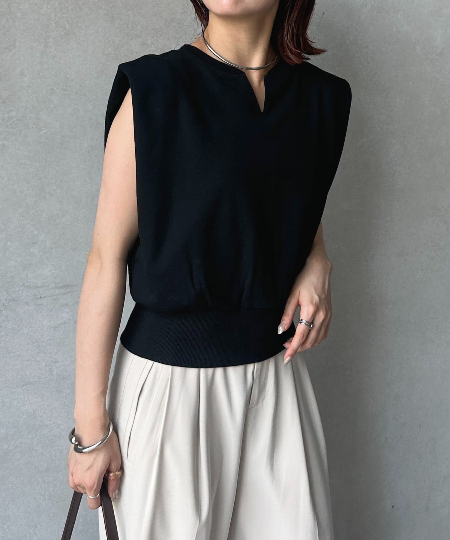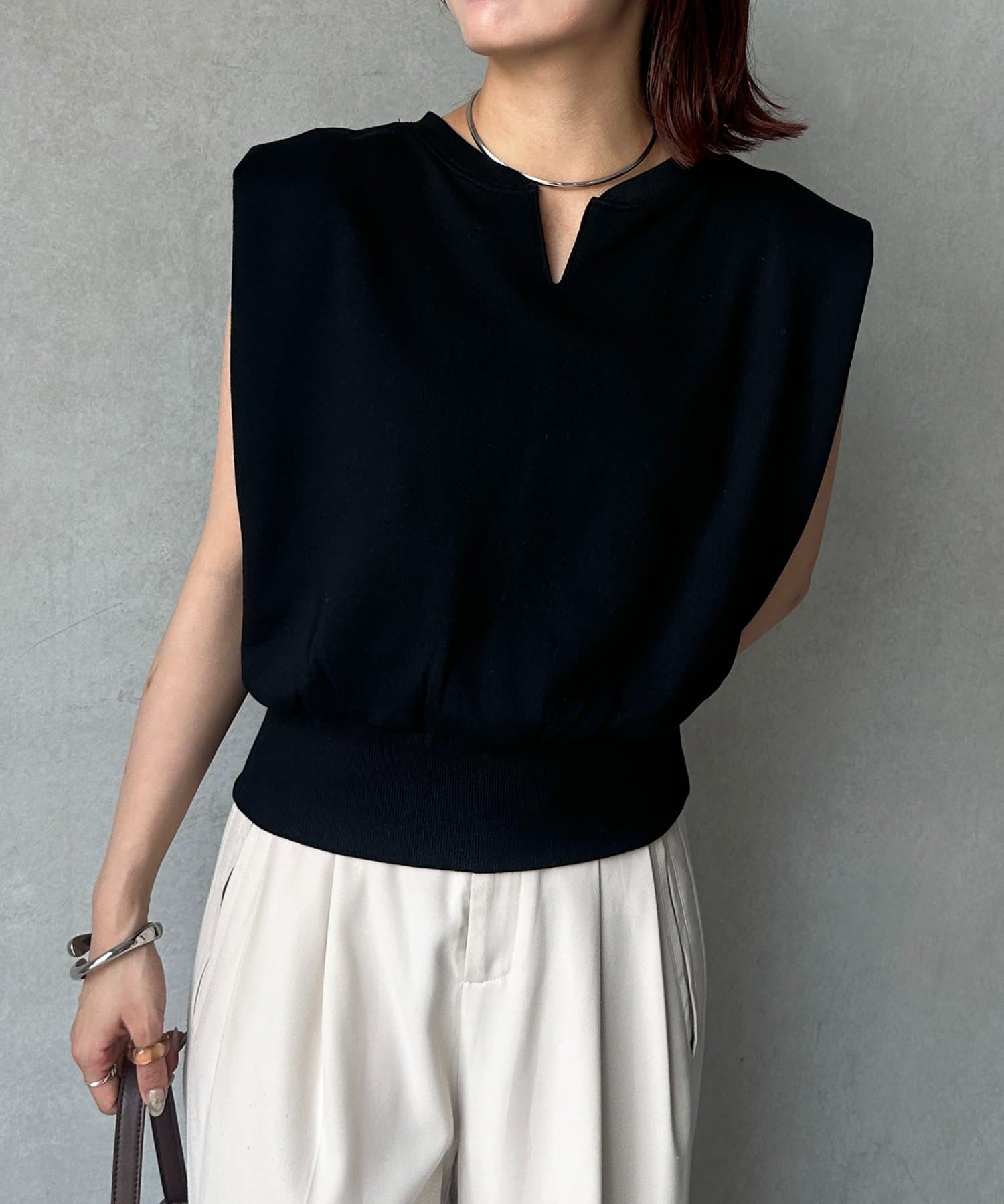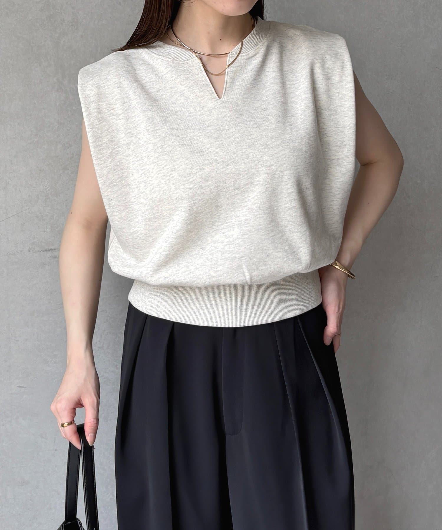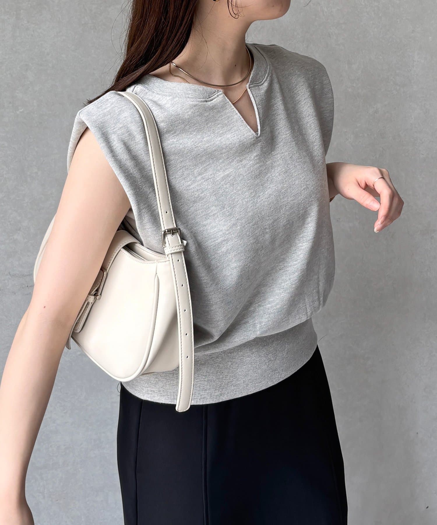 #ショートベスト #キーネック #裏毛 #ベスト #きれいめ #おでかけ