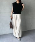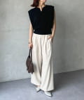 ・ベストの存在感を引き立たせるため、コンパクトなトップスと