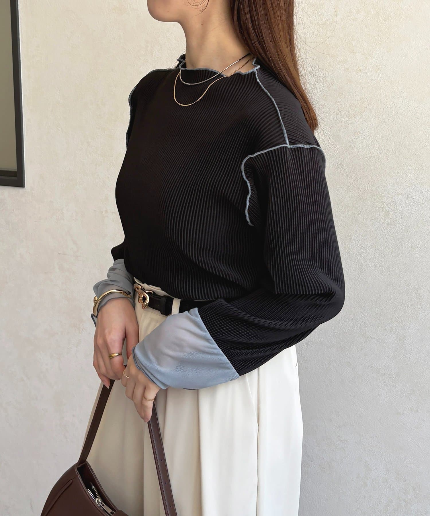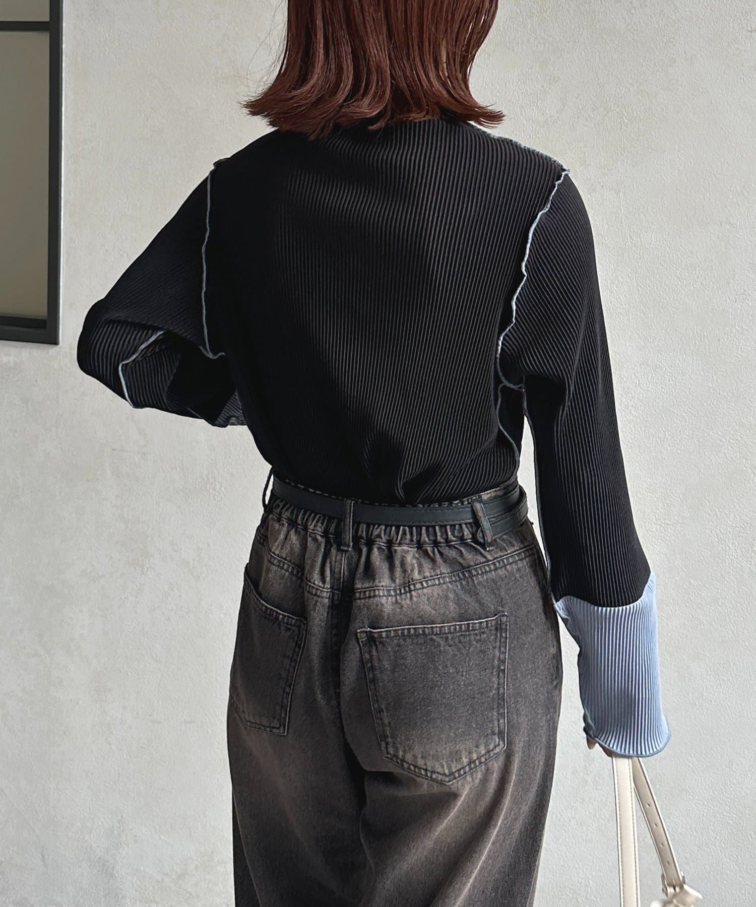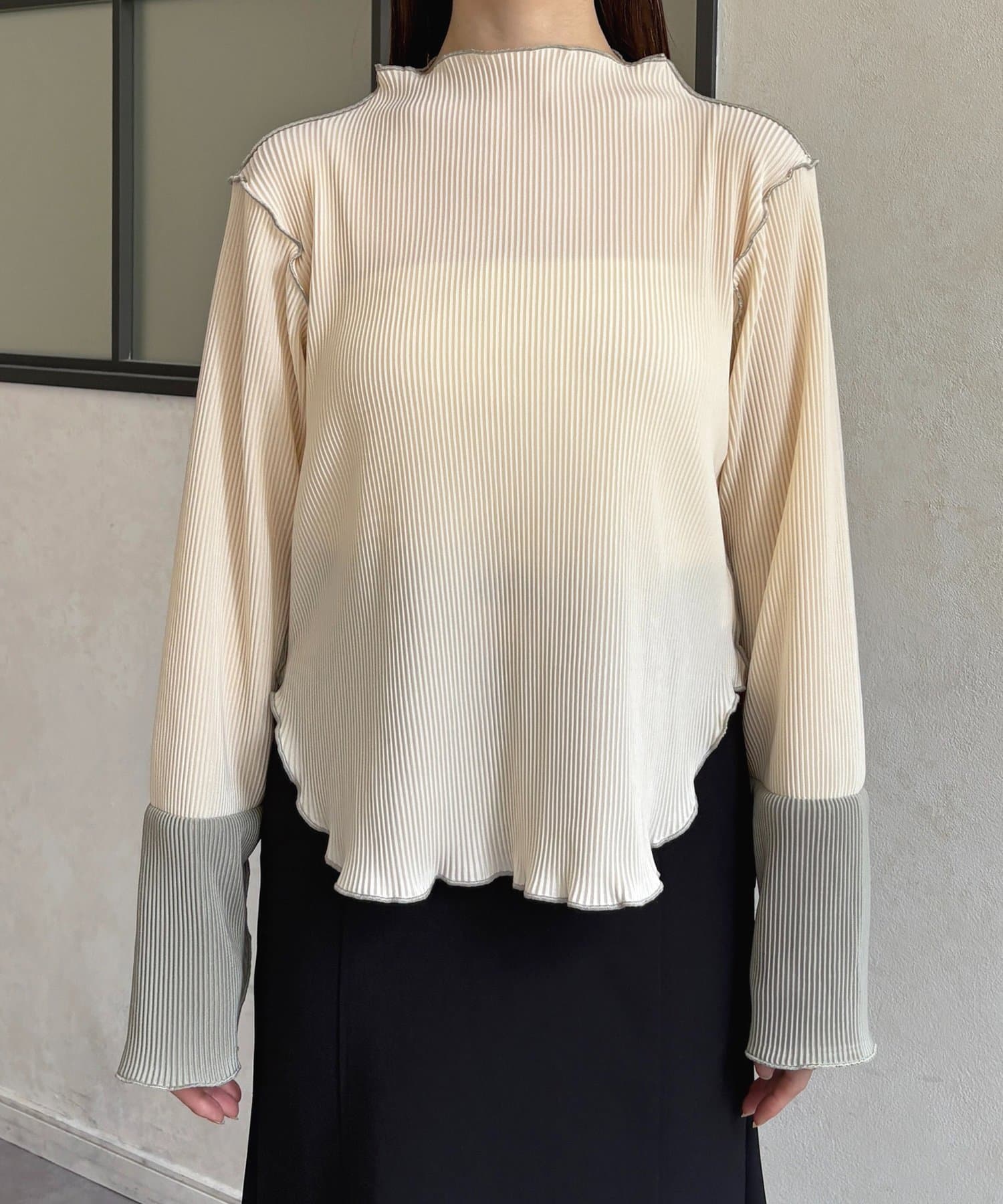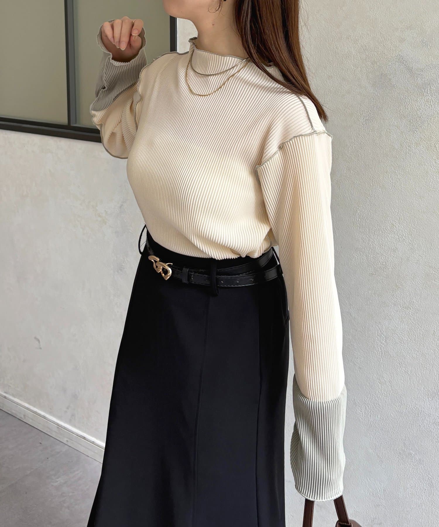 #プルオーバー #メロートップス #配色トップス #プリーツ #レイヤード