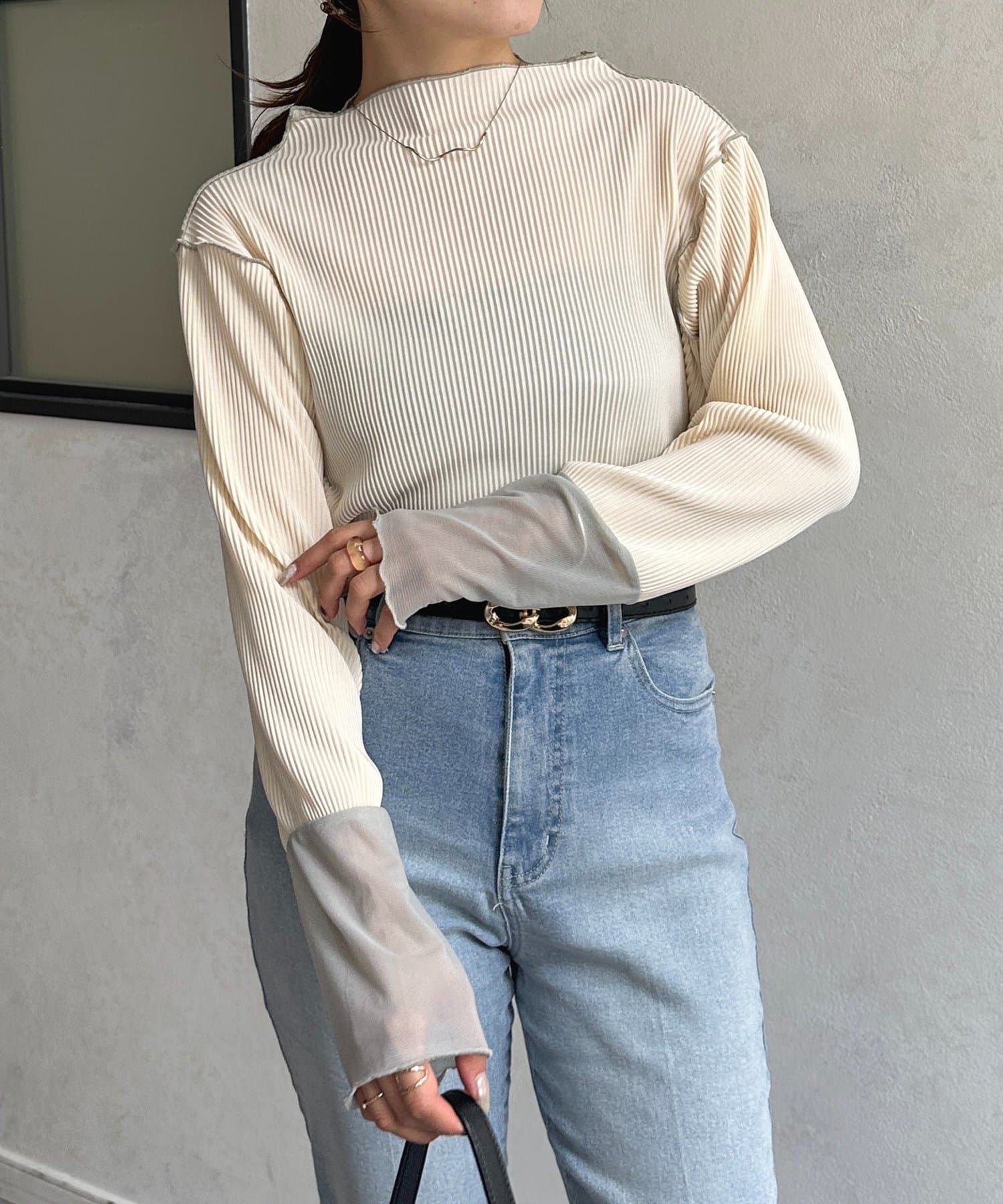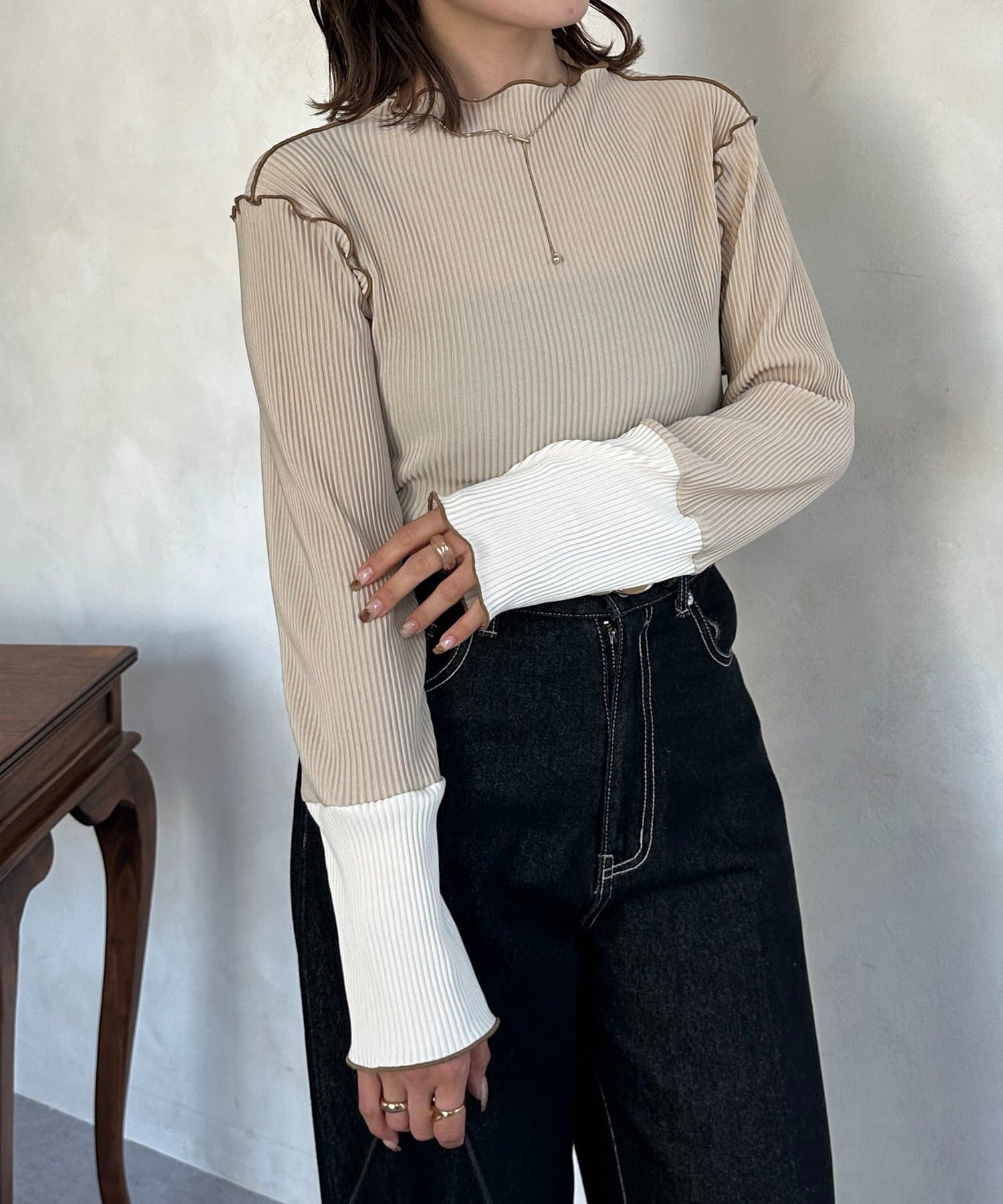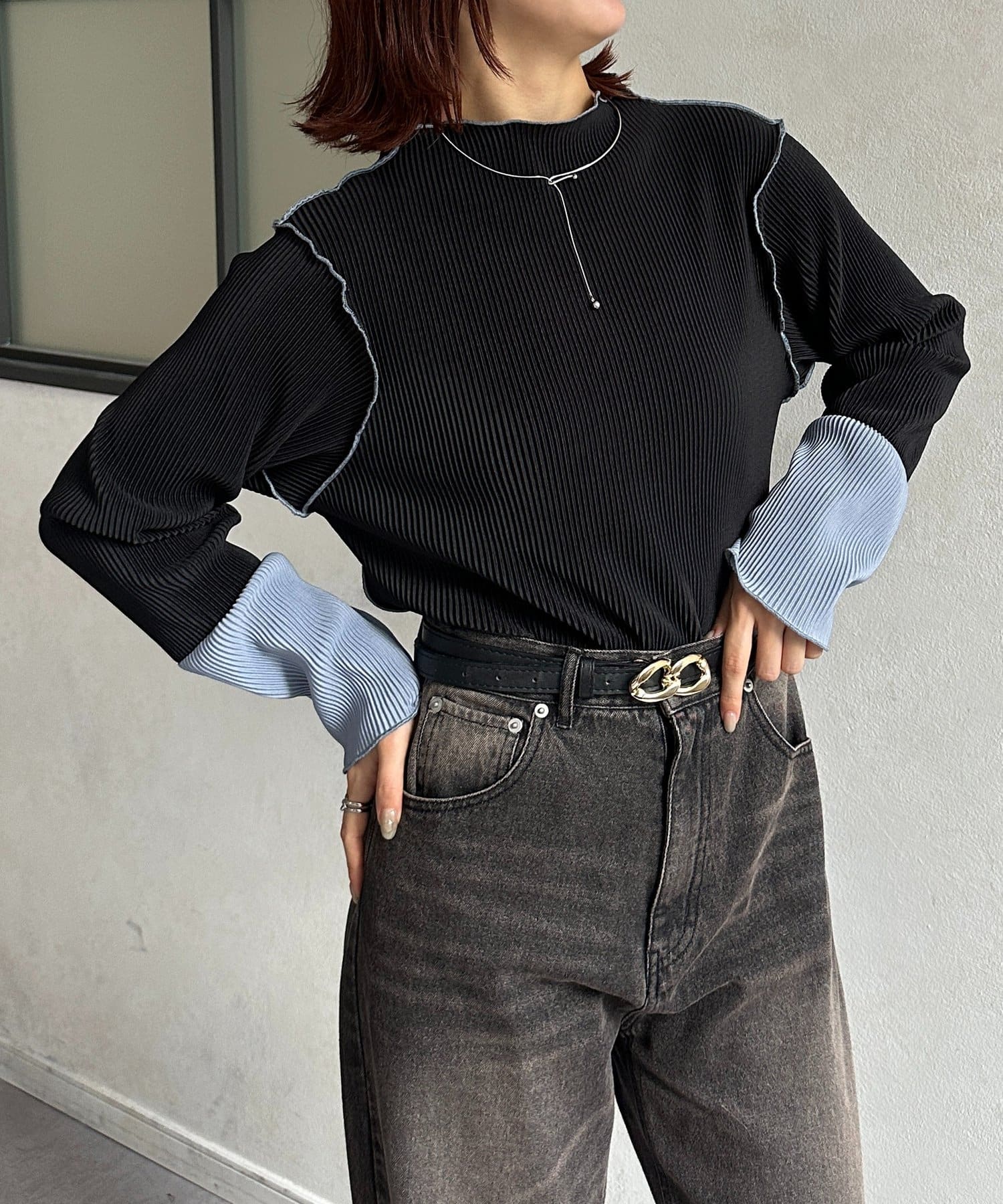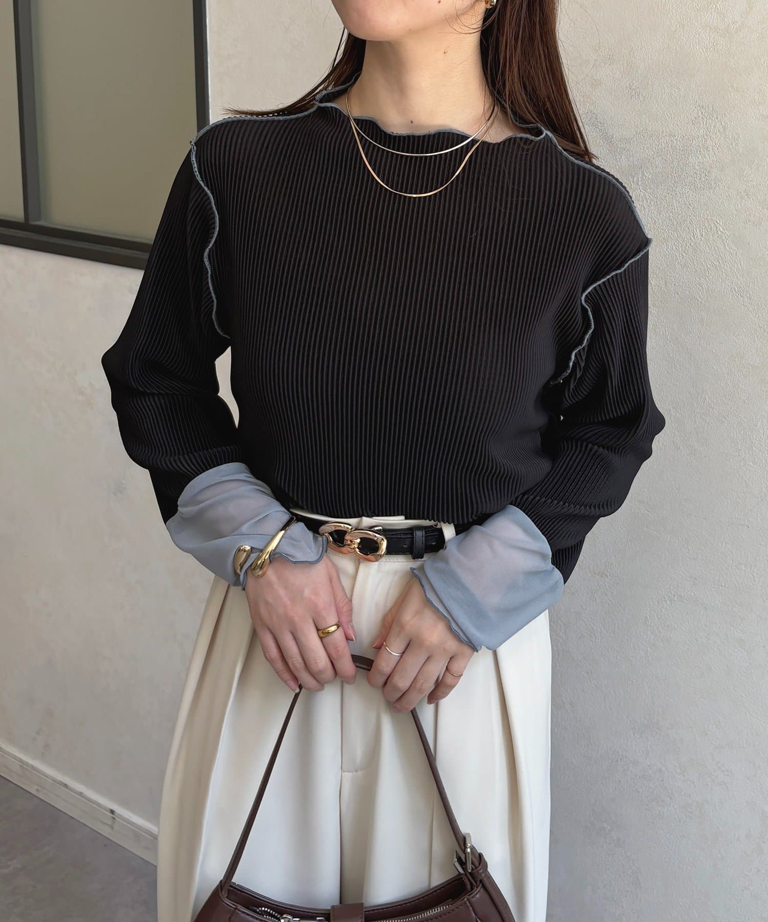 #プルオーバー #メロートップス #配色トップス #プリーツ #レイヤード