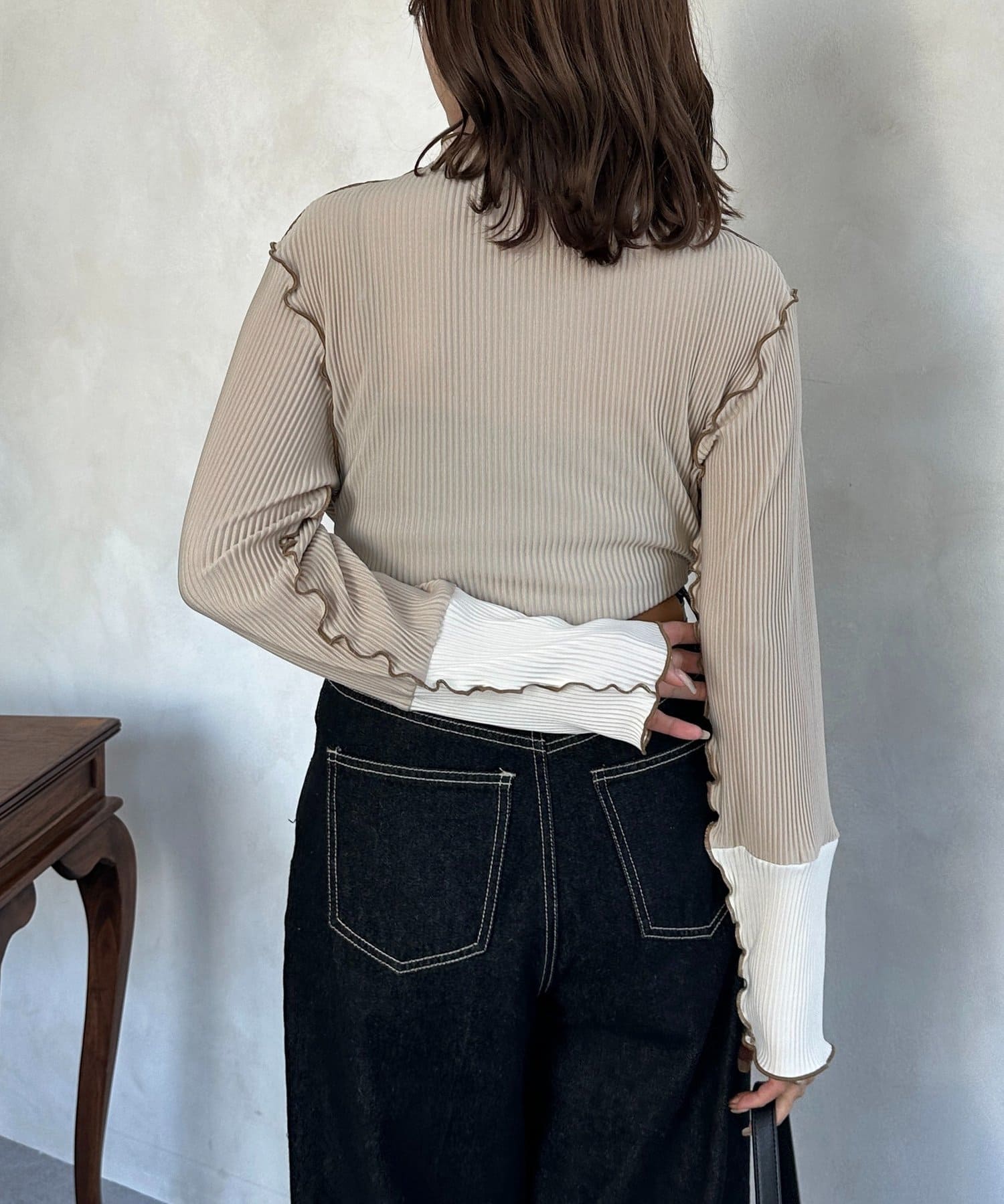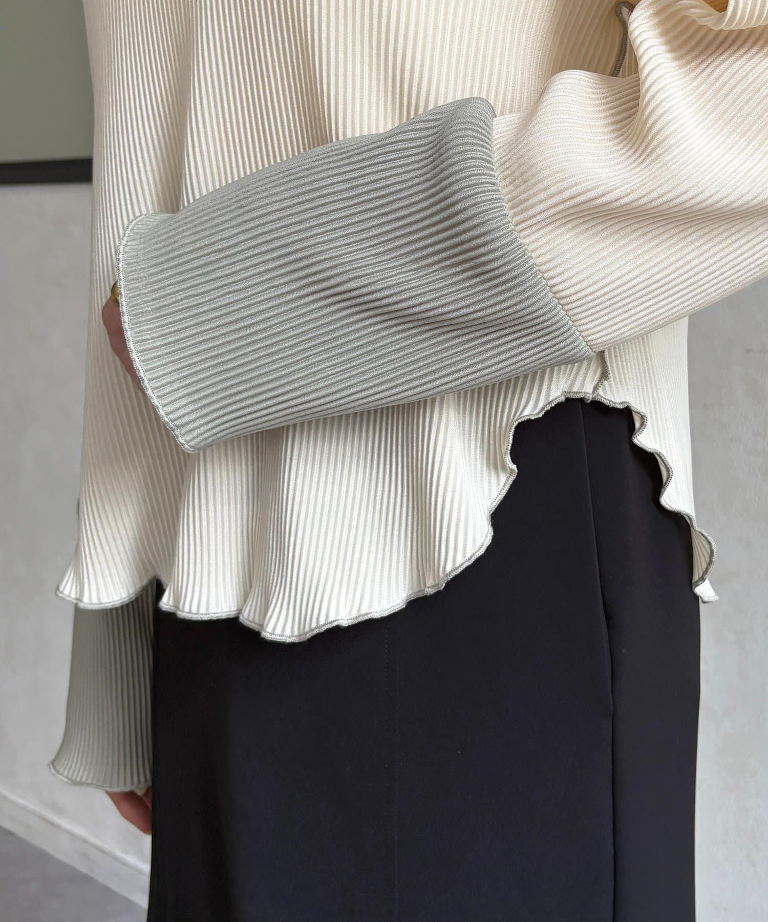 ・トレンド感満載の袖先配色とメローフリル