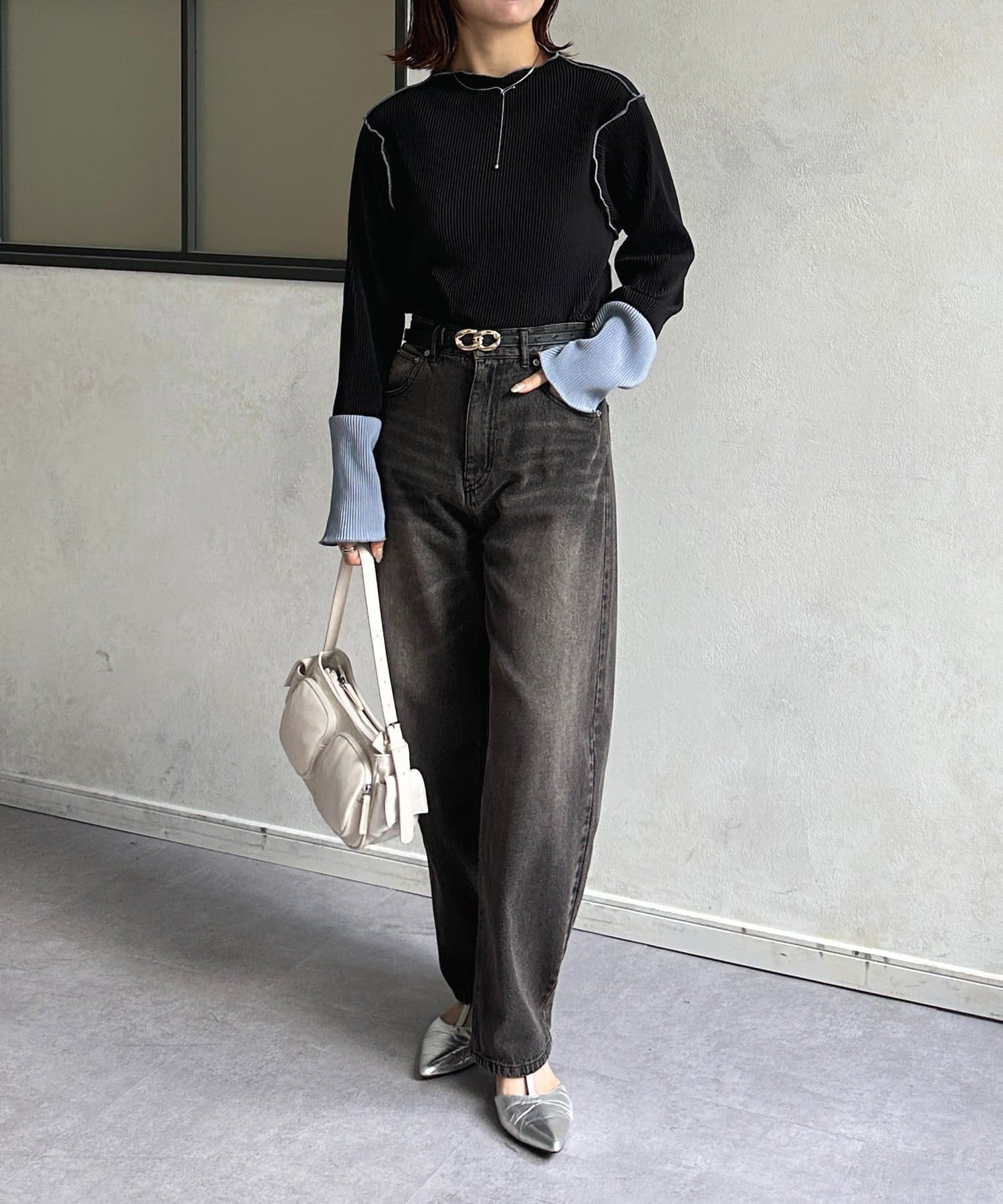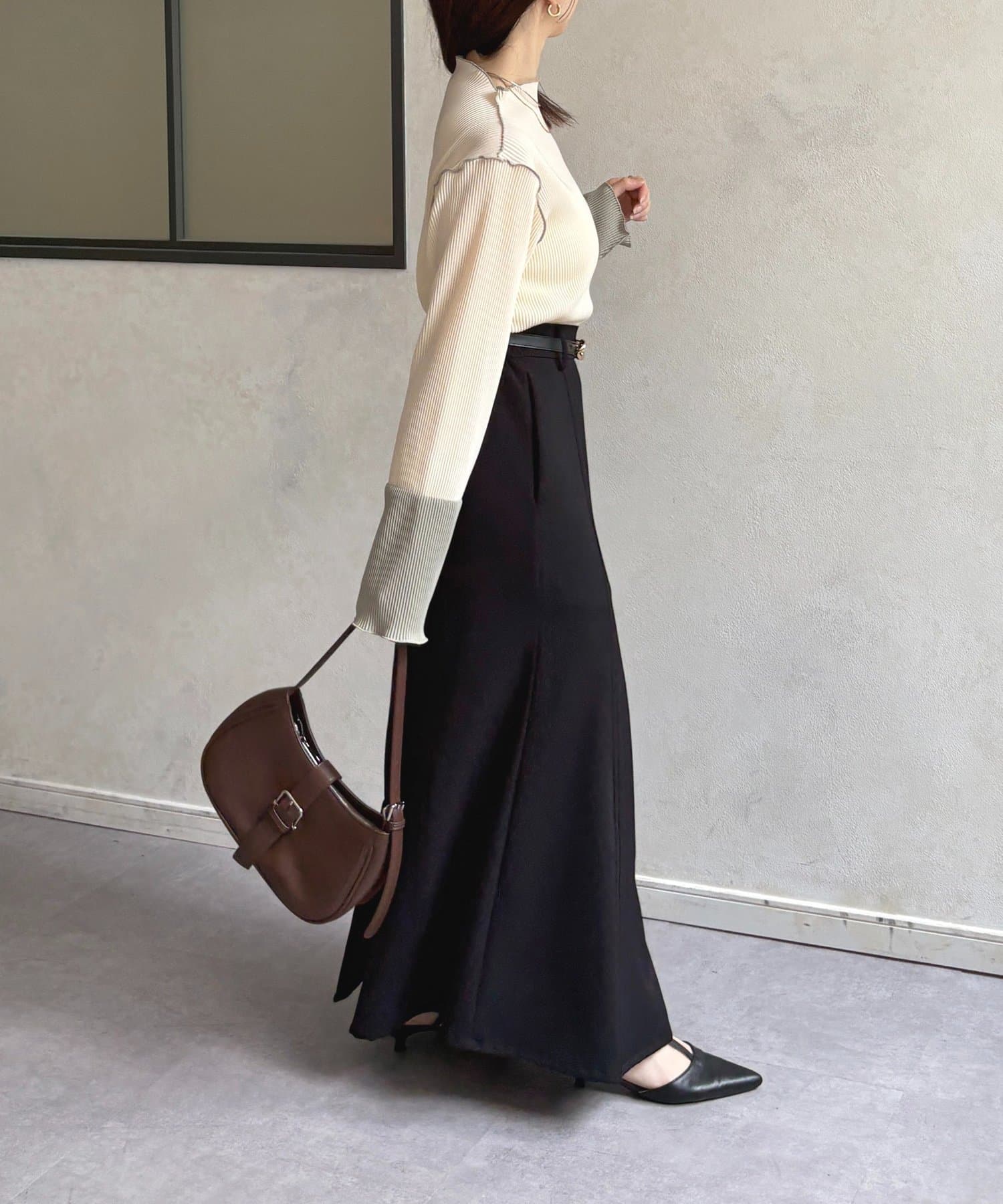 身幅もピッタリしすぎず、軽くてレイヤードもしやすそうです。プリーツが着痩せ効果ありそうです。