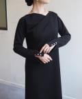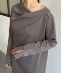 袖ボタンドレープネックカットワンピース