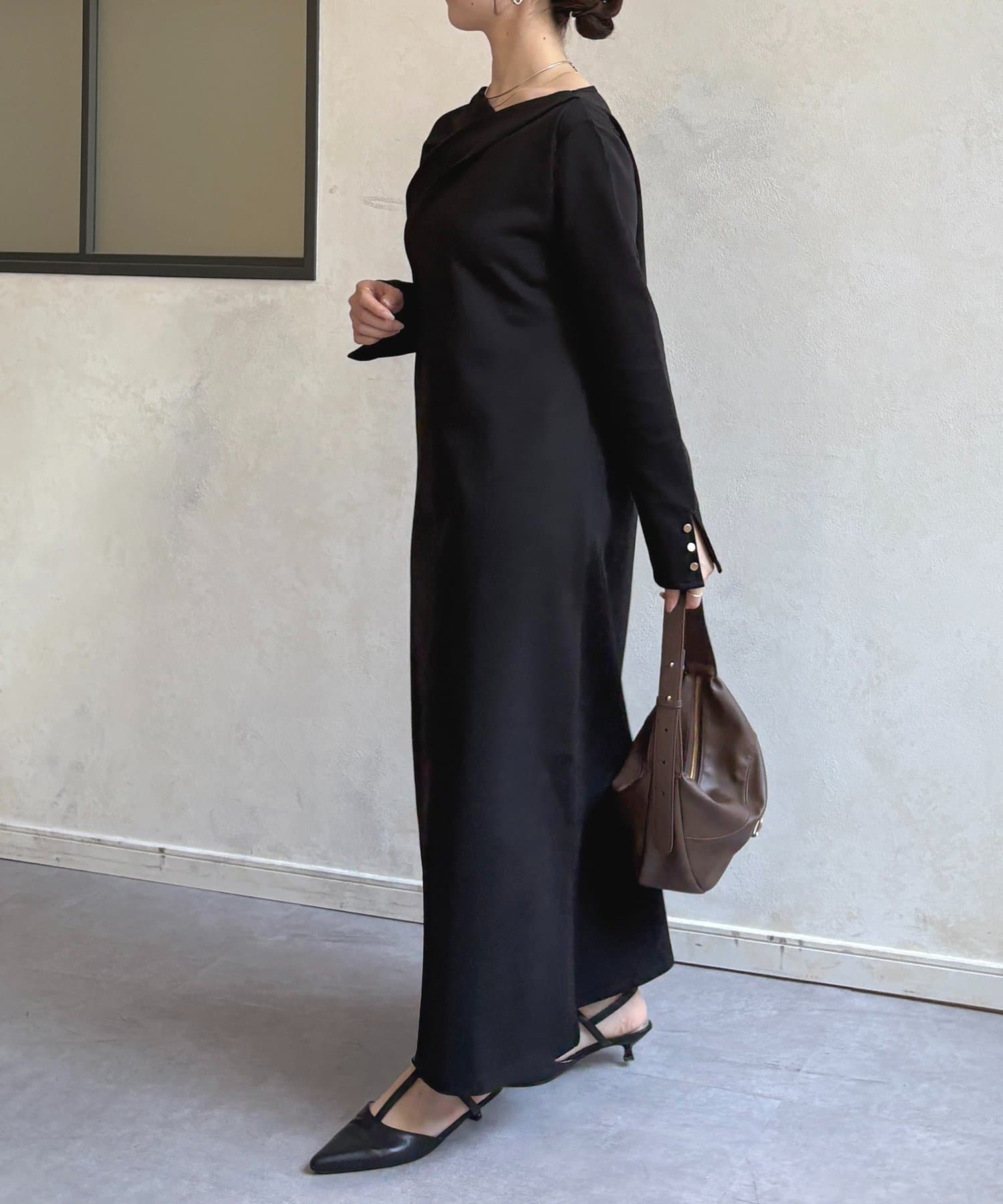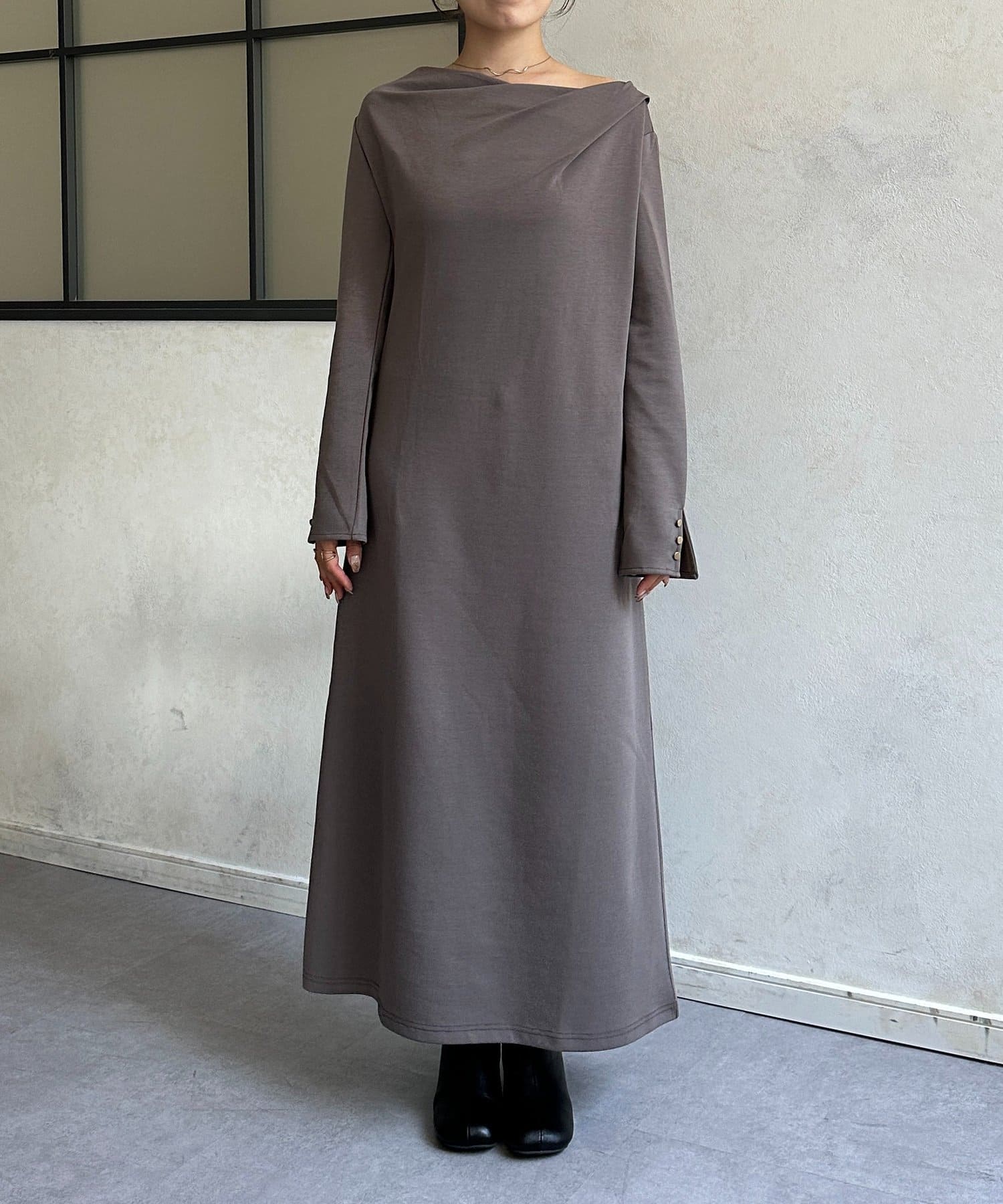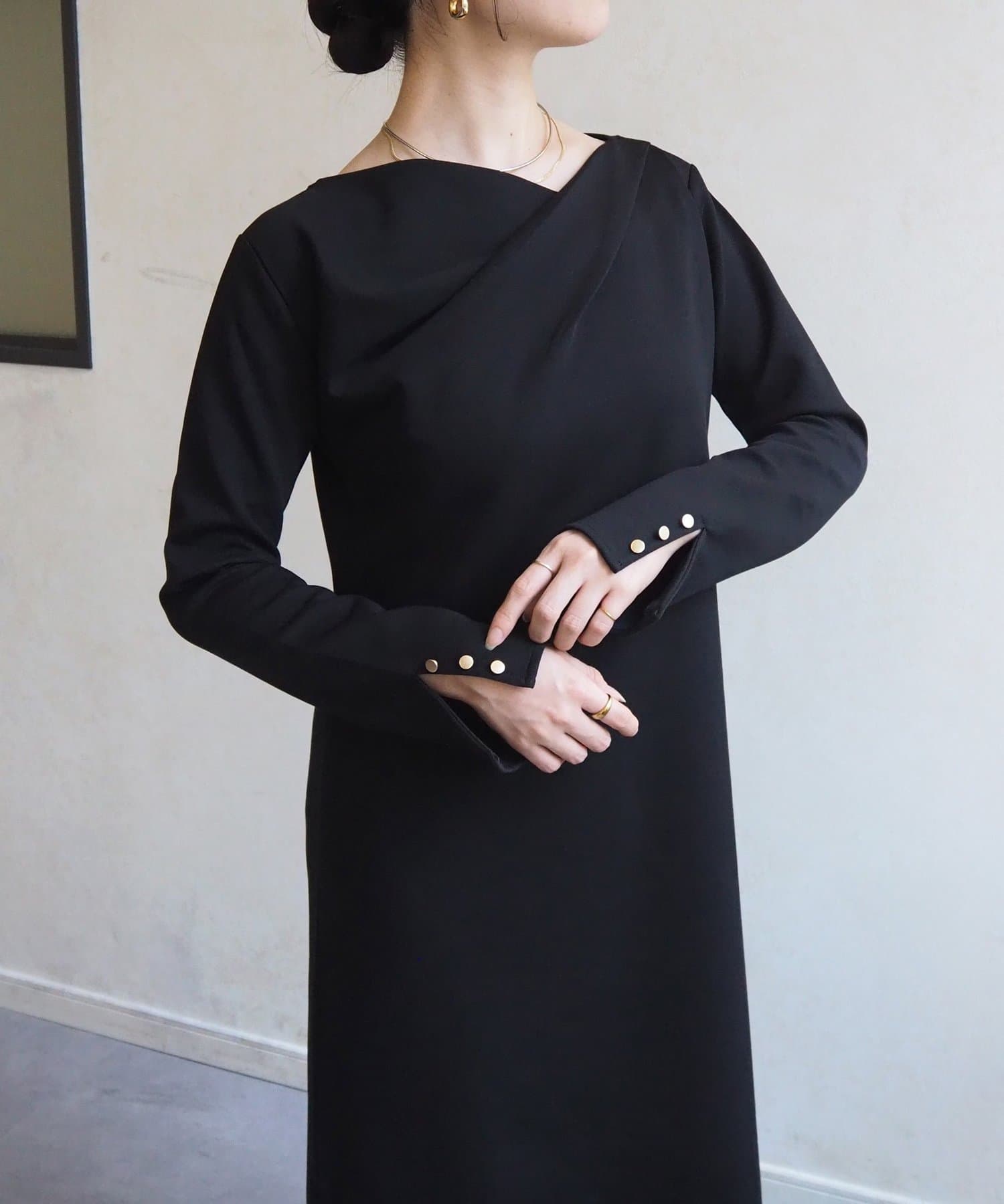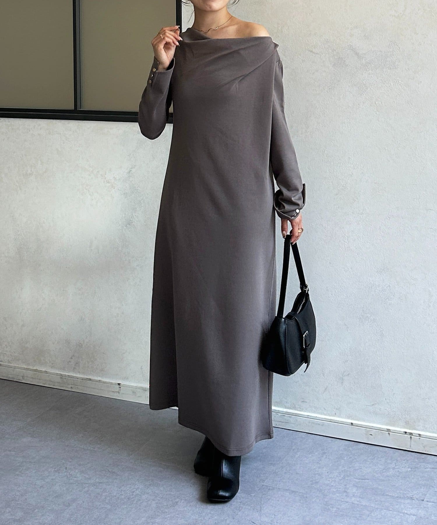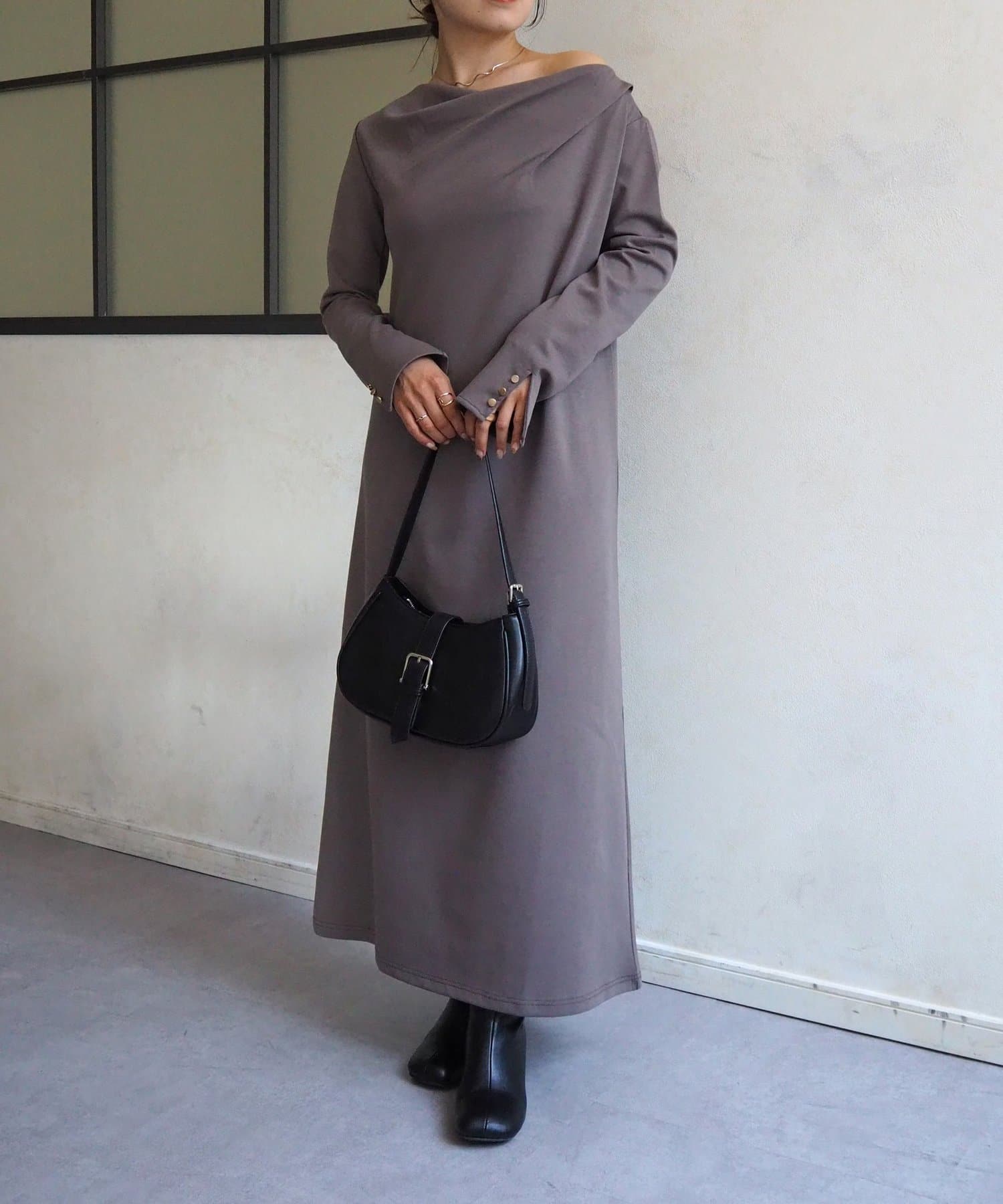#ワンピース #ドレープネック #袖ボタン #ロングワンピース