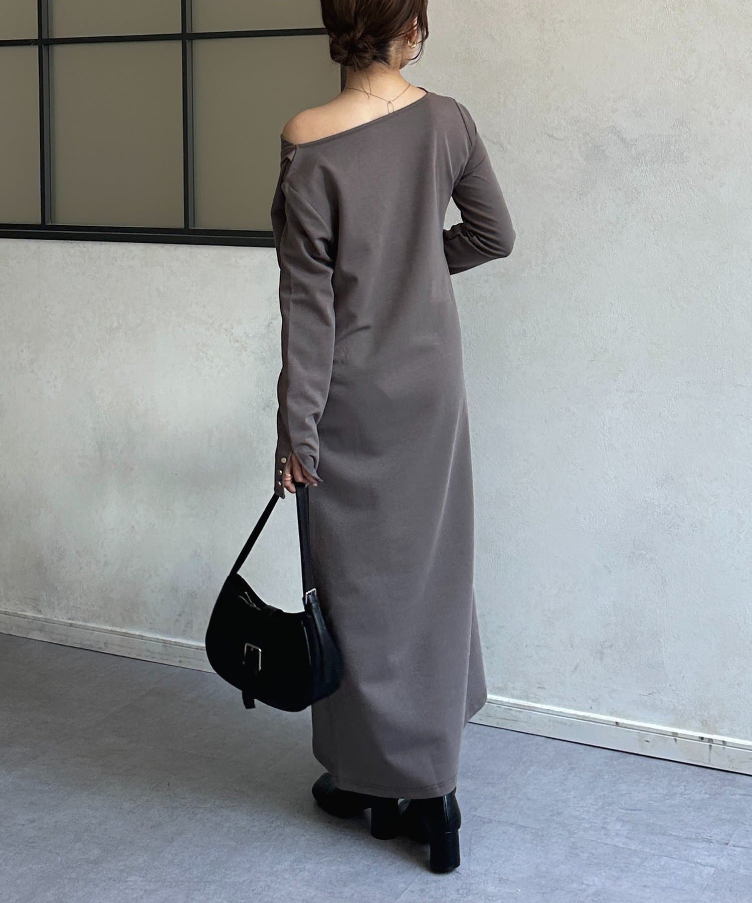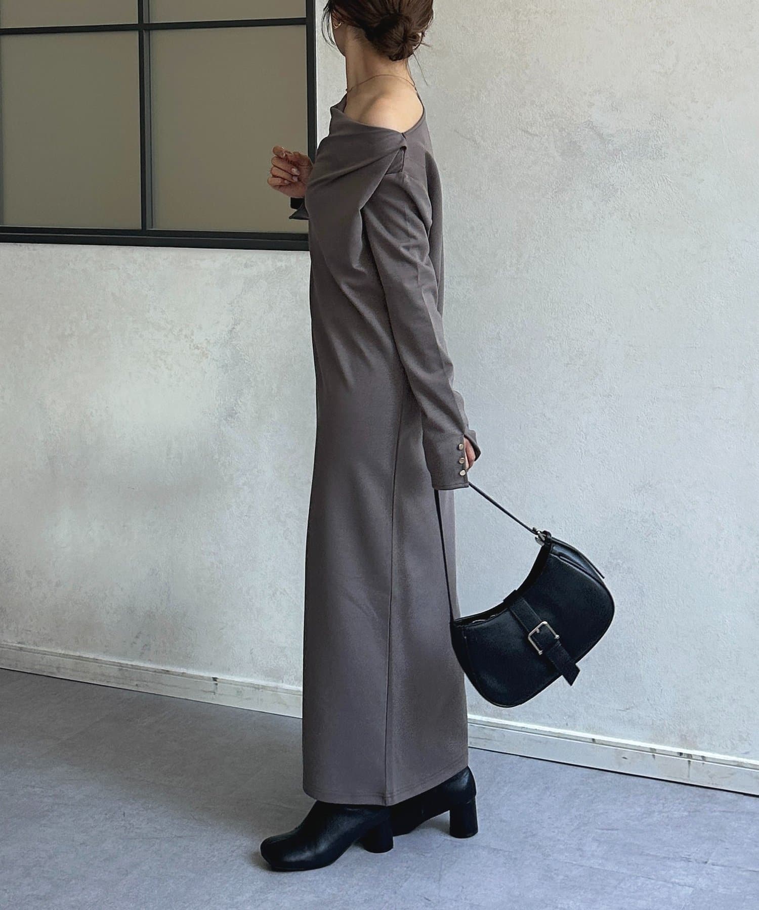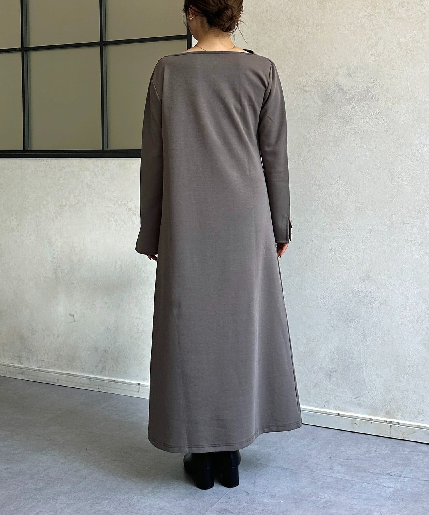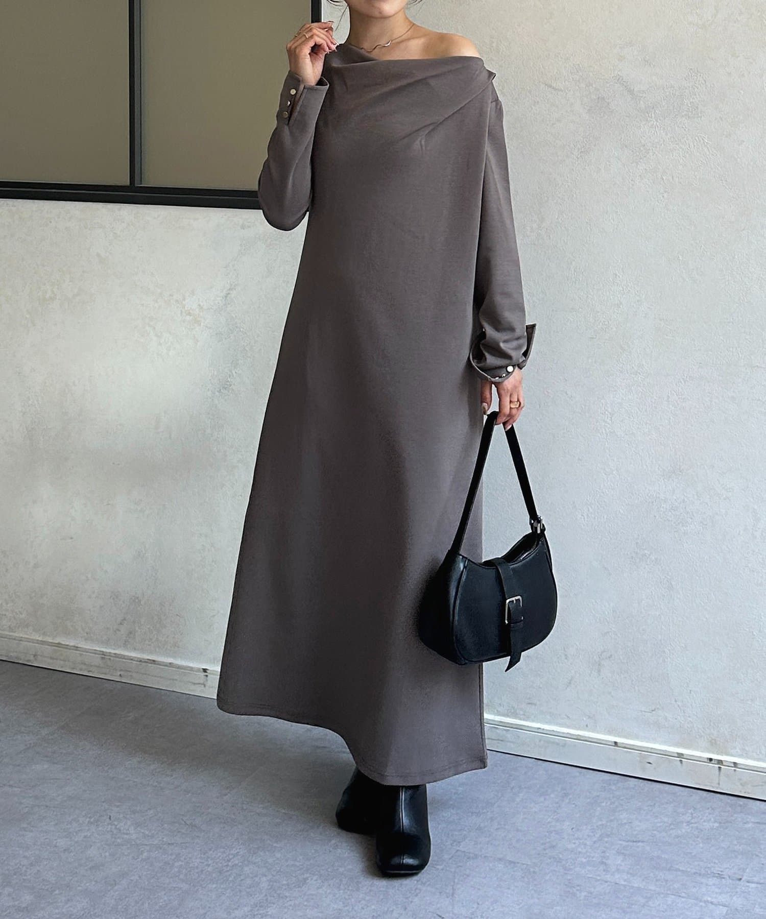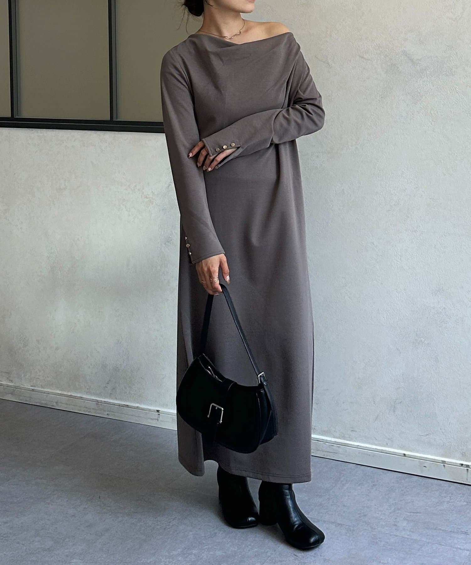 #ワンピース #ドレープネック #袖ボタン #ロングワンピース