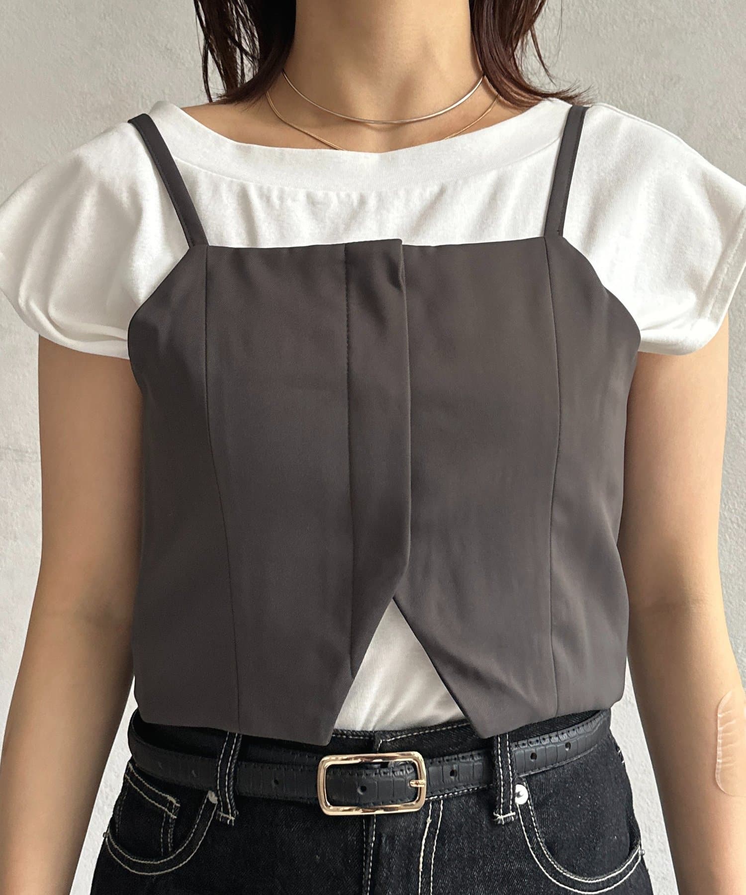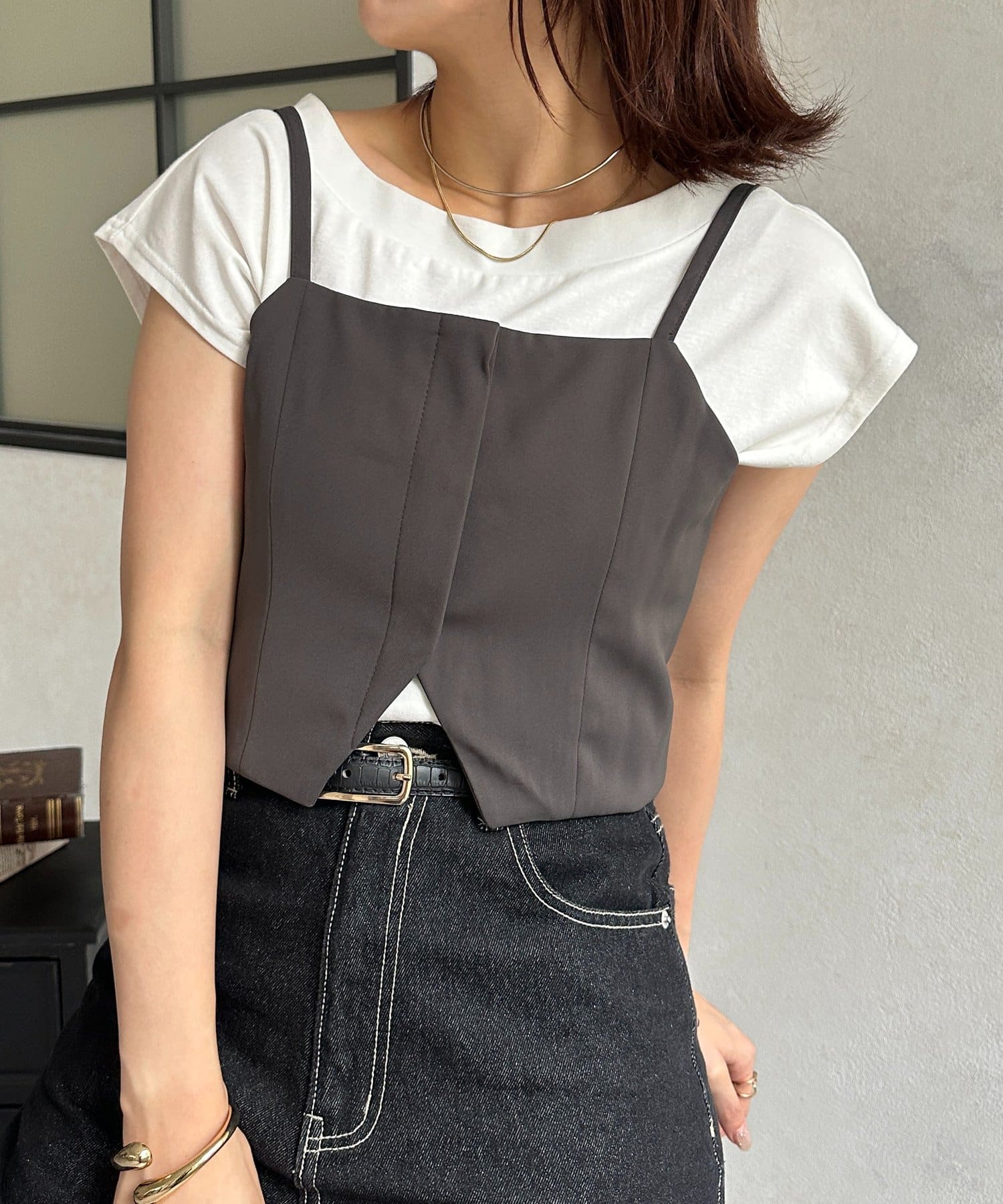 #ショートビスチェ #スリット #レイヤード #トレンド #着回し #きれいめ