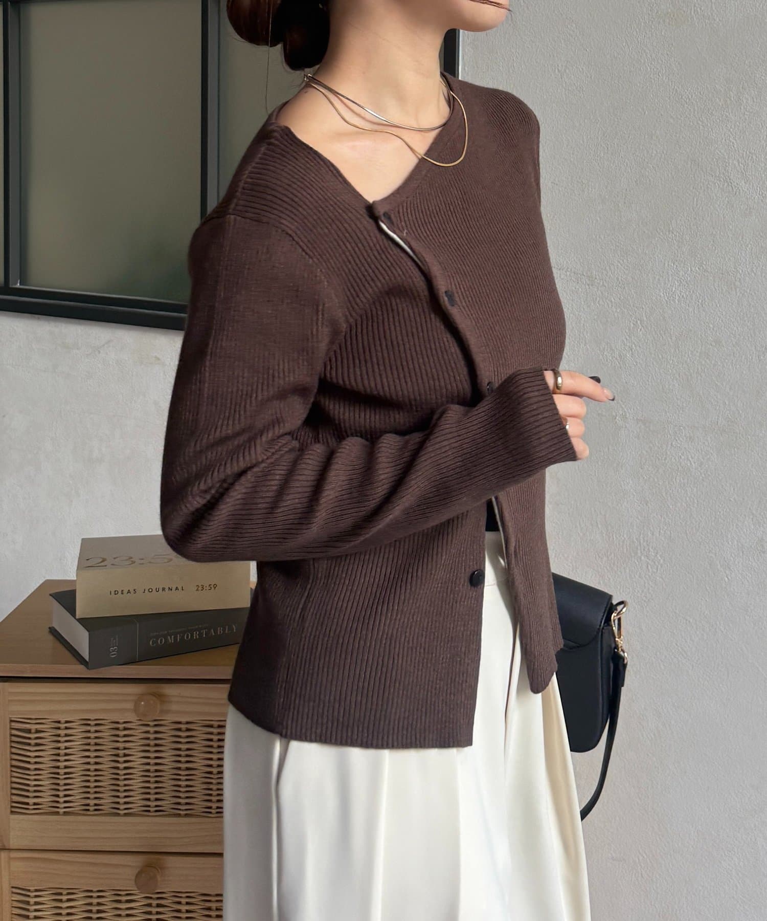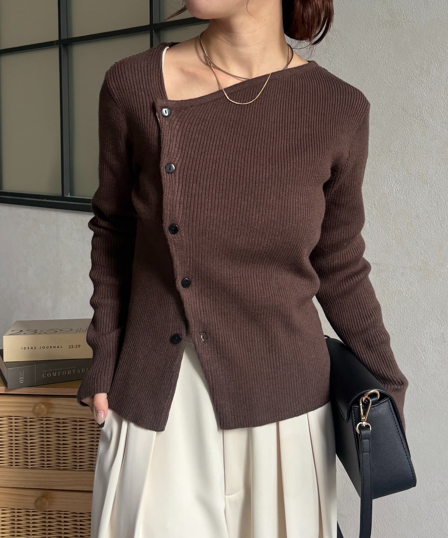 購入場所:店舗何にでも合わせやすいニットですが、斜めに切り込んだ首元が特徴的で他の人と被らない。今回、2色目の購入!