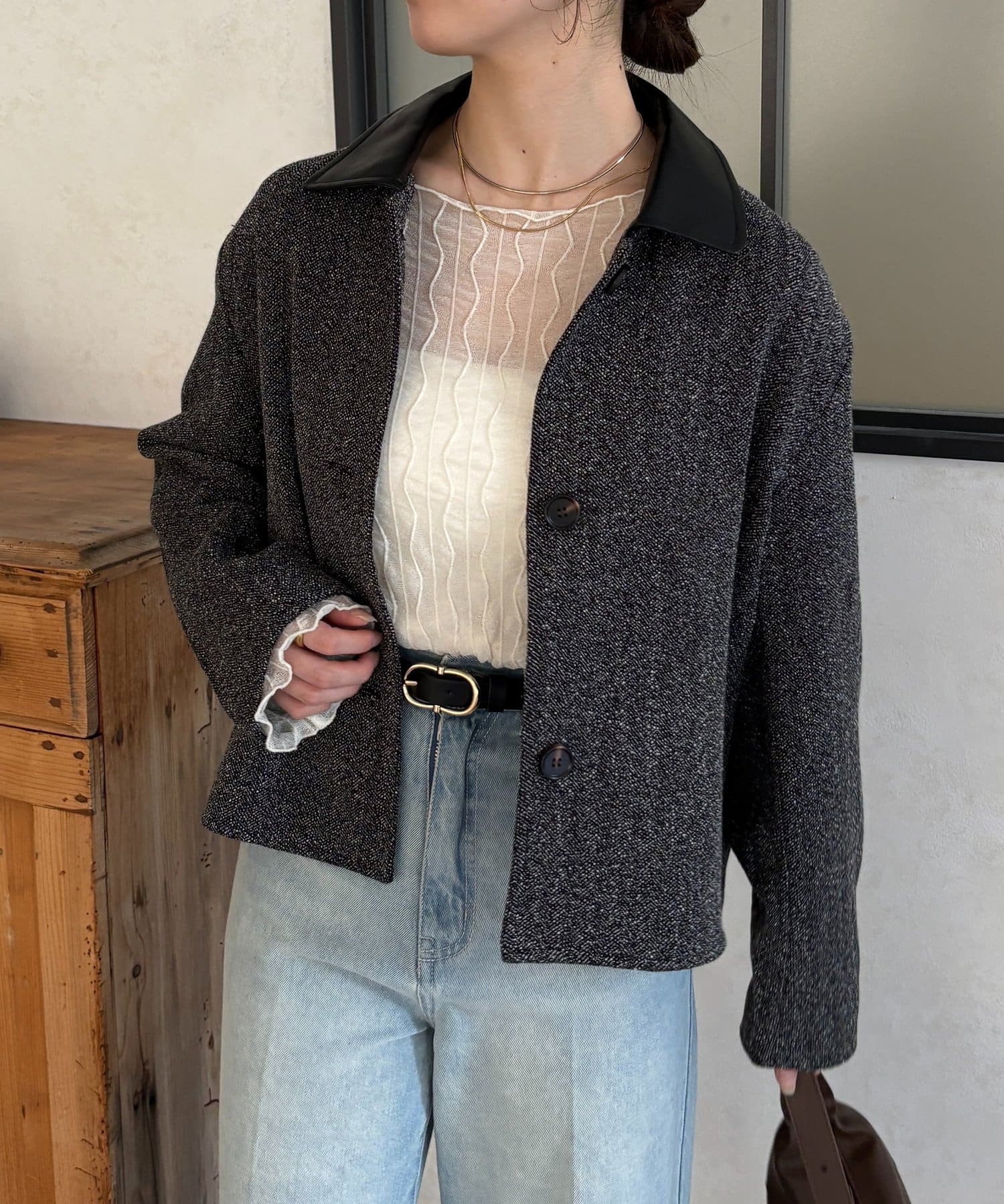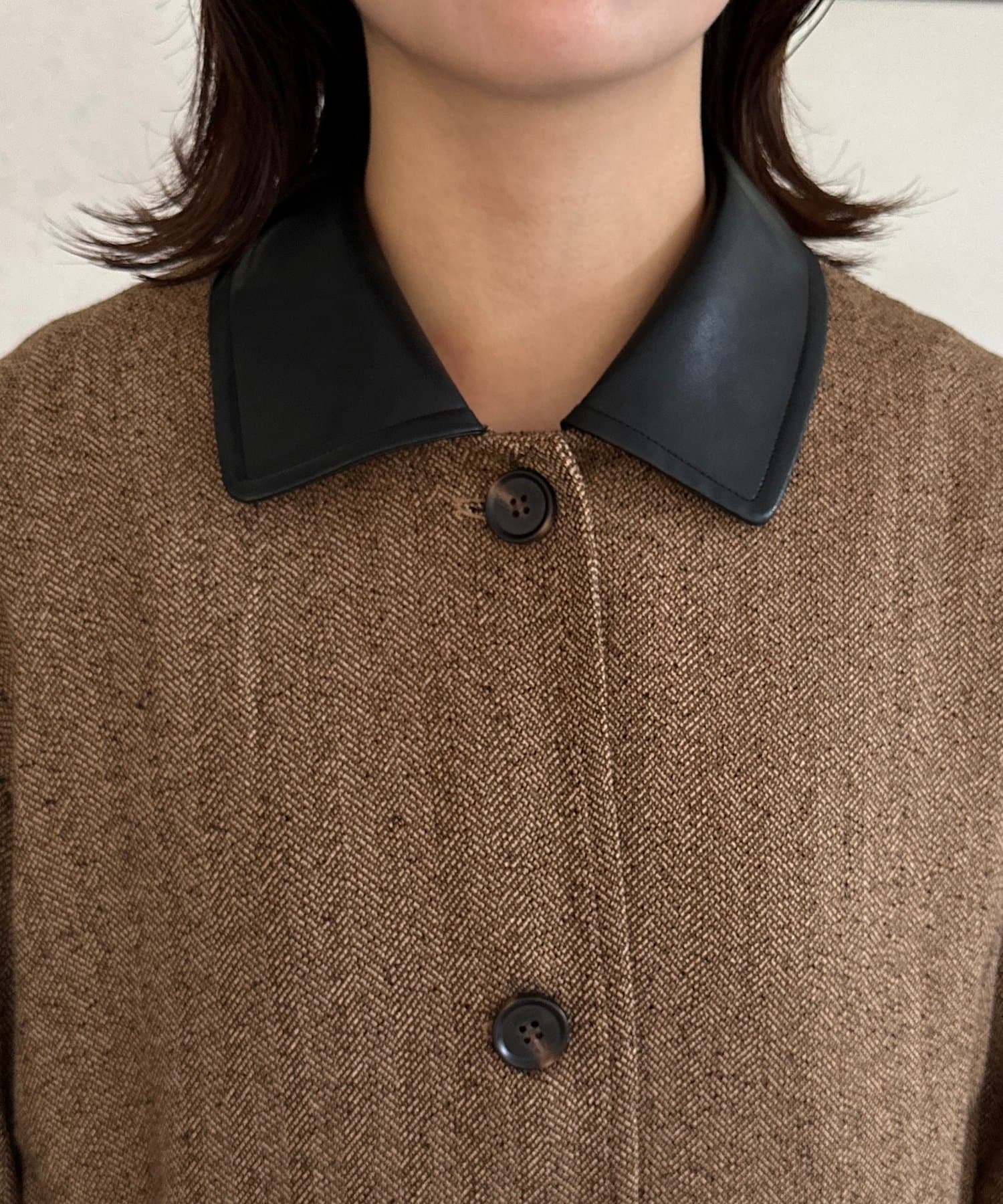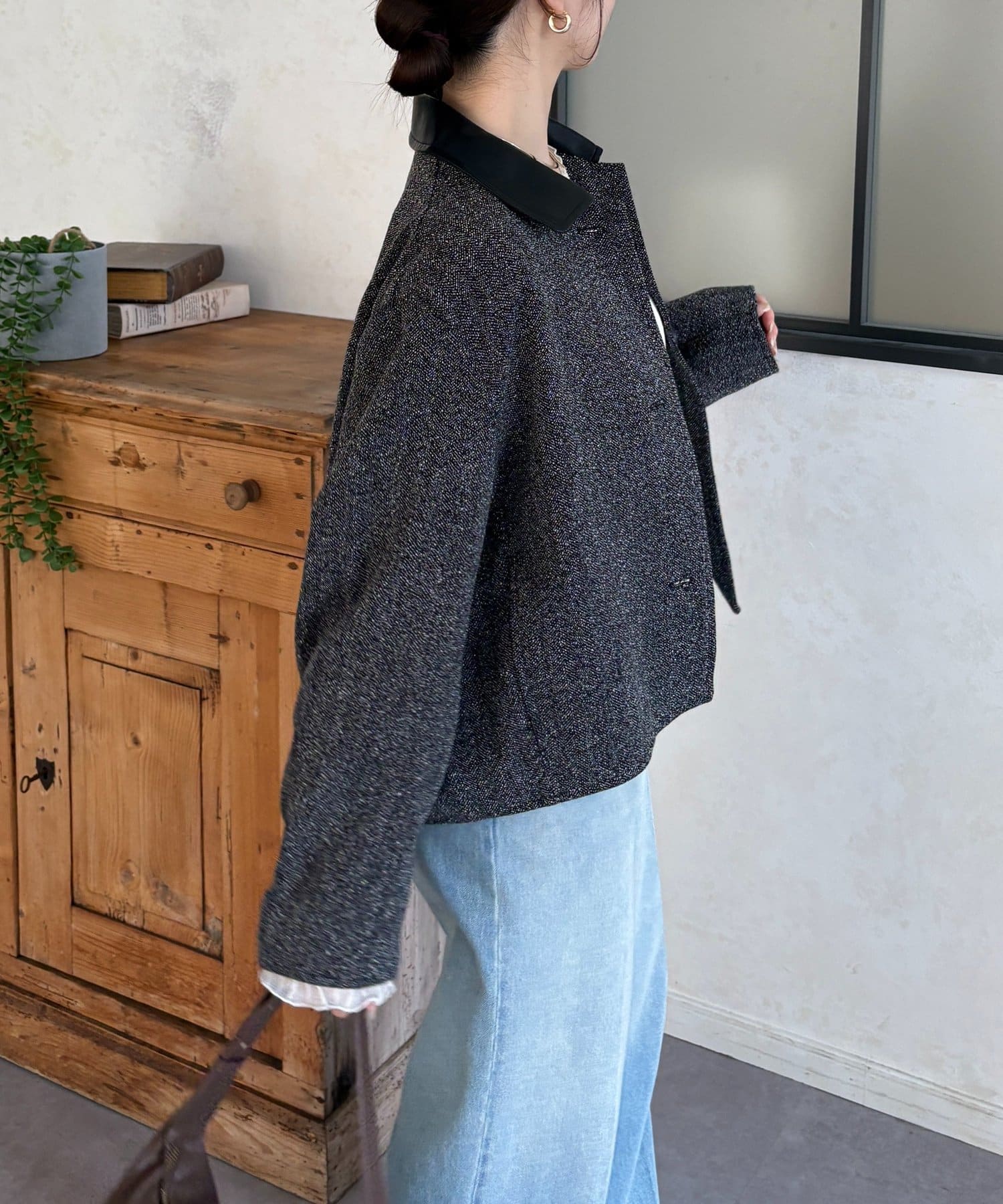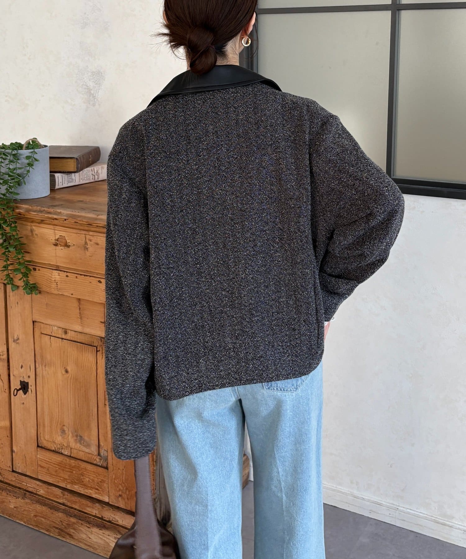 派手なツイードではなくて、襟がレザーなのもおしゃれでかわいいです。