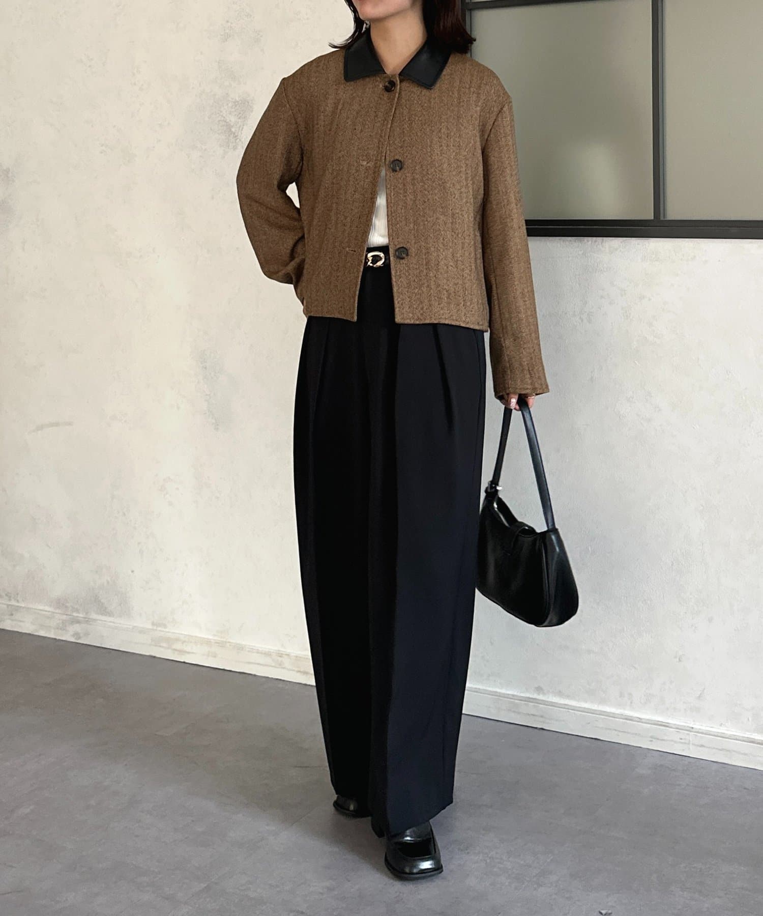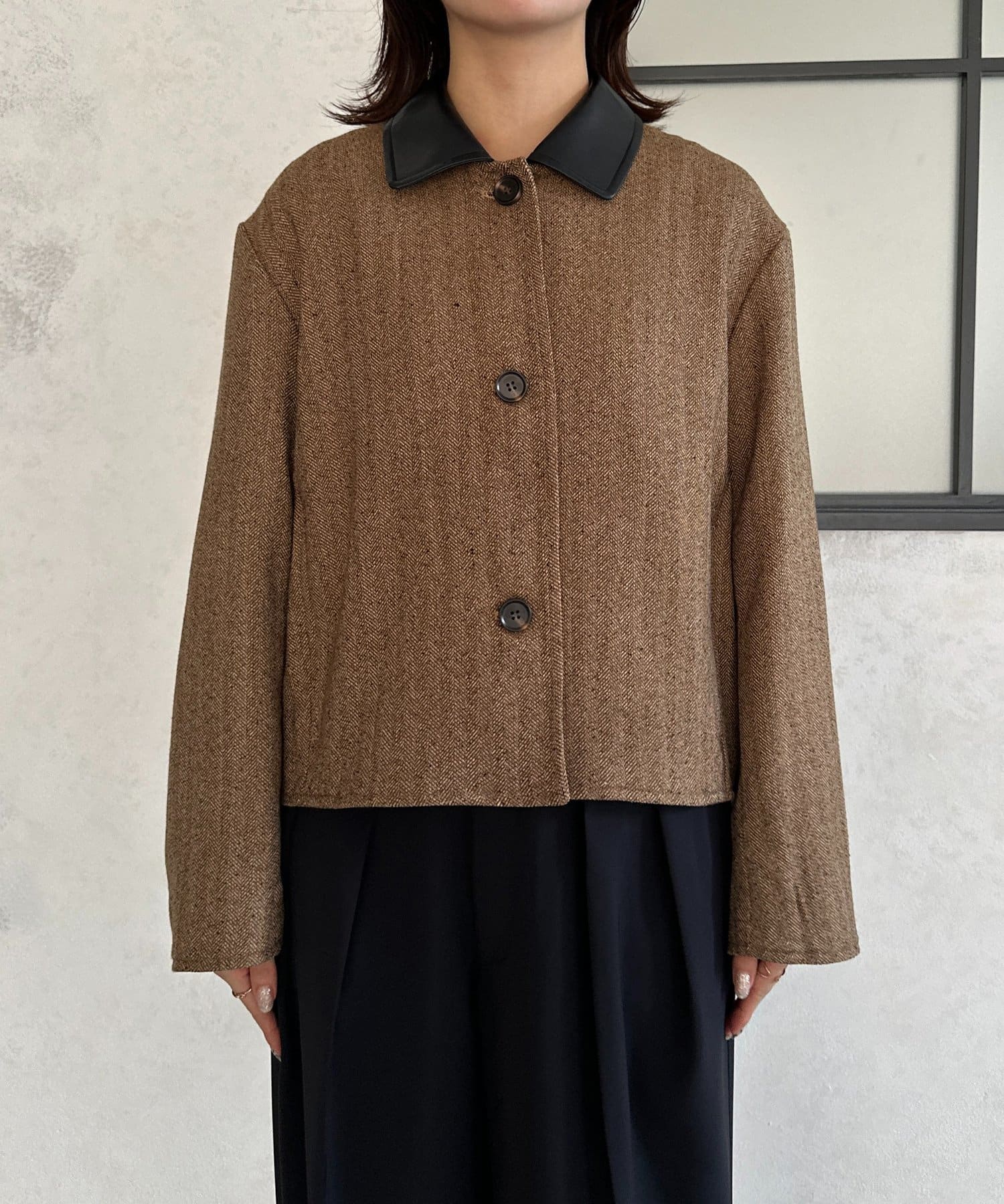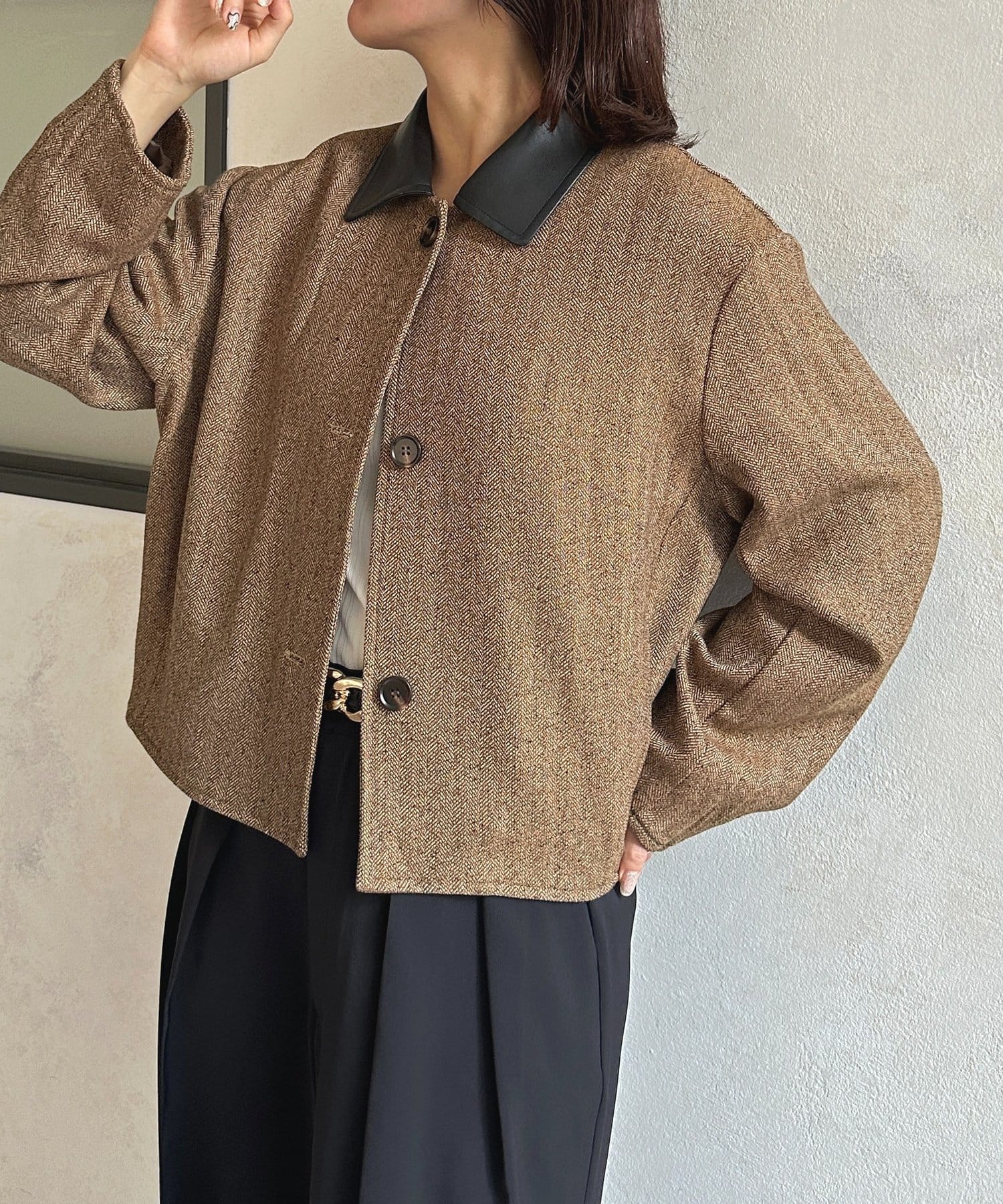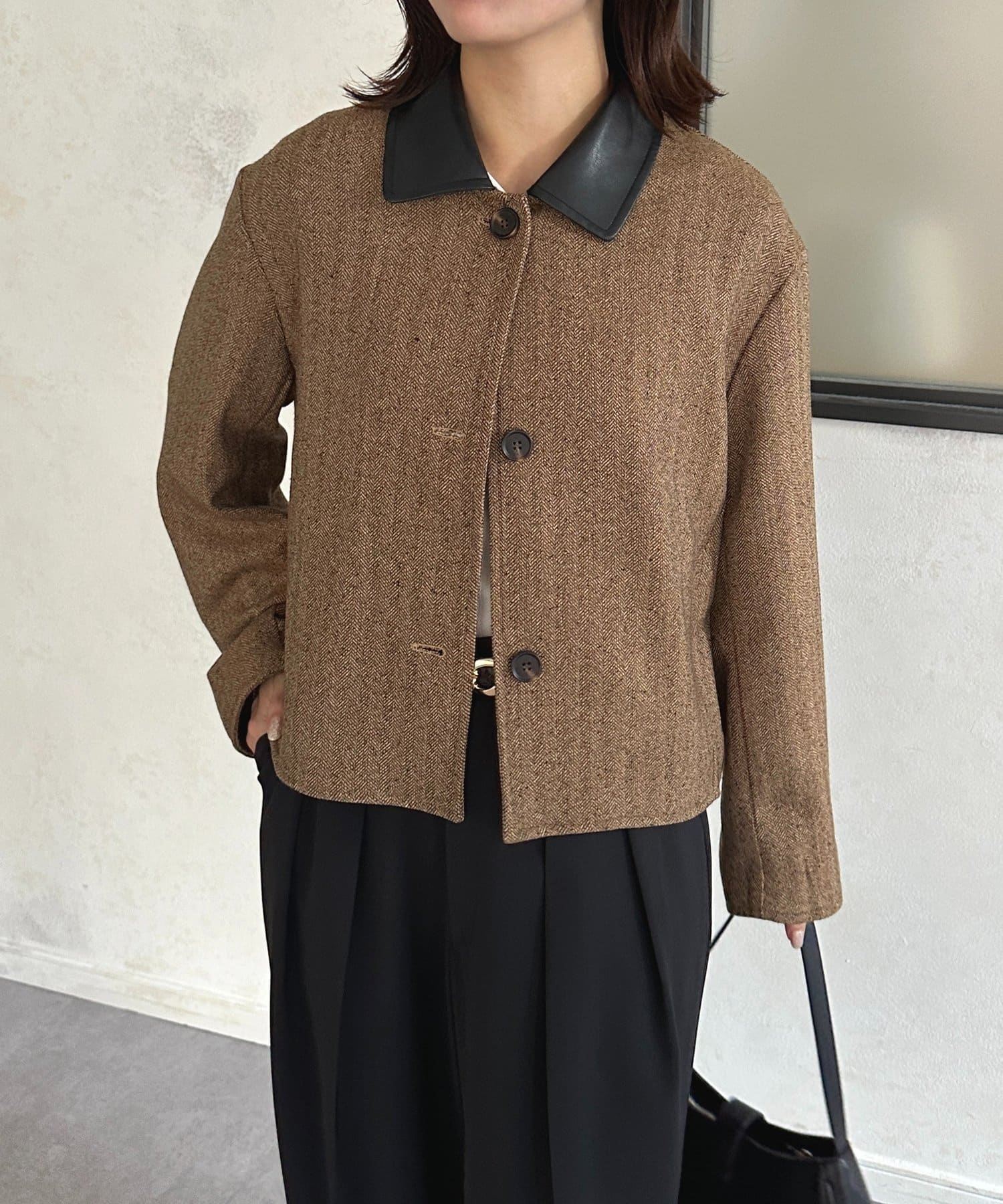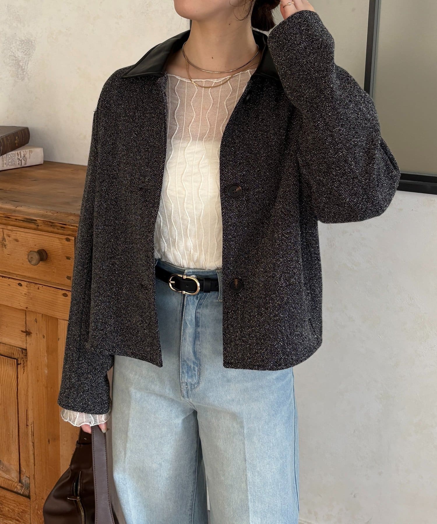 派手なツイードではなくて、襟がレザーなのもおしゃれでかわいいです。