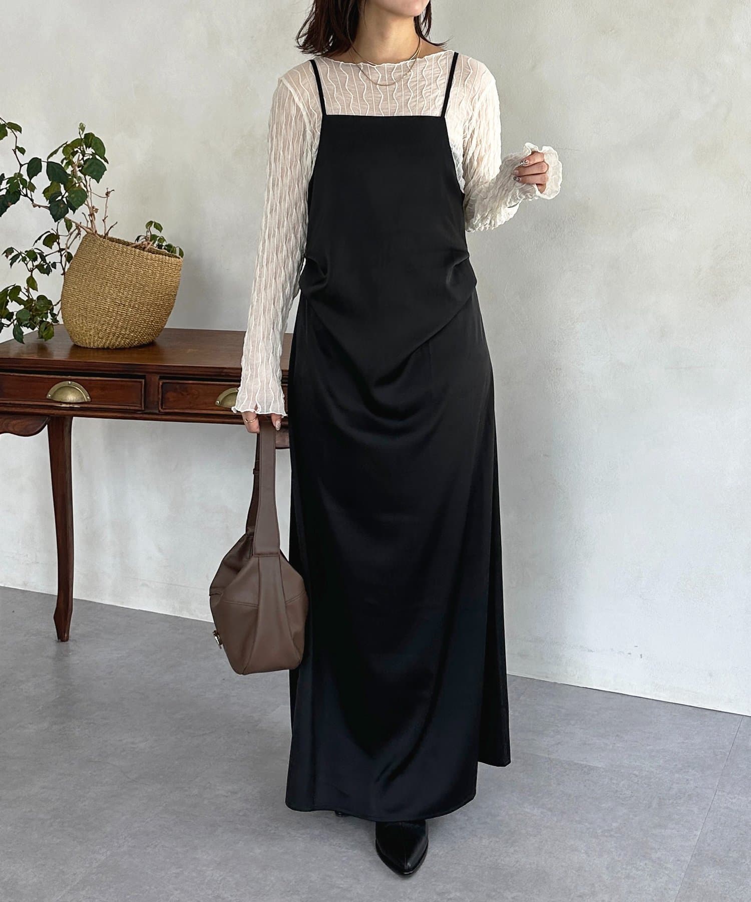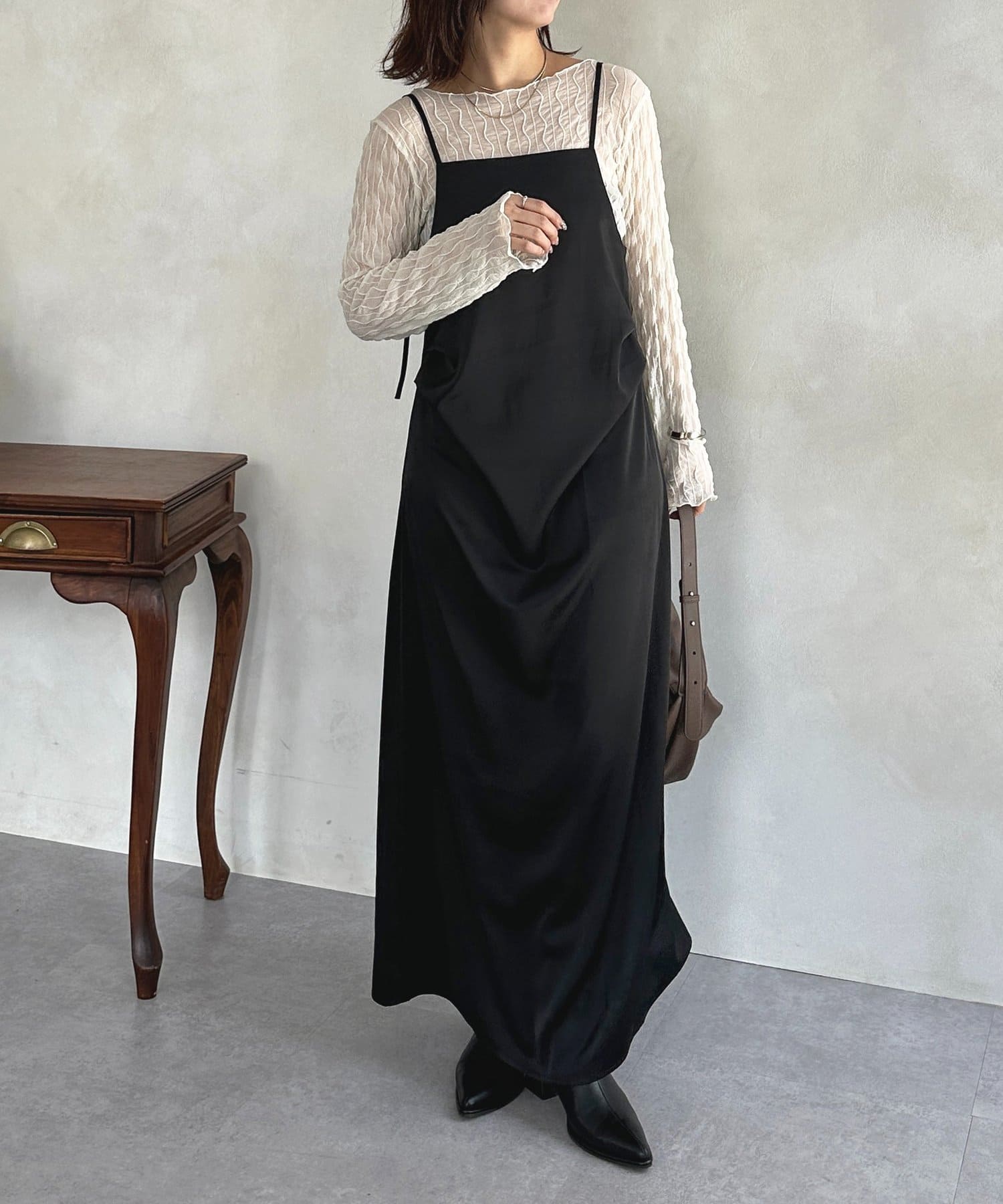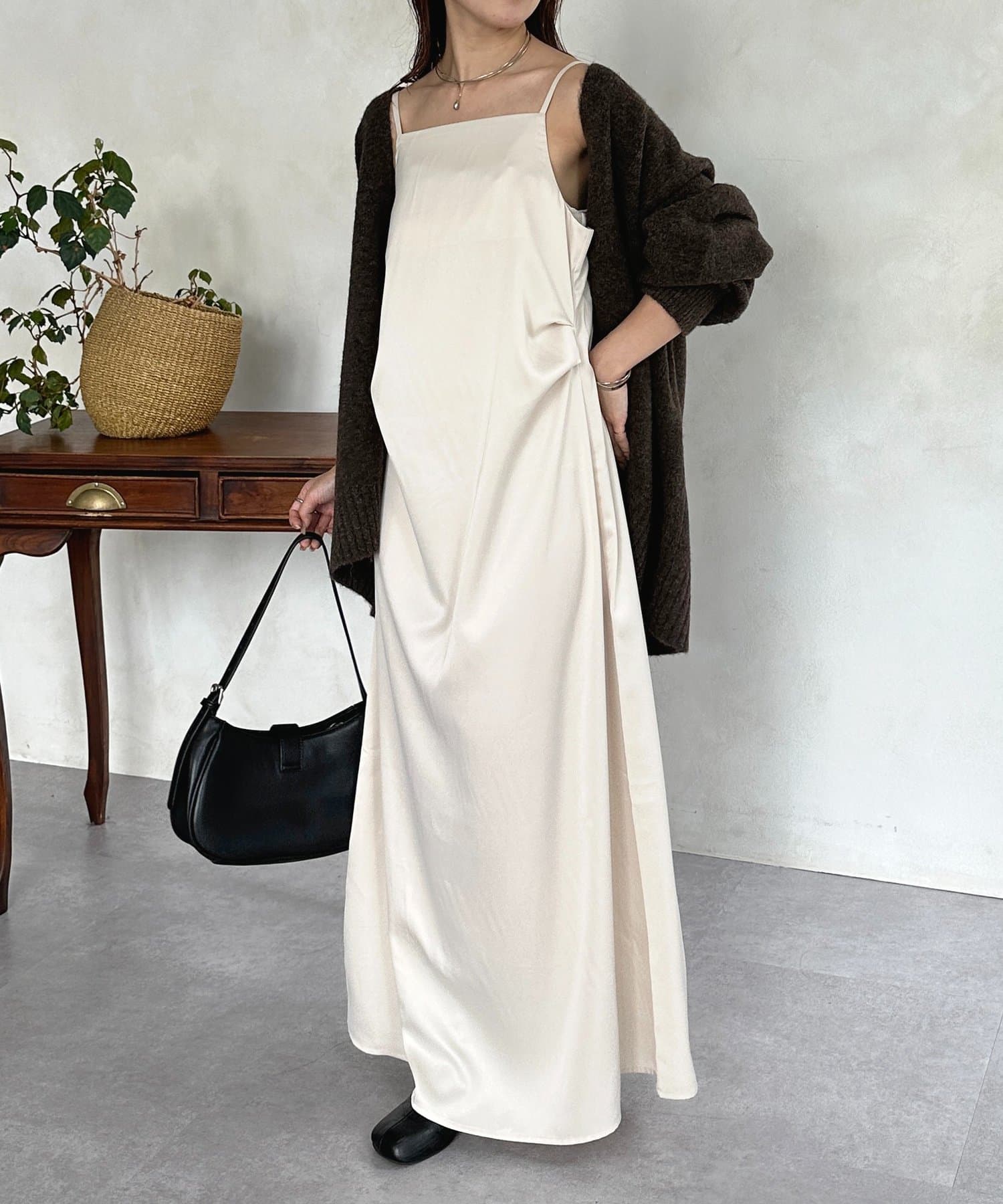 #キャミワンピース #マット #サテン #ドレープ #きれいめ #おでかけ