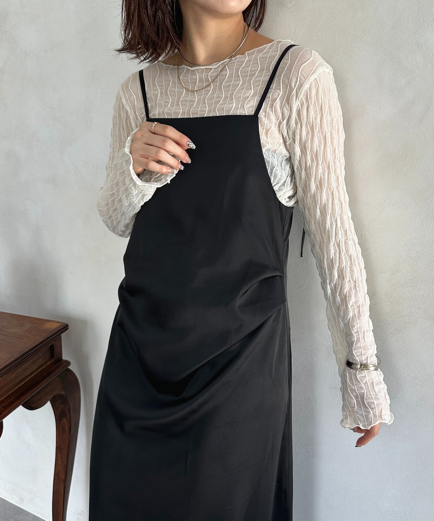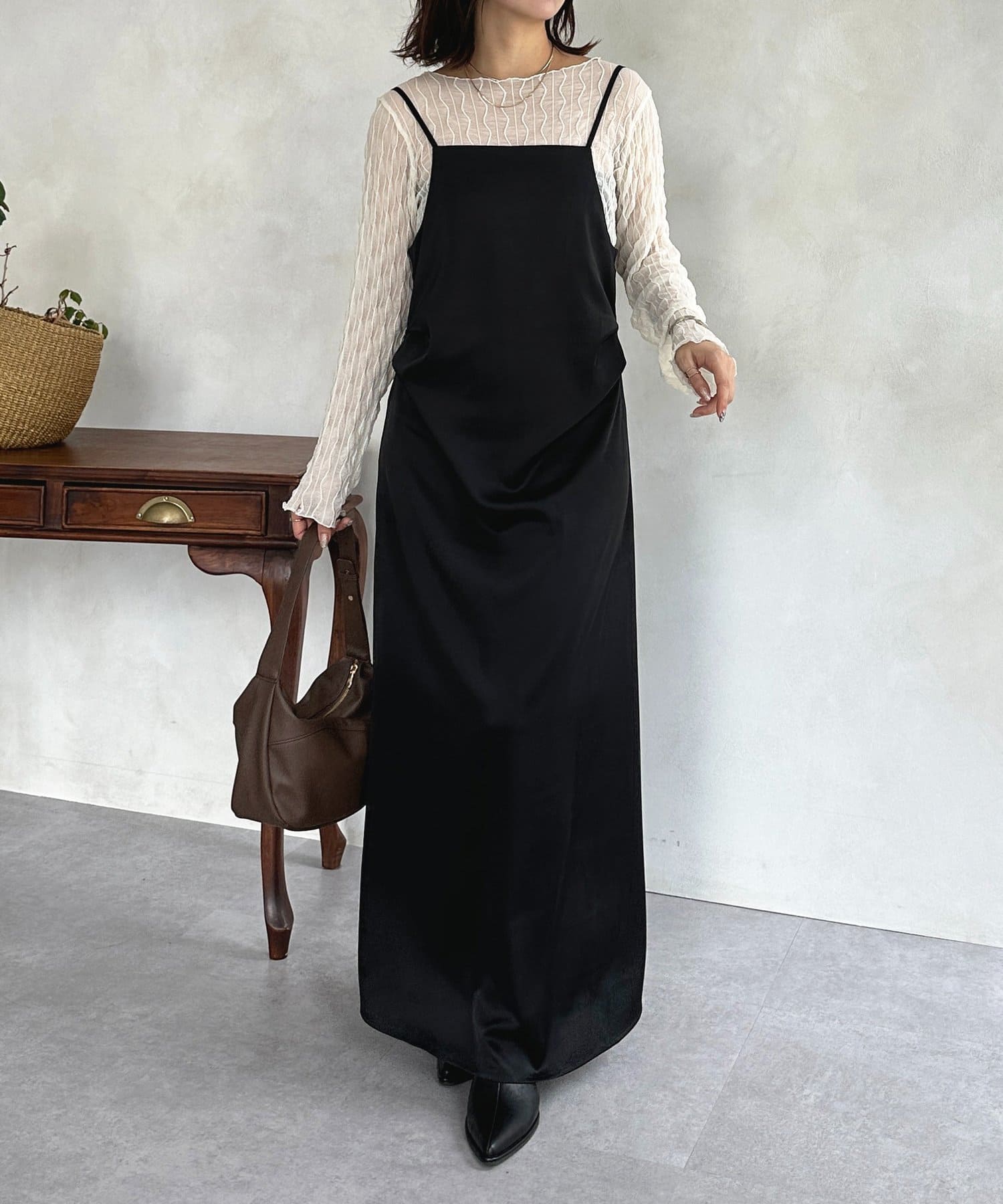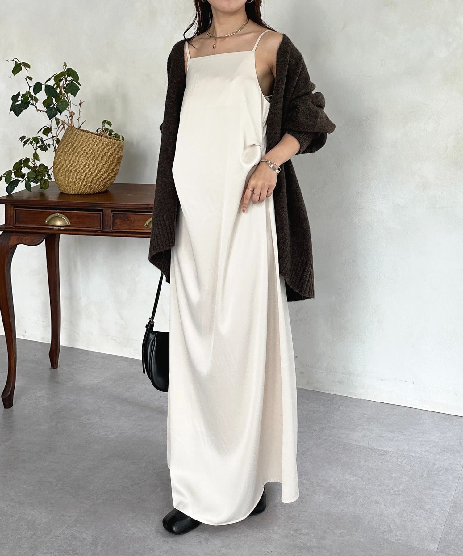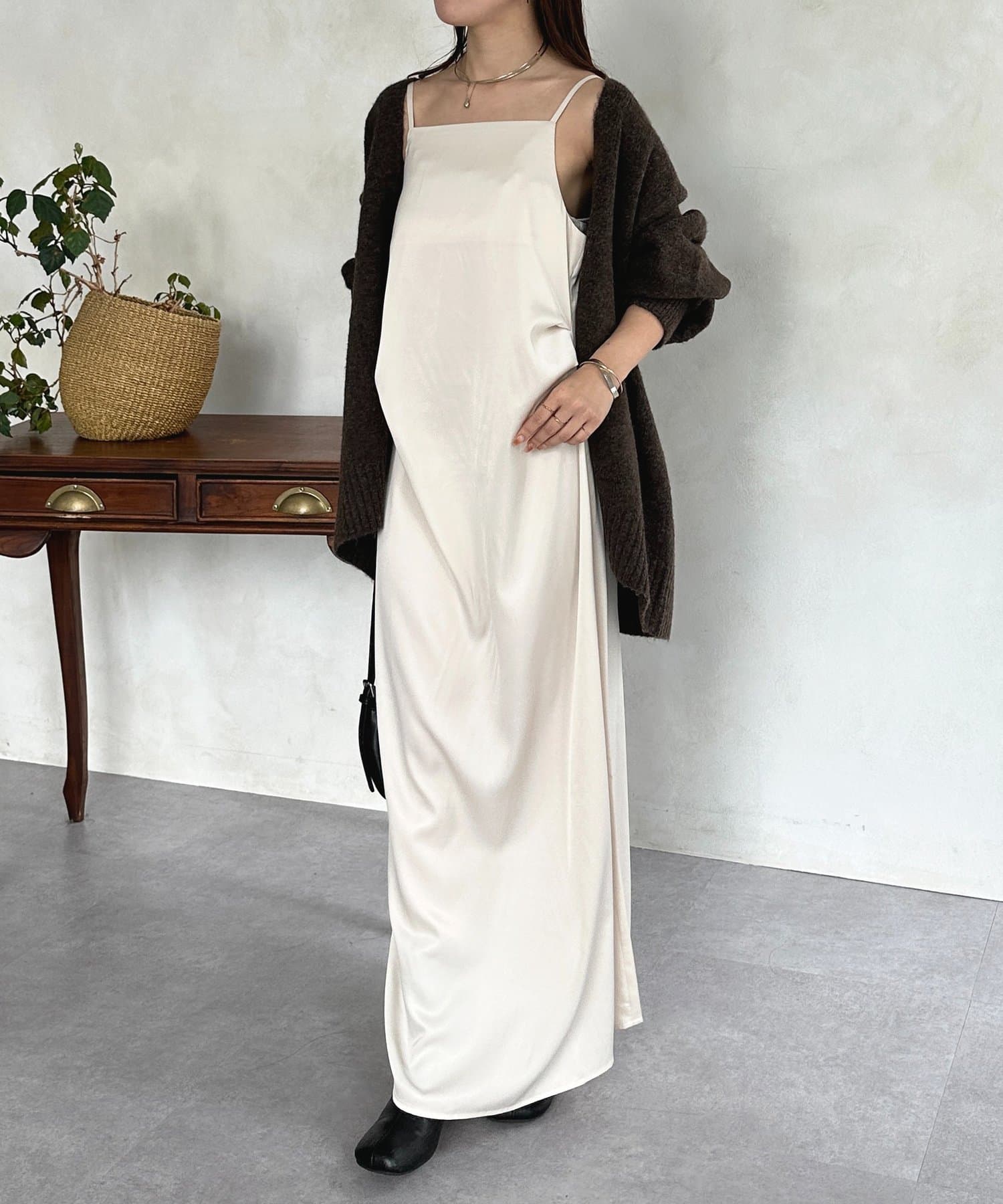 #キャミワンピース #マット #サテン #ドレープ #きれいめ #おでかけ
