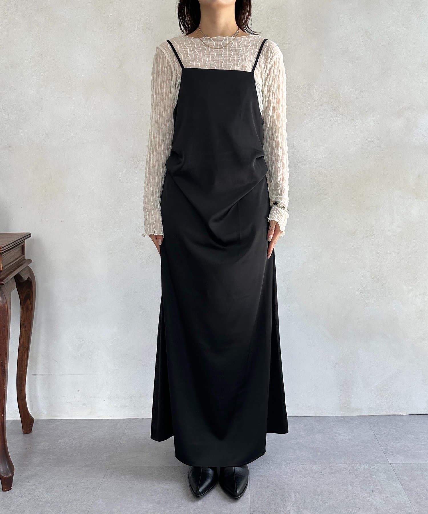 マットサテンドレープキャミワンピース