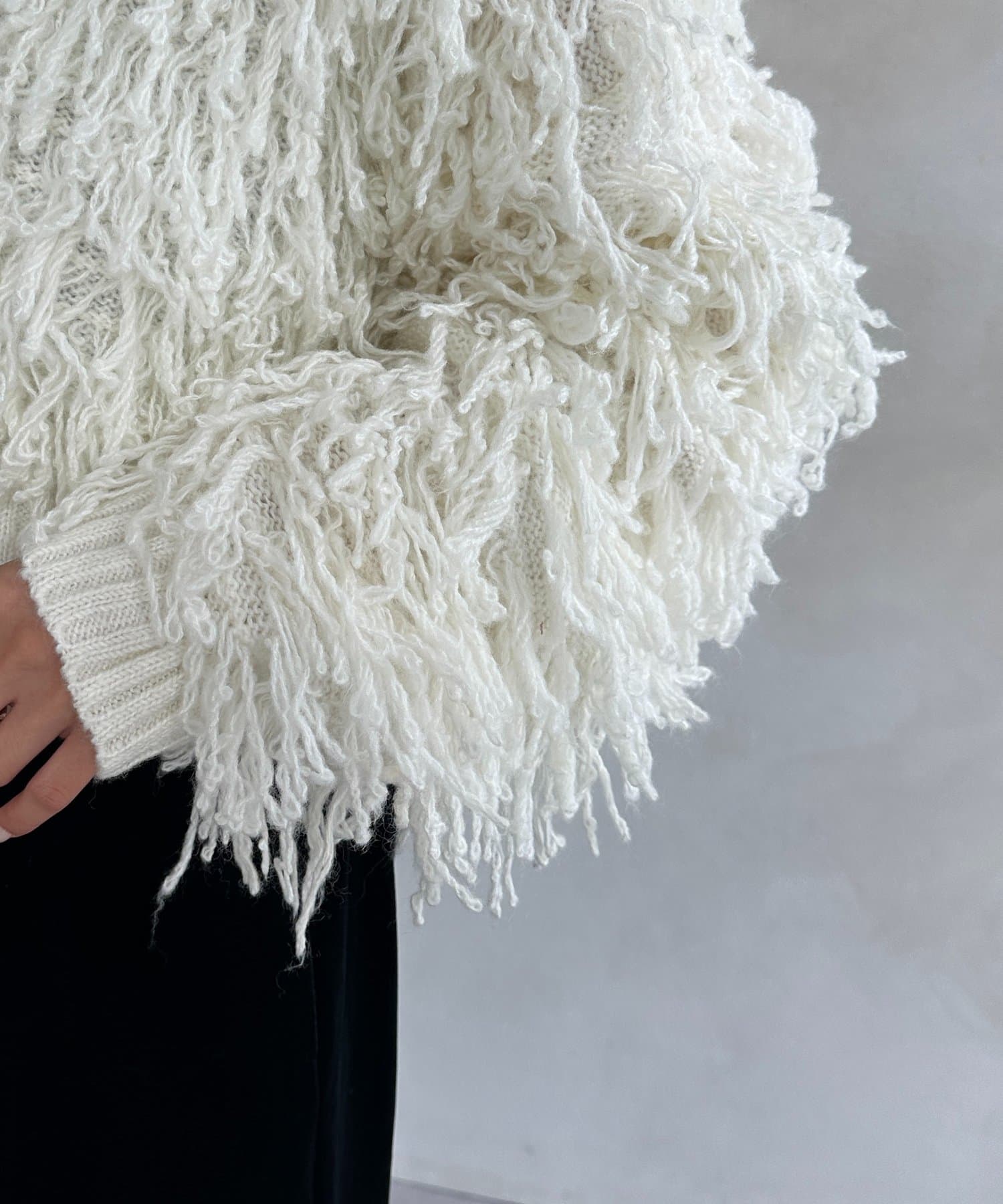 華やかなフリンジが惹かれる、主役級ニットカーデ