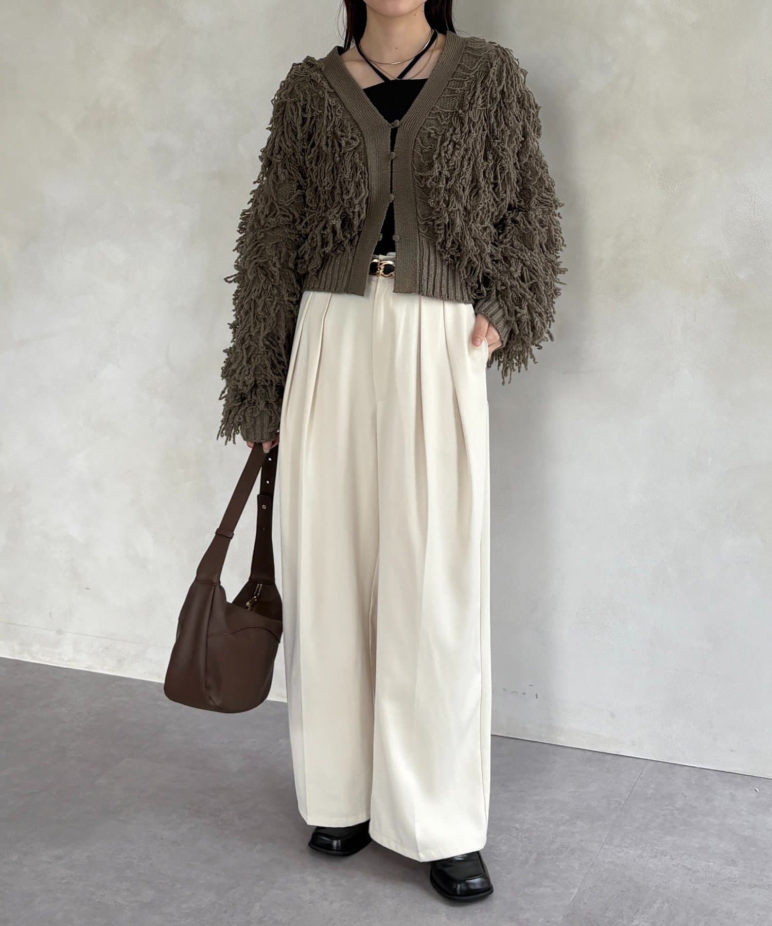 ・ボリューム感たっぷりのアイテムなので、タックパンツや