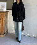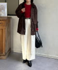 ・白のスラックスと合わせて、大人のリラックススタイルに。