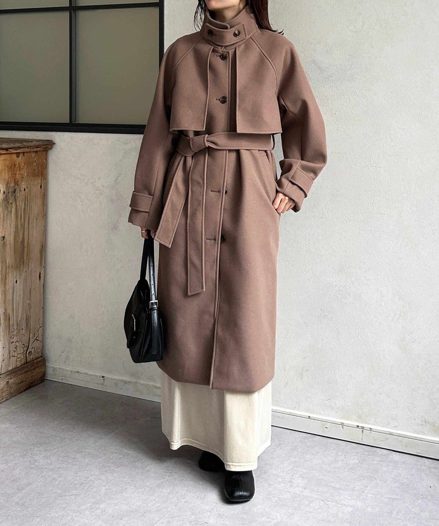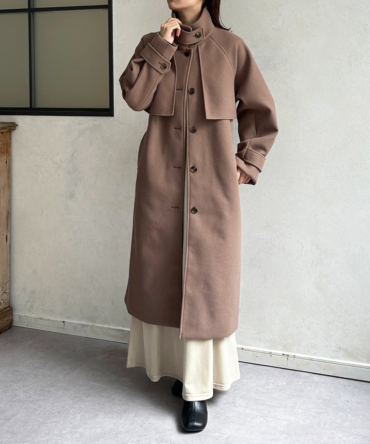 スタンドカラーロングコート