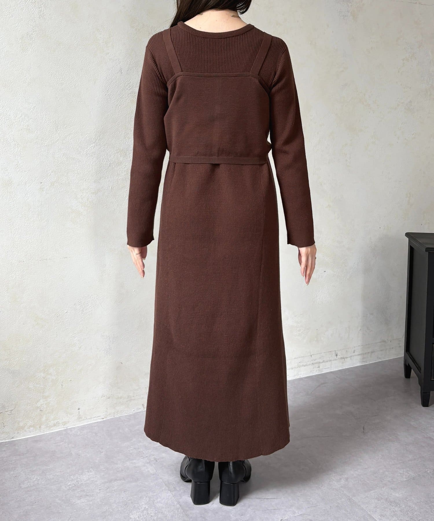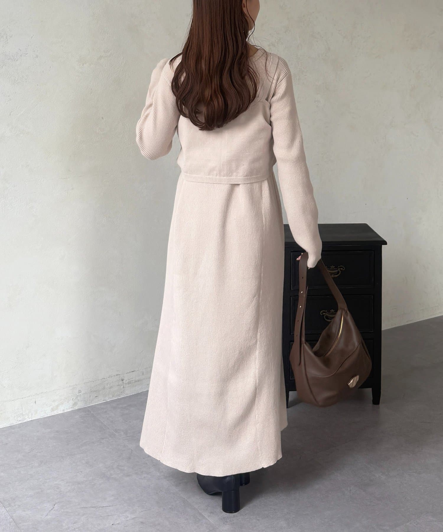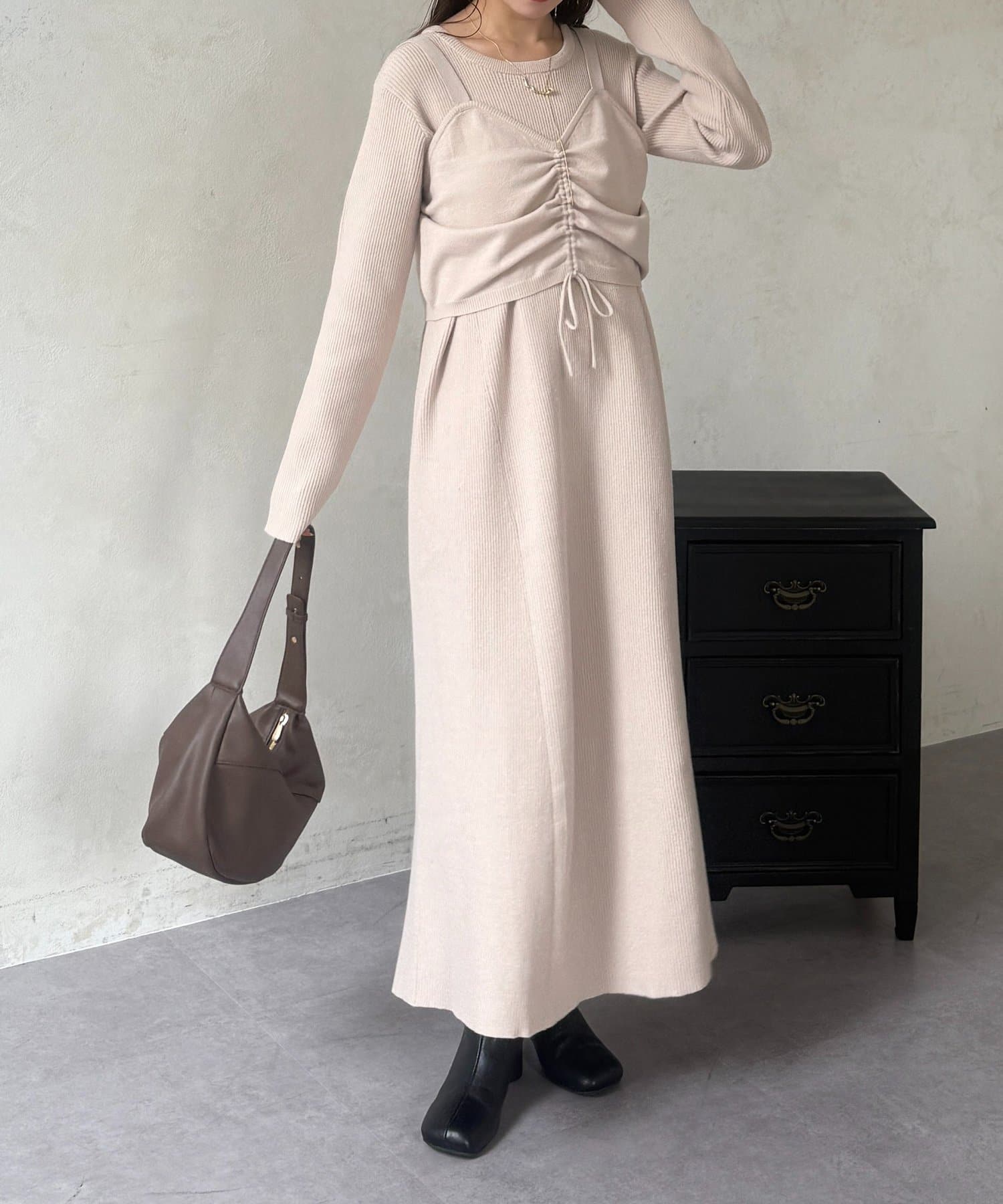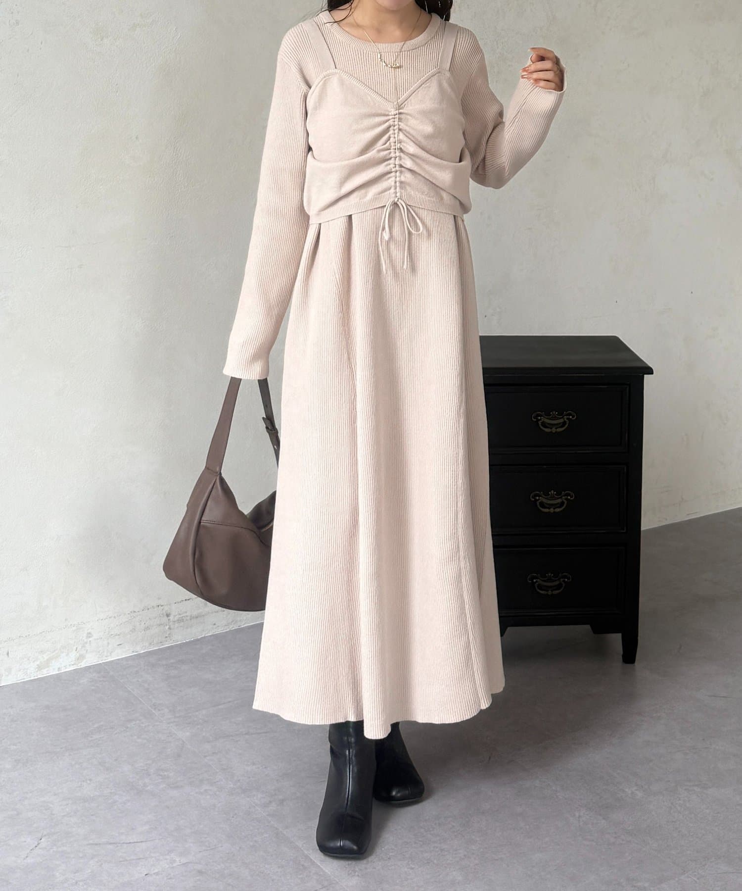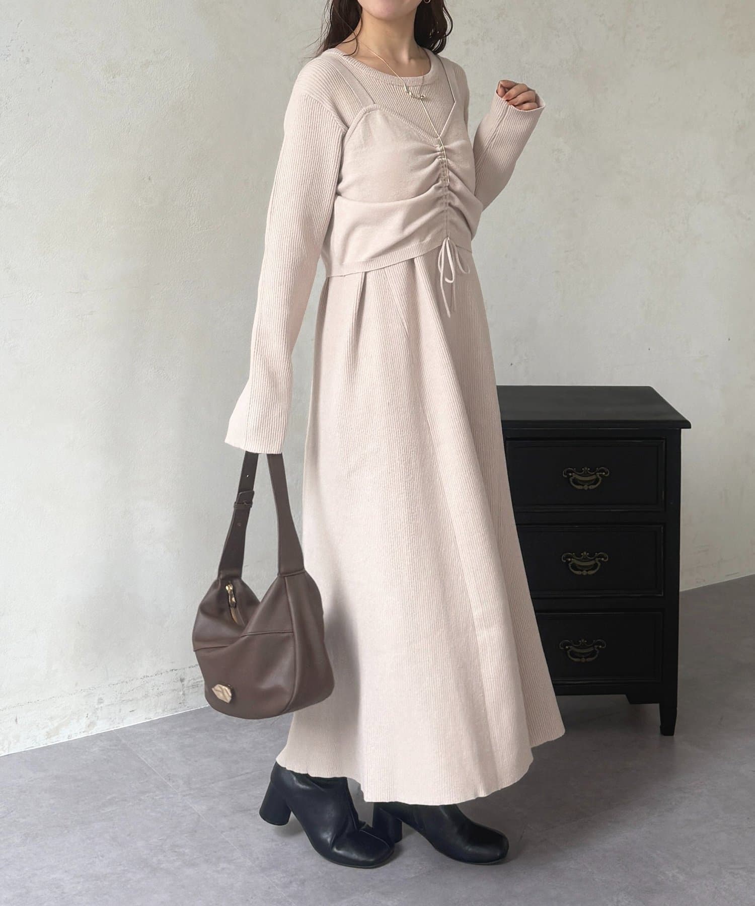 シャーリングビスチェ×リブニットワンピース