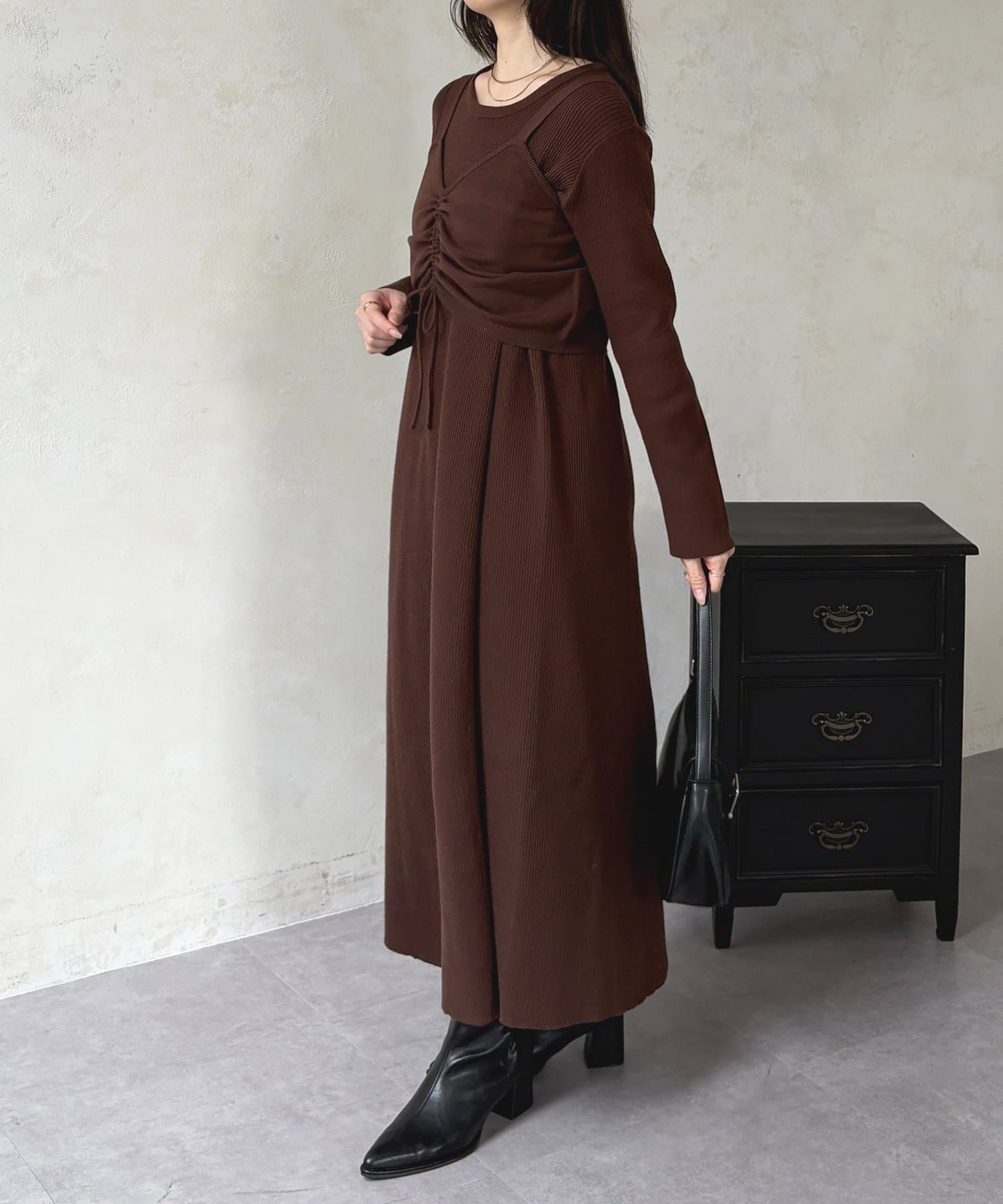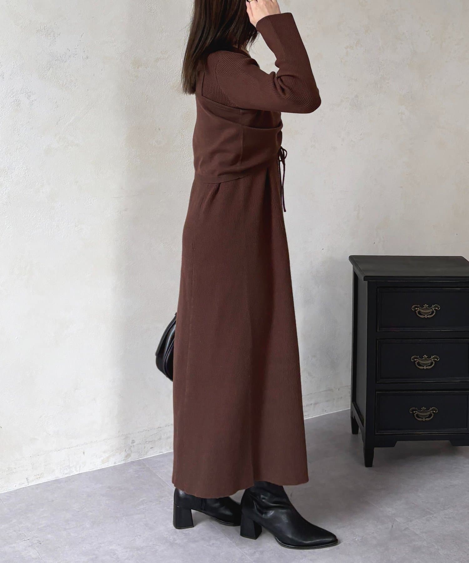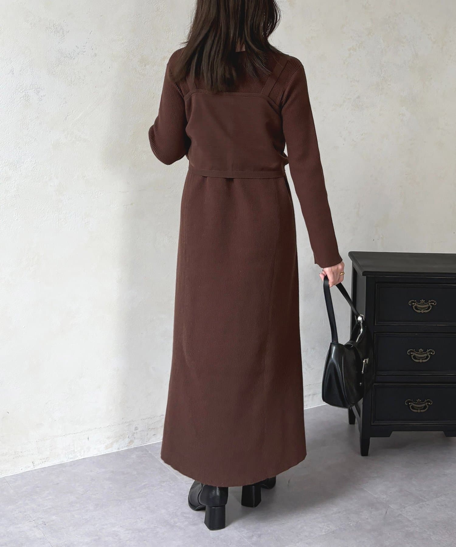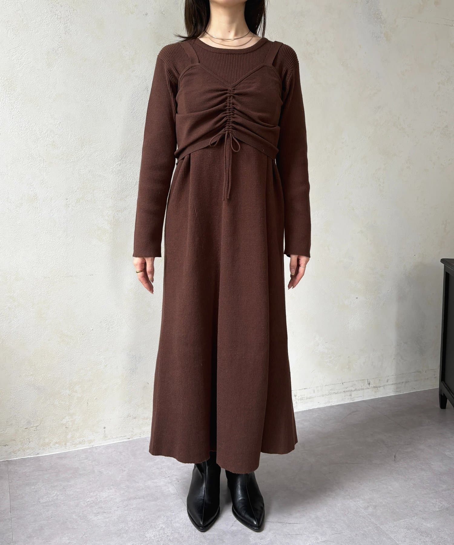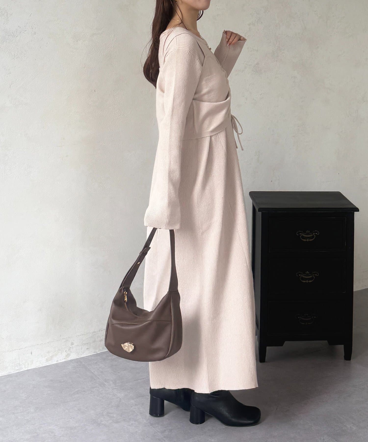 シャーリングビスチェ×リブニットワンピース