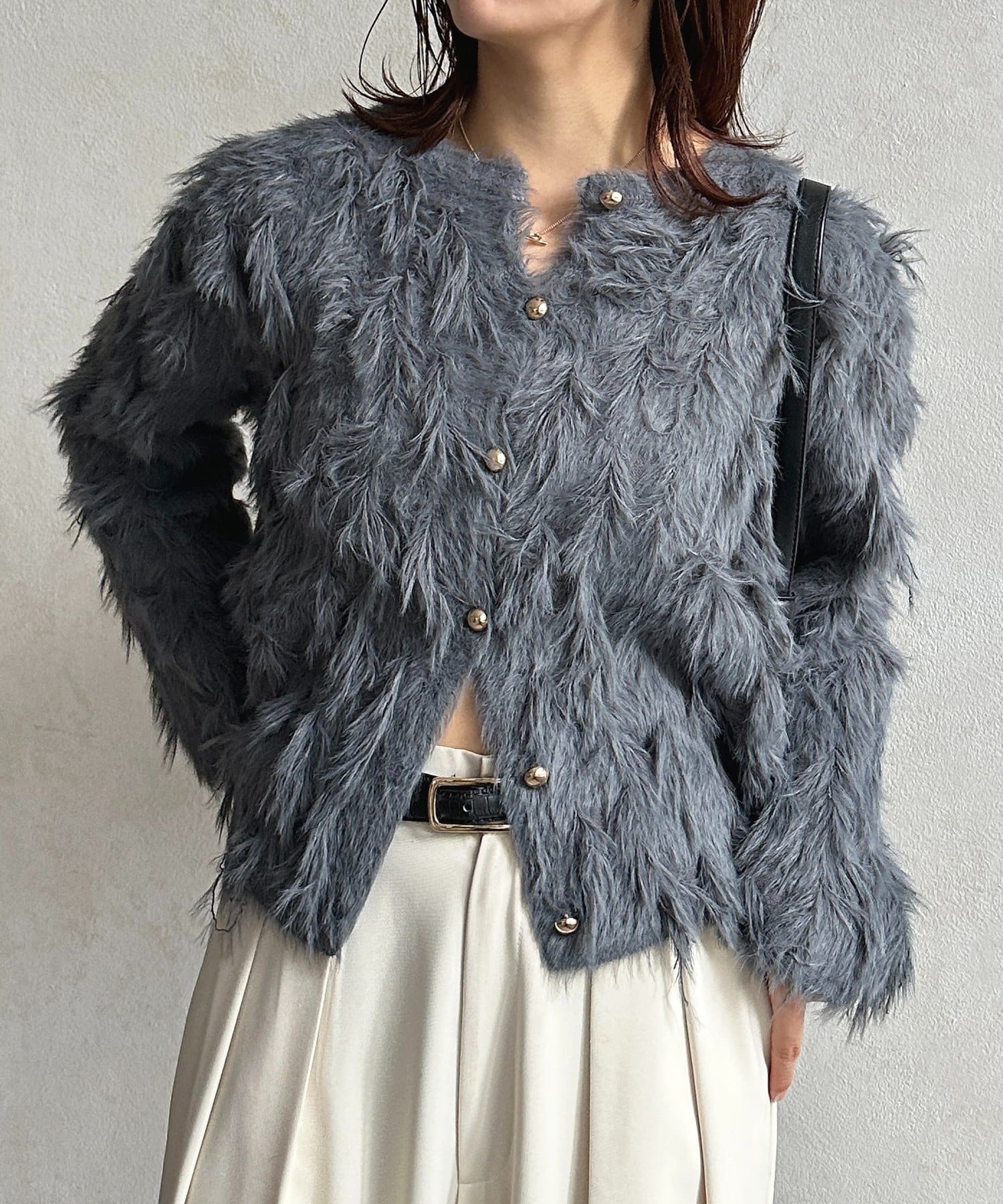 Thevon.(ゼヴォン) GOLDボタンフェザーニットカーディガン